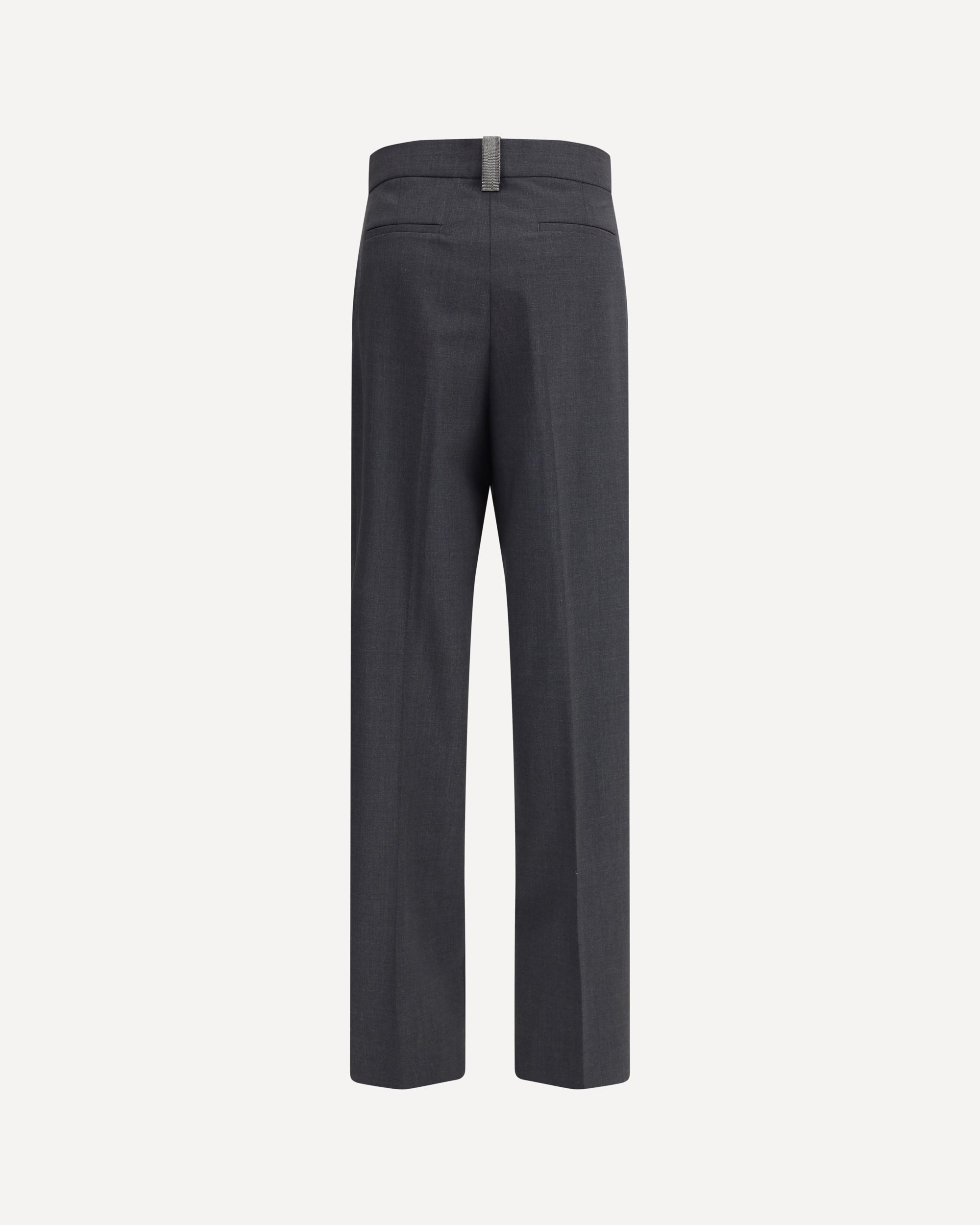 Fabiana Filippi's Wool Pants are an expression of sophisticated and refined elegance. Characterized by two darts that sculpt the silhouette, they feature a refined diamond thread loop detail that gives a precious and distinctive touch to the garment. The front zipper-and-hook closure ensures practicality and clean lines, while the two welt pockets add functionality while maintaining an essential design.