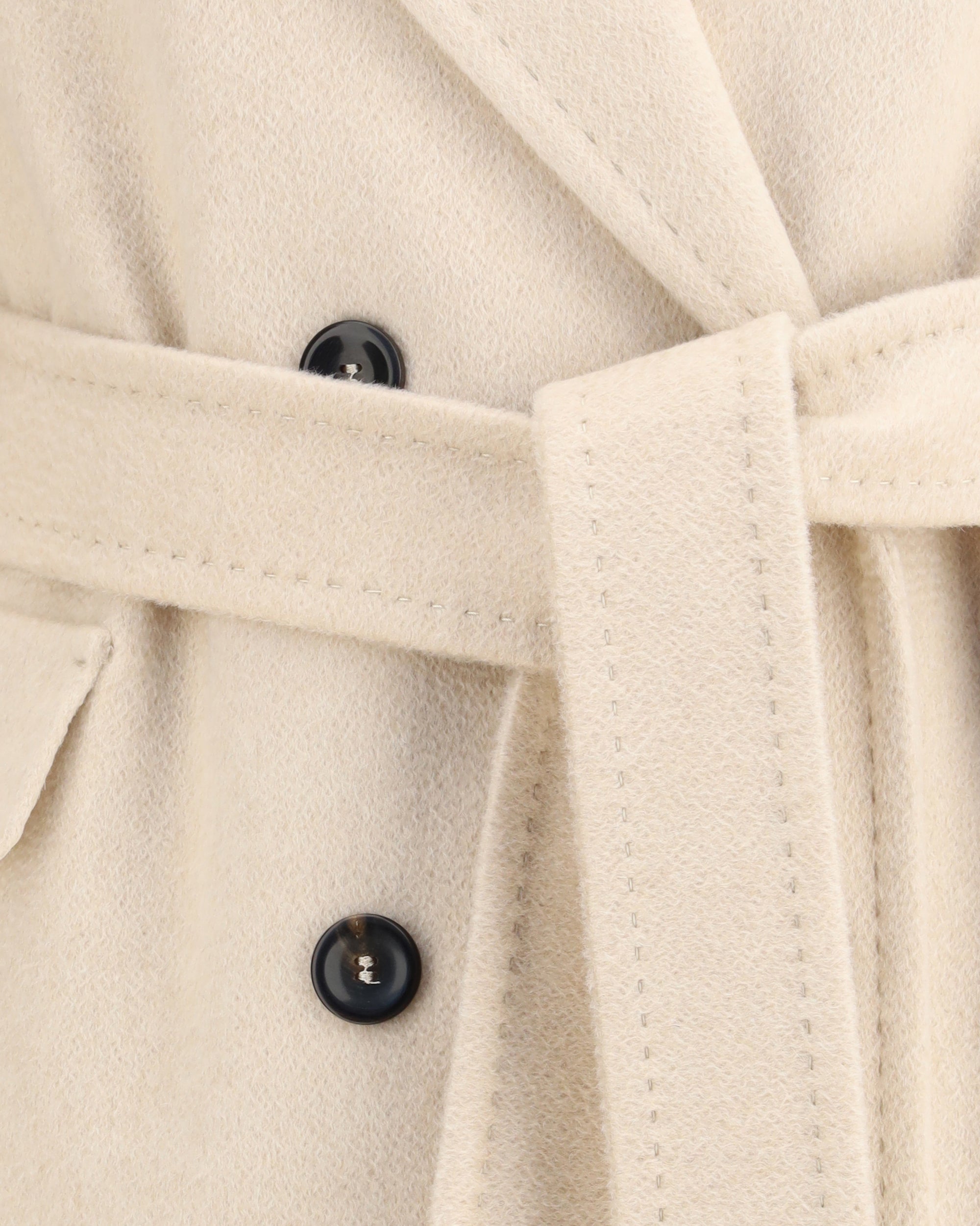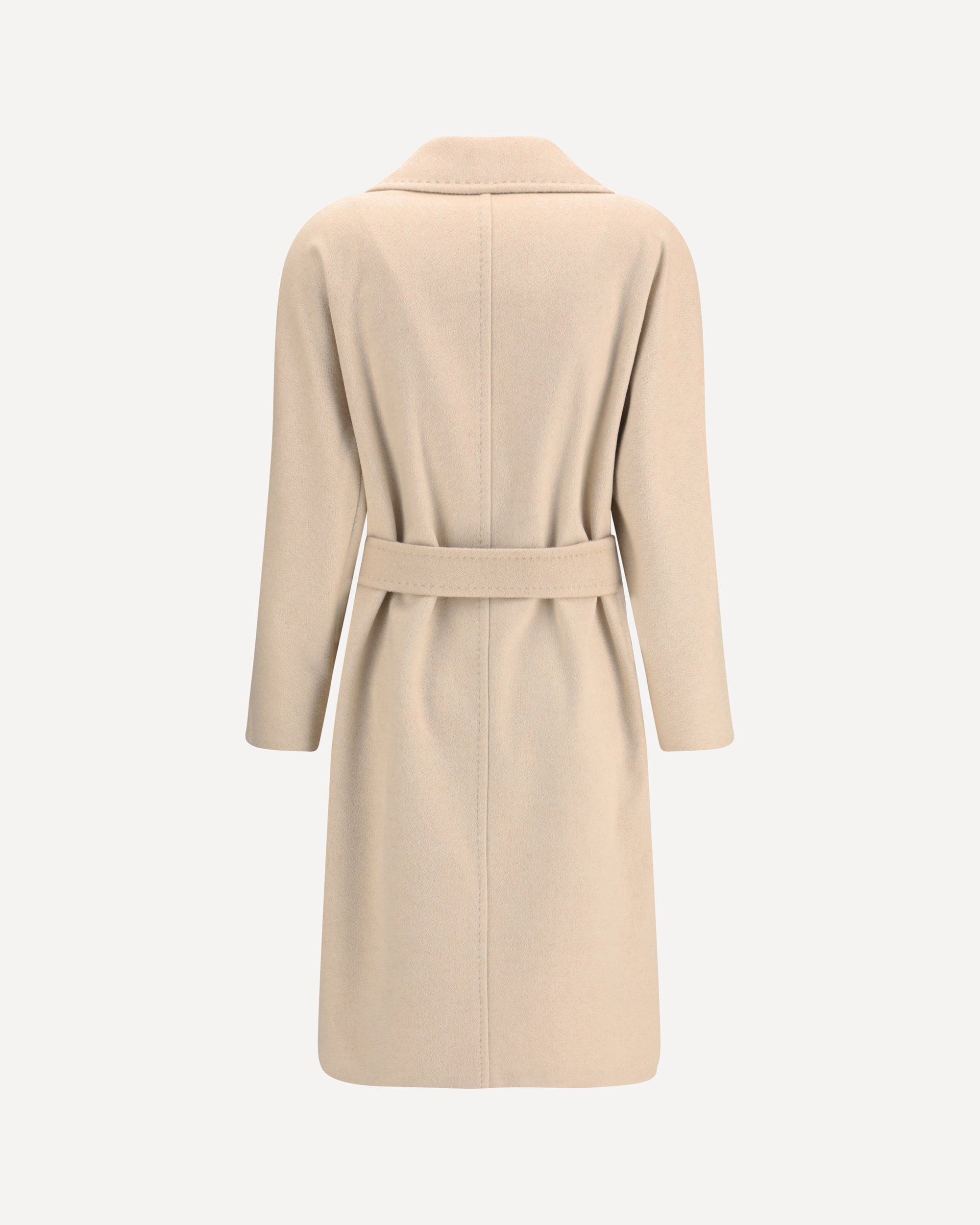 The double-breasted Coat by Max Mara Studio is a refined, feminine piece crafted from a luxurious zibeline drap blend of pure cashmere, alpaca, and wool. The straight-cut midi silhouette is enhanced by a matching belt that defines the waist, creating an elegant and balanced look. Featuring a classic notched lapel, long kimono sleeves, and front flap pockets, the fully lined design combines timeless tailoring with cozy sophistication — a perfect outerwear staple for the colder months.