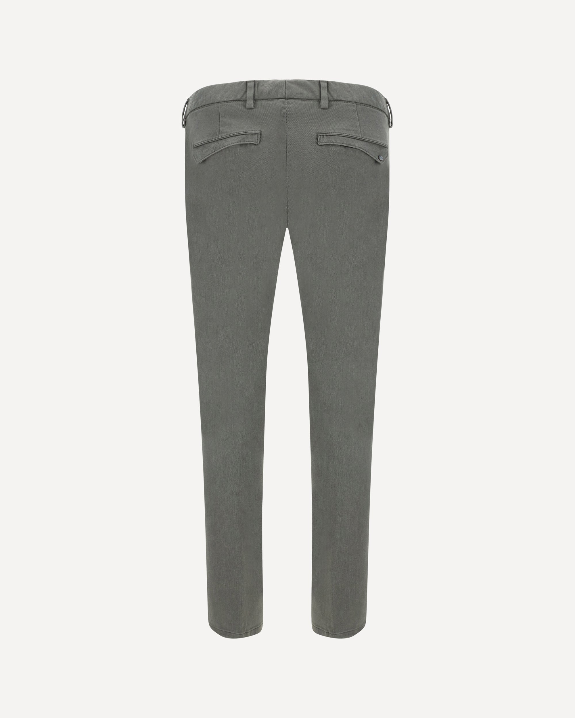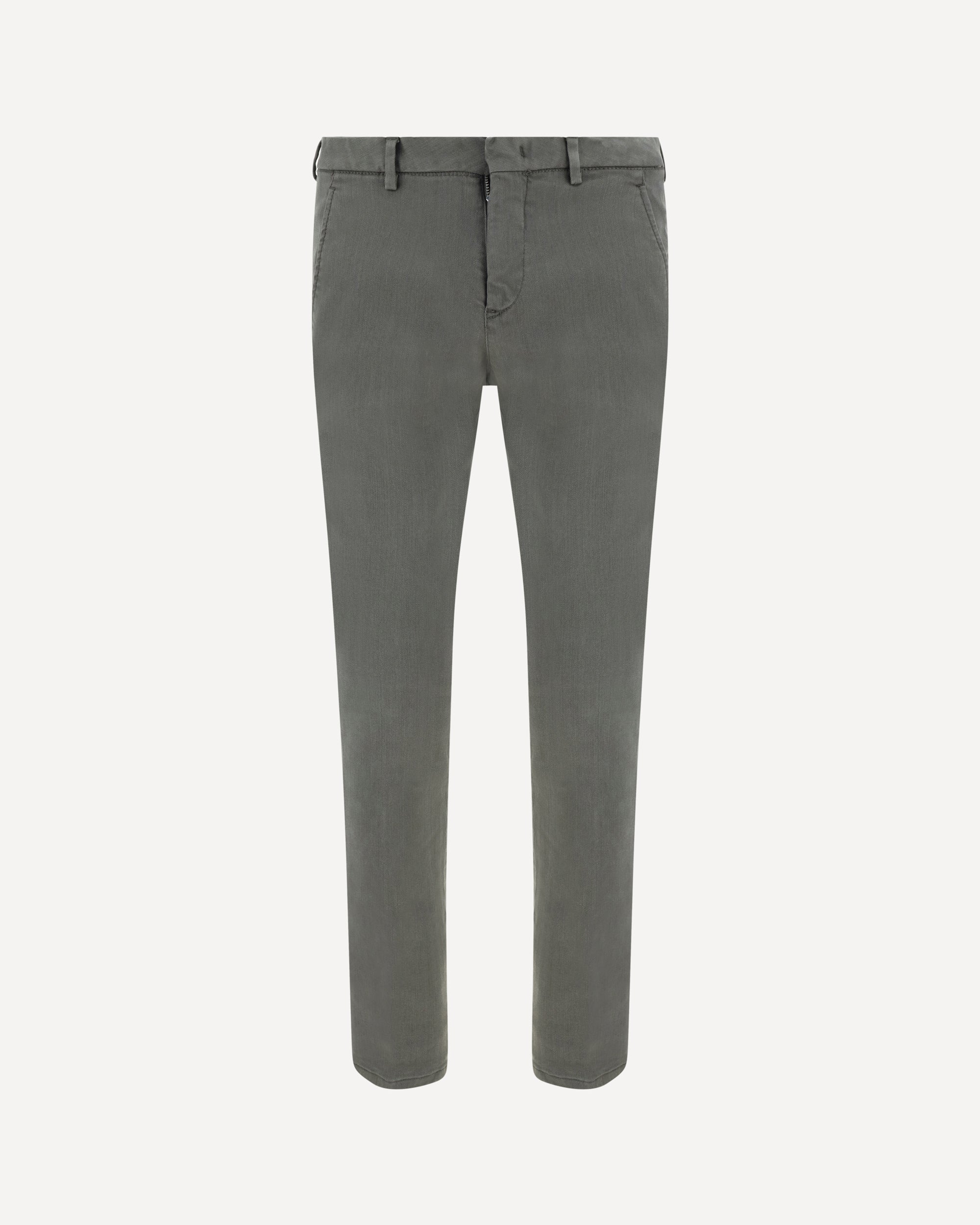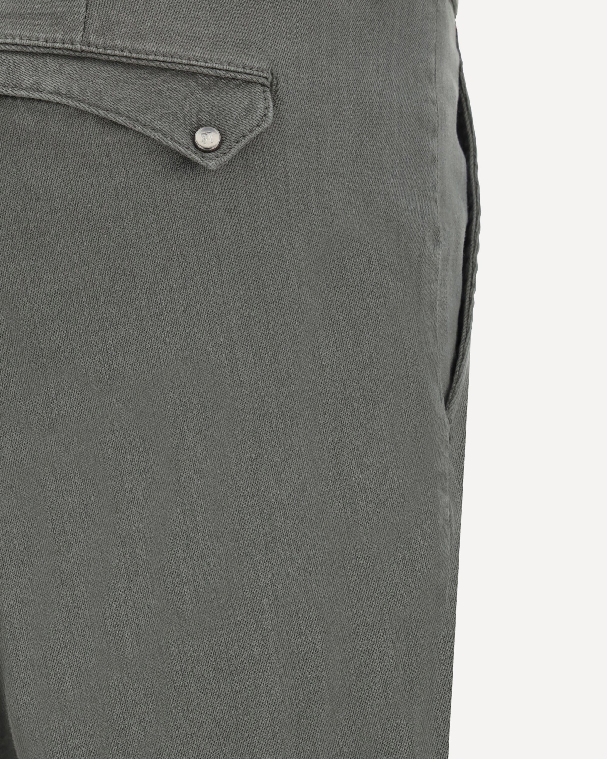 Pants by PT Pantaloni Torino, front closure with metal hook and zipper, two slash pockets on front, two back pockets with snap button, belt loops waistband.