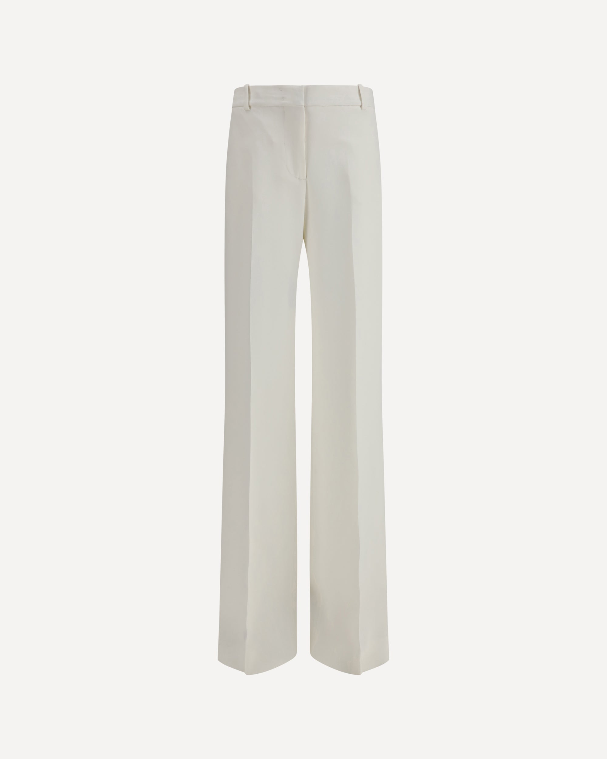 The Viscose Palazzo Pants by Ermanno Scervino embody the fluid and sophisticated tailoring that defines Ermanno Scervino’s aesthetic. The impeccable construction and wide silhouette highlight the fabric’s light drape, creating a harmonious balance between structured elegance and natural movement. The high waist and long, flowing leg elongate the figure, while the front zip and hook closure emphasize the purity of the design.