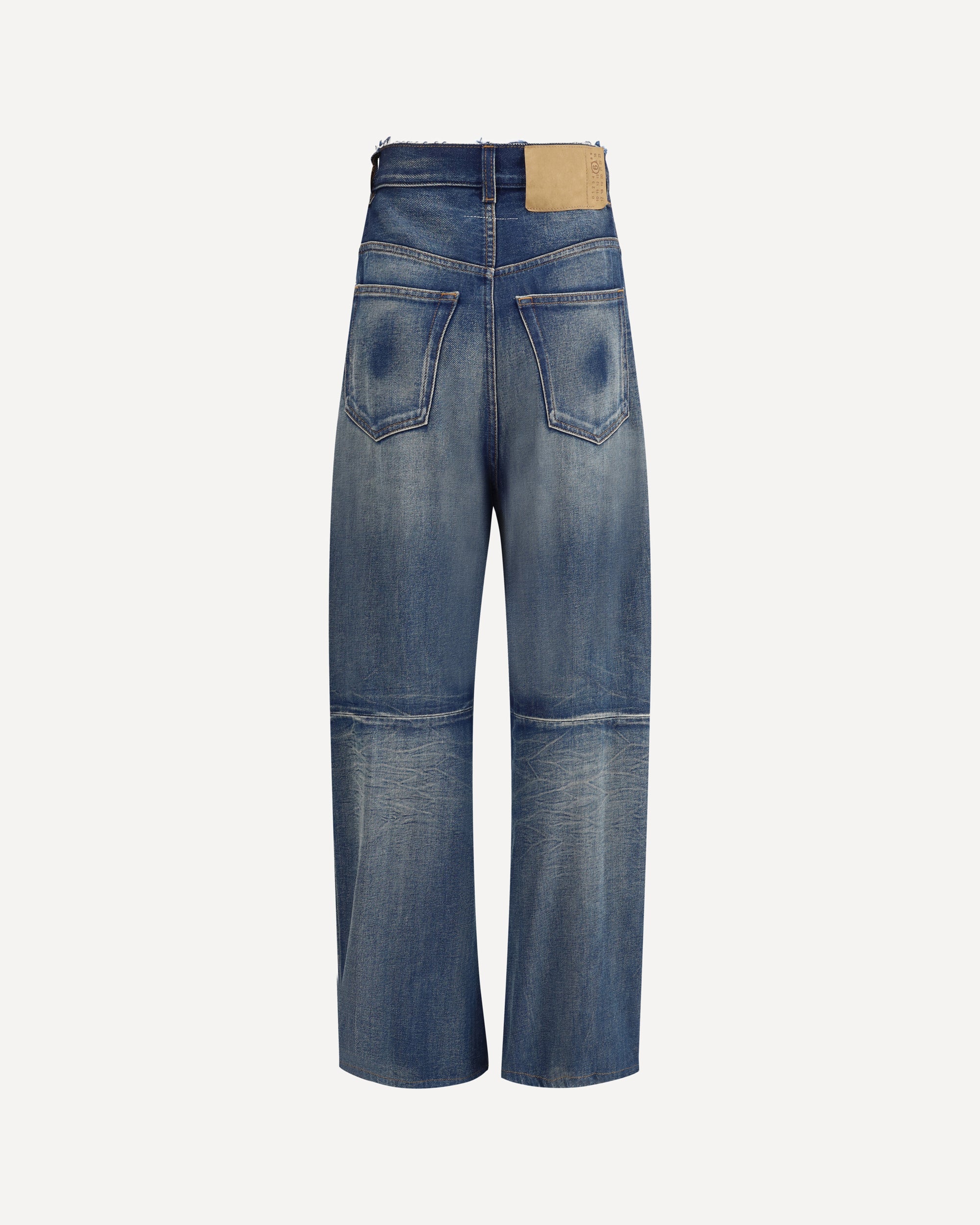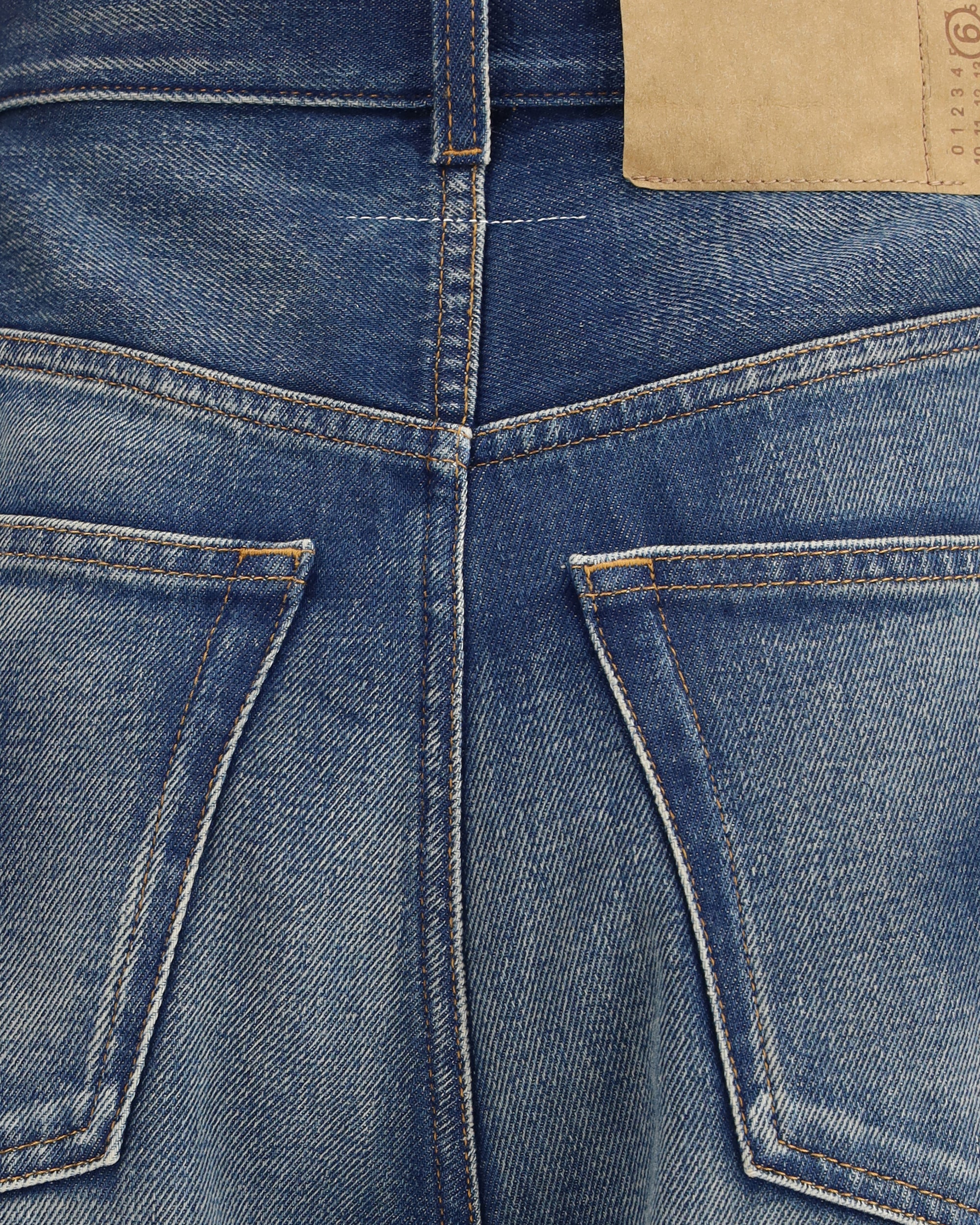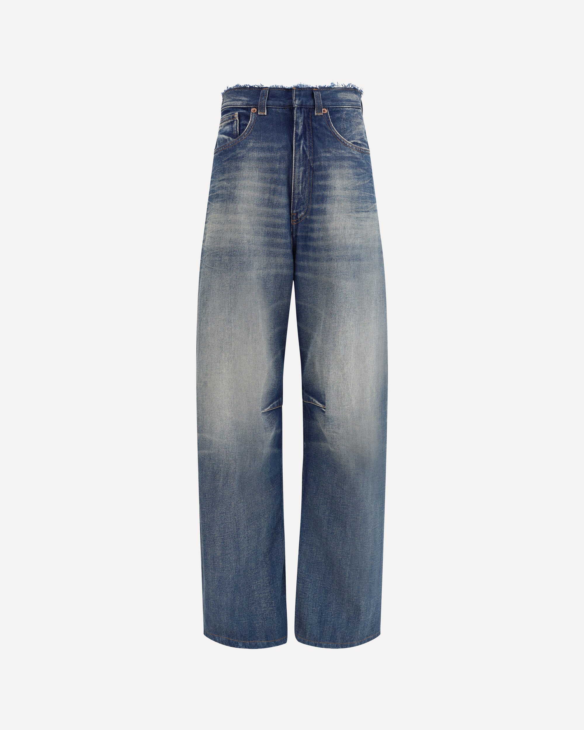 MM6's wide leg Jeans feature a wide-leg, high-waisted silhouette perfect for a modern, relaxed look. Made in the classic five-pocket pattern, they are finished with a frayed base and front zip-and-button closure for a casual, edgy feel.