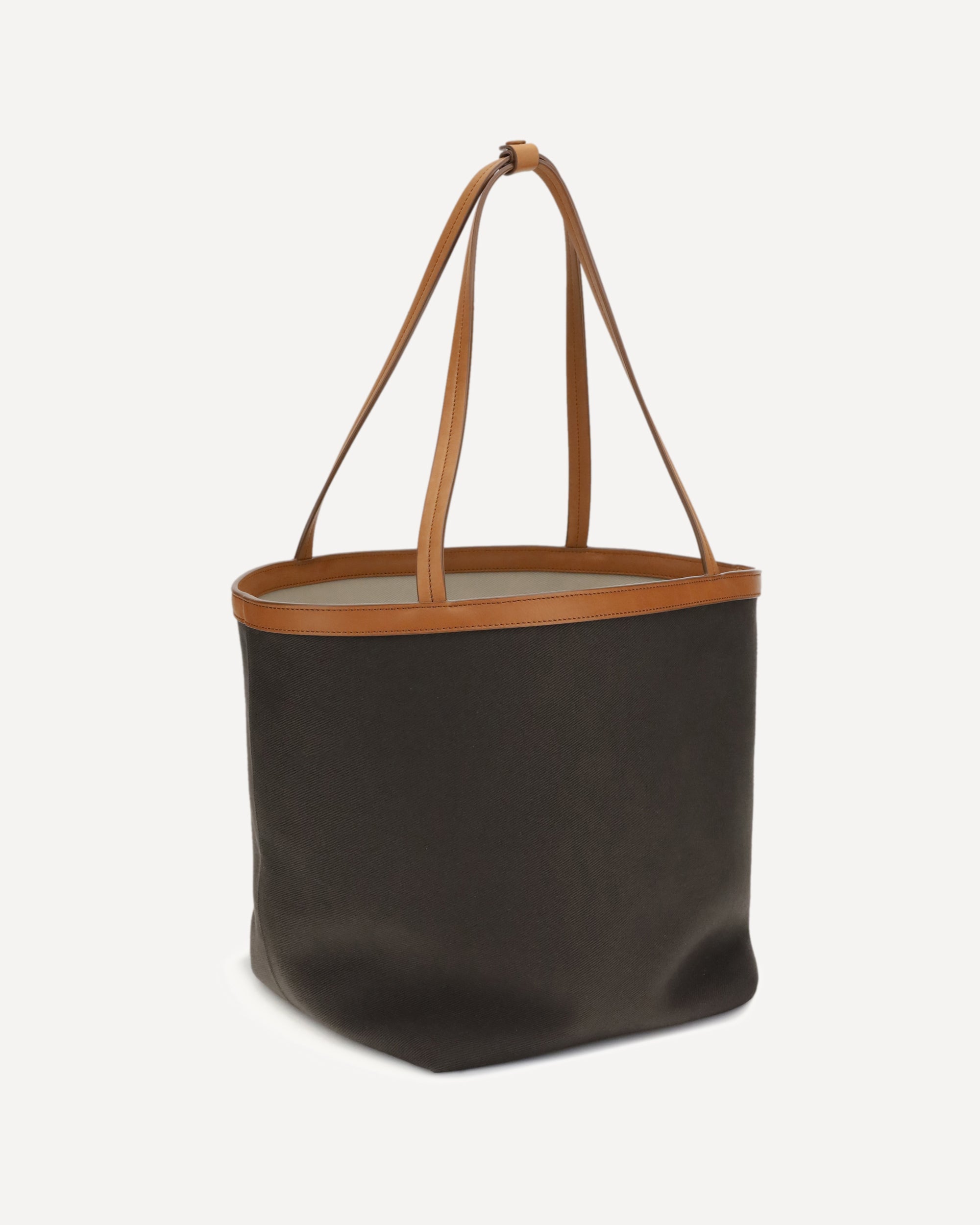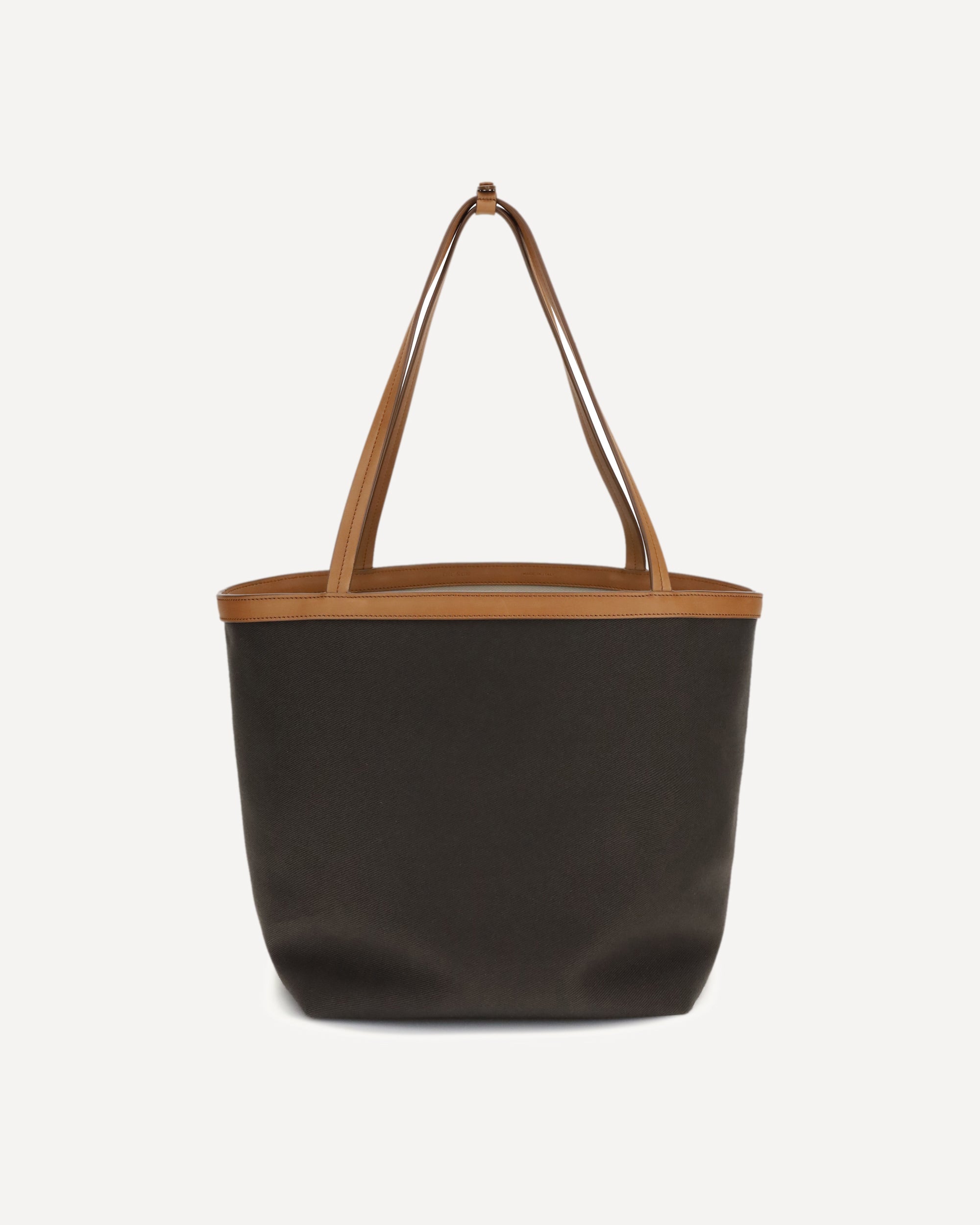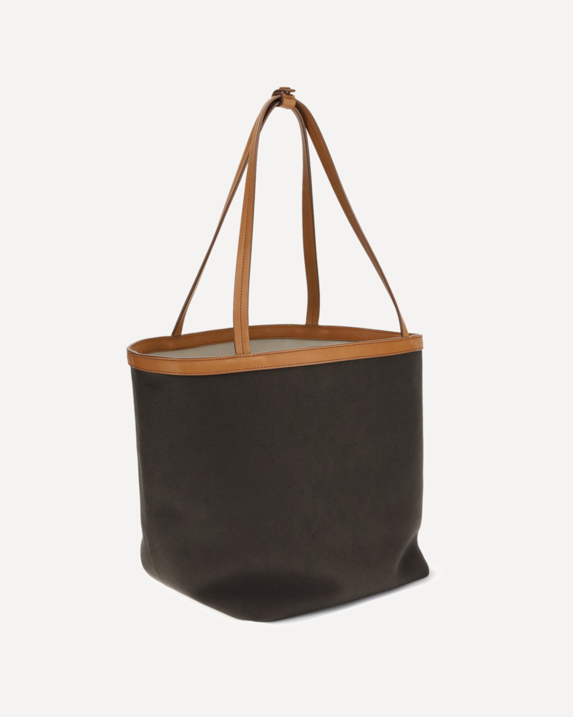 The Park Tote Bag by The Row is the epitome of elegant simplicity. Made of textured cotton twill, it offers a classic and practical silhouette with an interior snap-button closure for security. Saddle leather trim adds a touch of sophistication, while the interior clutch bag with adjustable shoulder strap offers extra functionality. A sophisticated and versatile accessory perfect for any occasion.