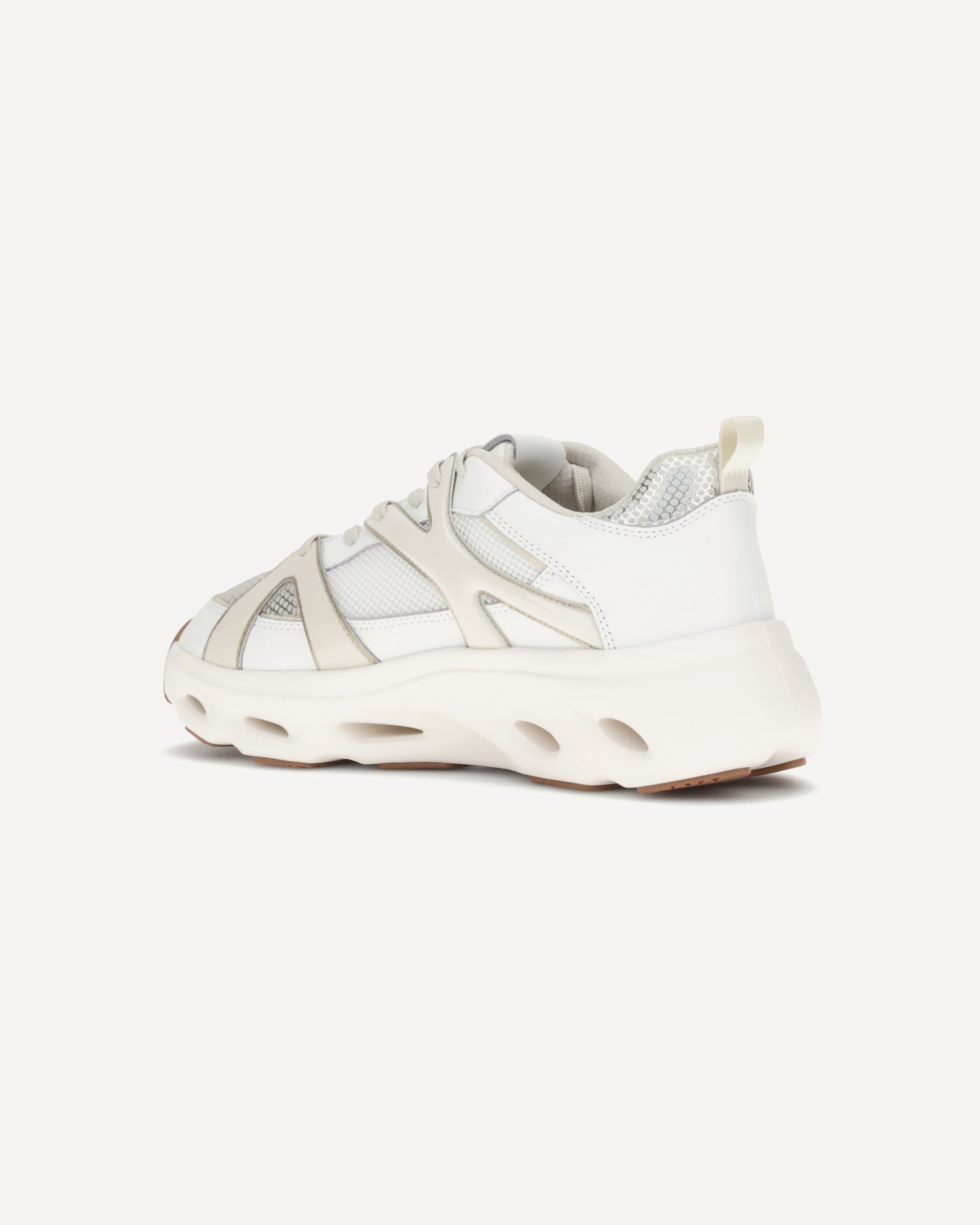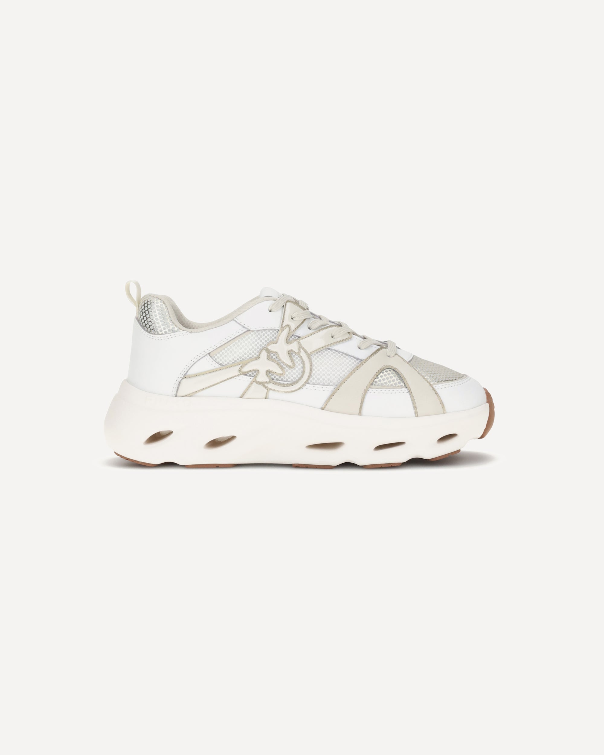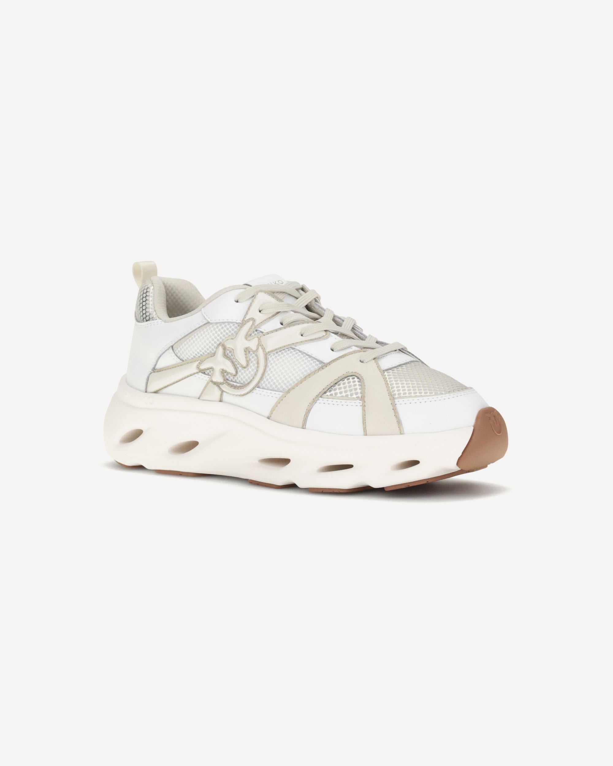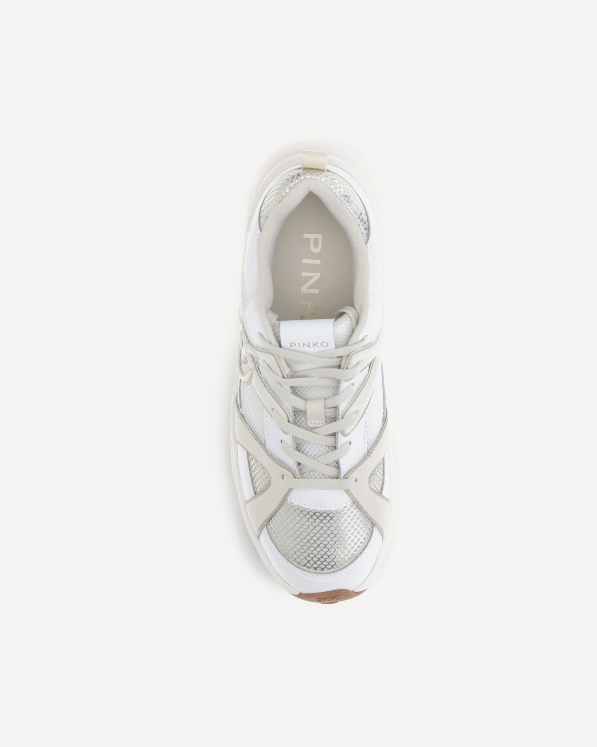 Pinko's Pink Sneakers are a lace-up model with chunky lines, perfect for those who love a bold and contemporary style. The leather upper is enriched with mesh inserts and shiny details that give dynamism and character, while the Love Birds bird logo on the outer side adds a distinctive and recognizable touch.