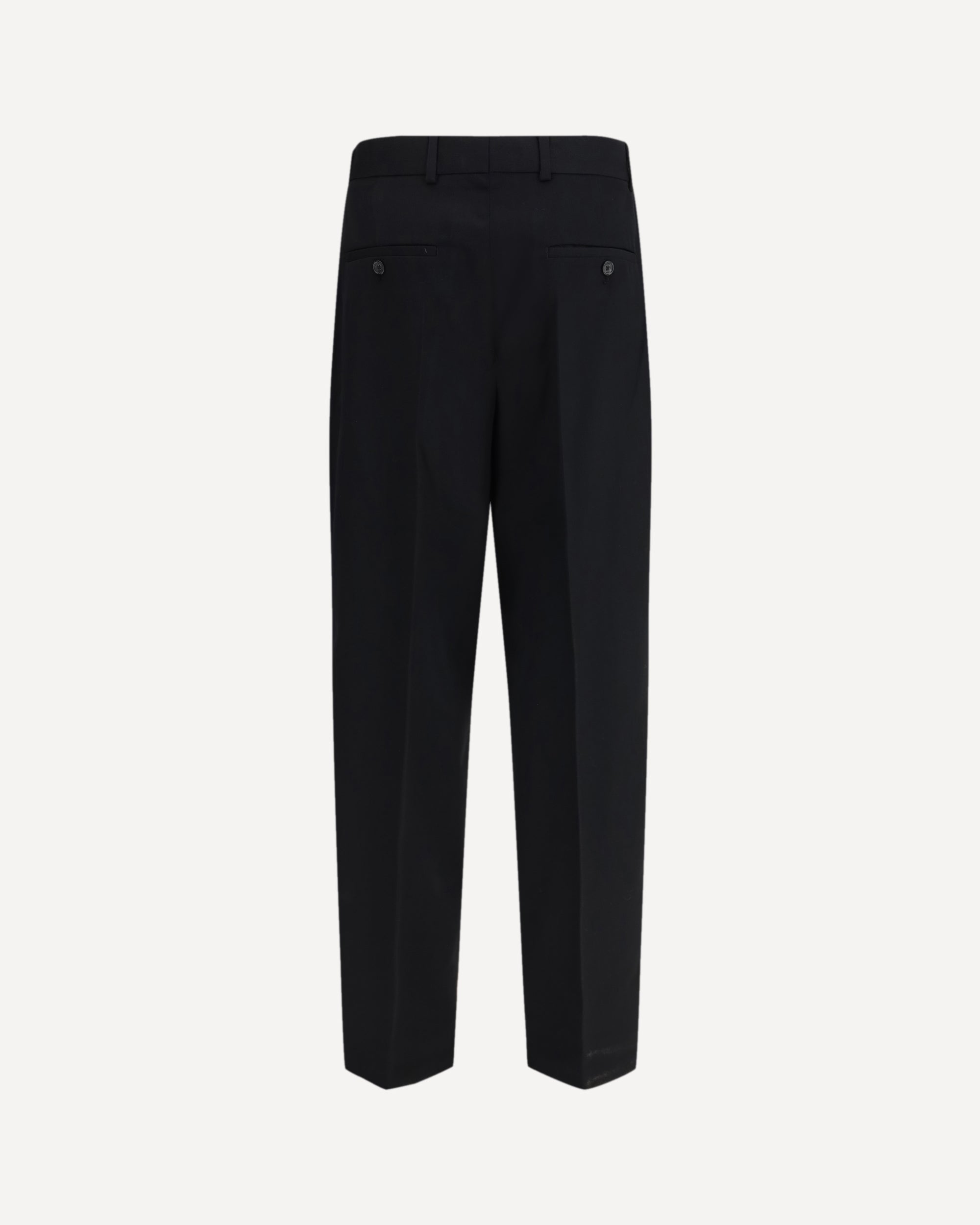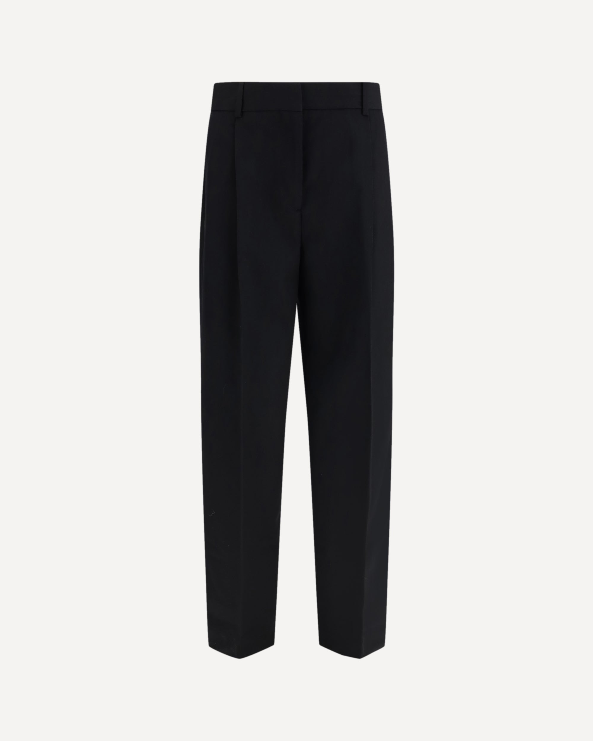 The tailored Trousers by Toteme are crafted from a refined wool blend and feature a low-rise silhouette with a modern, sophisticated attitude. The design is completed with belt loops, a front hook-and-zip fastening, and side and back pockets, delivering understated elegance and an impeccable fit for a contemporary wardrobe.