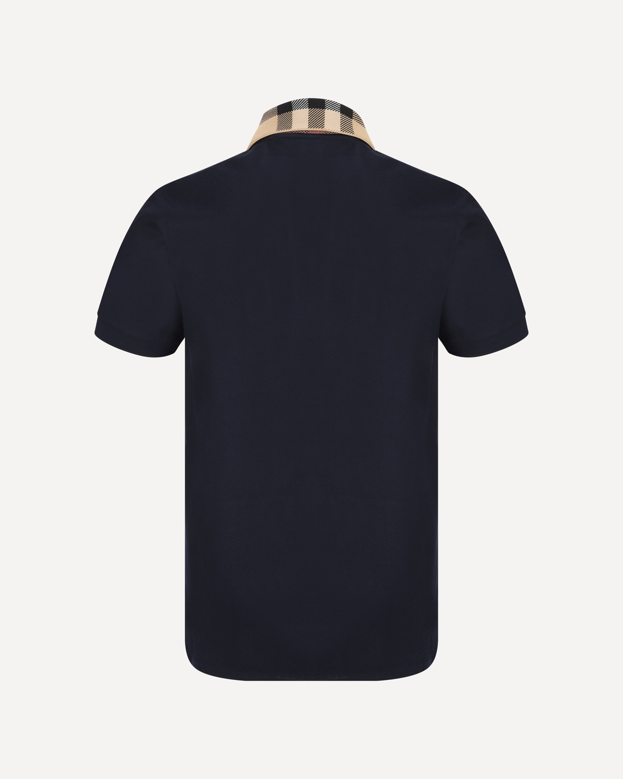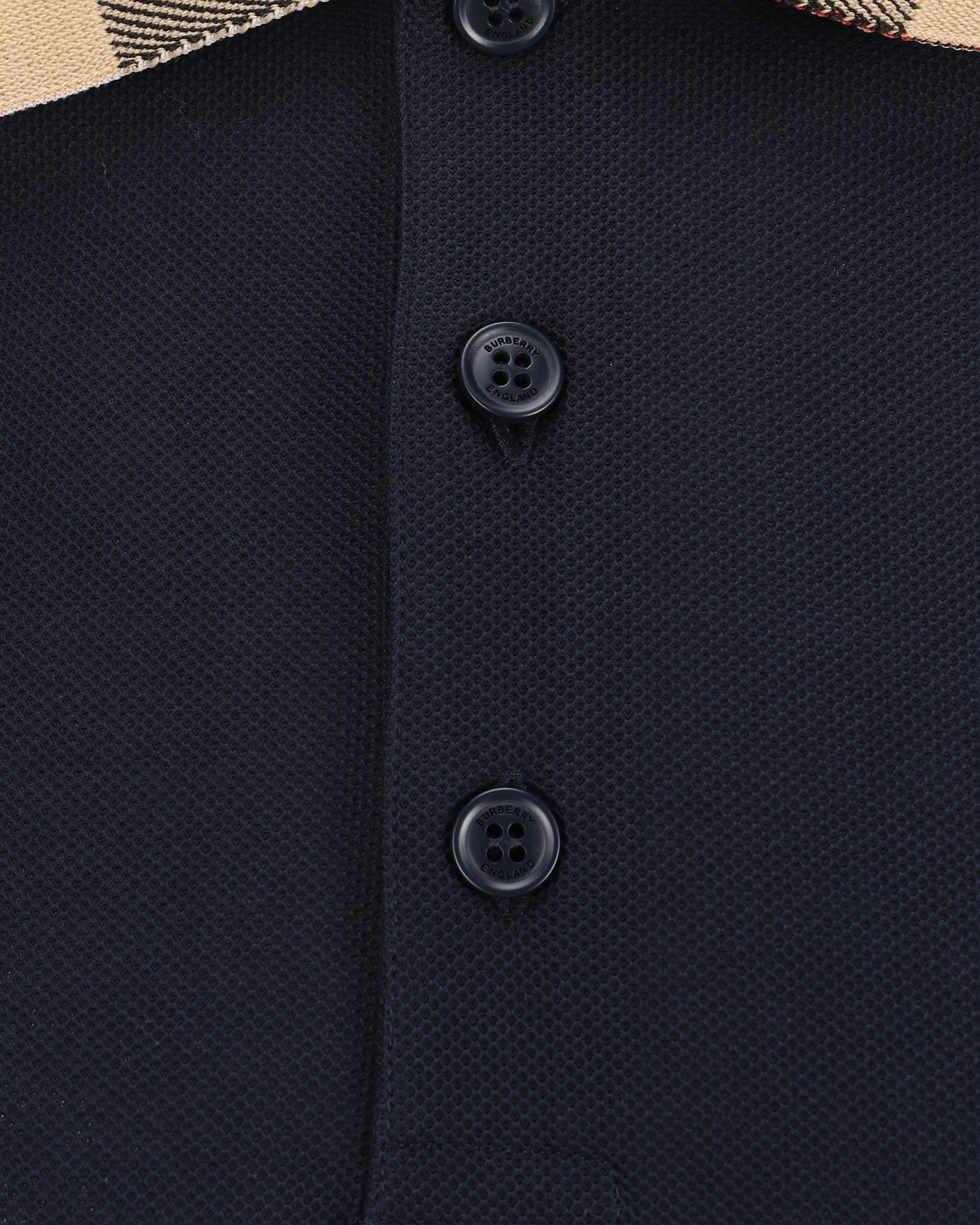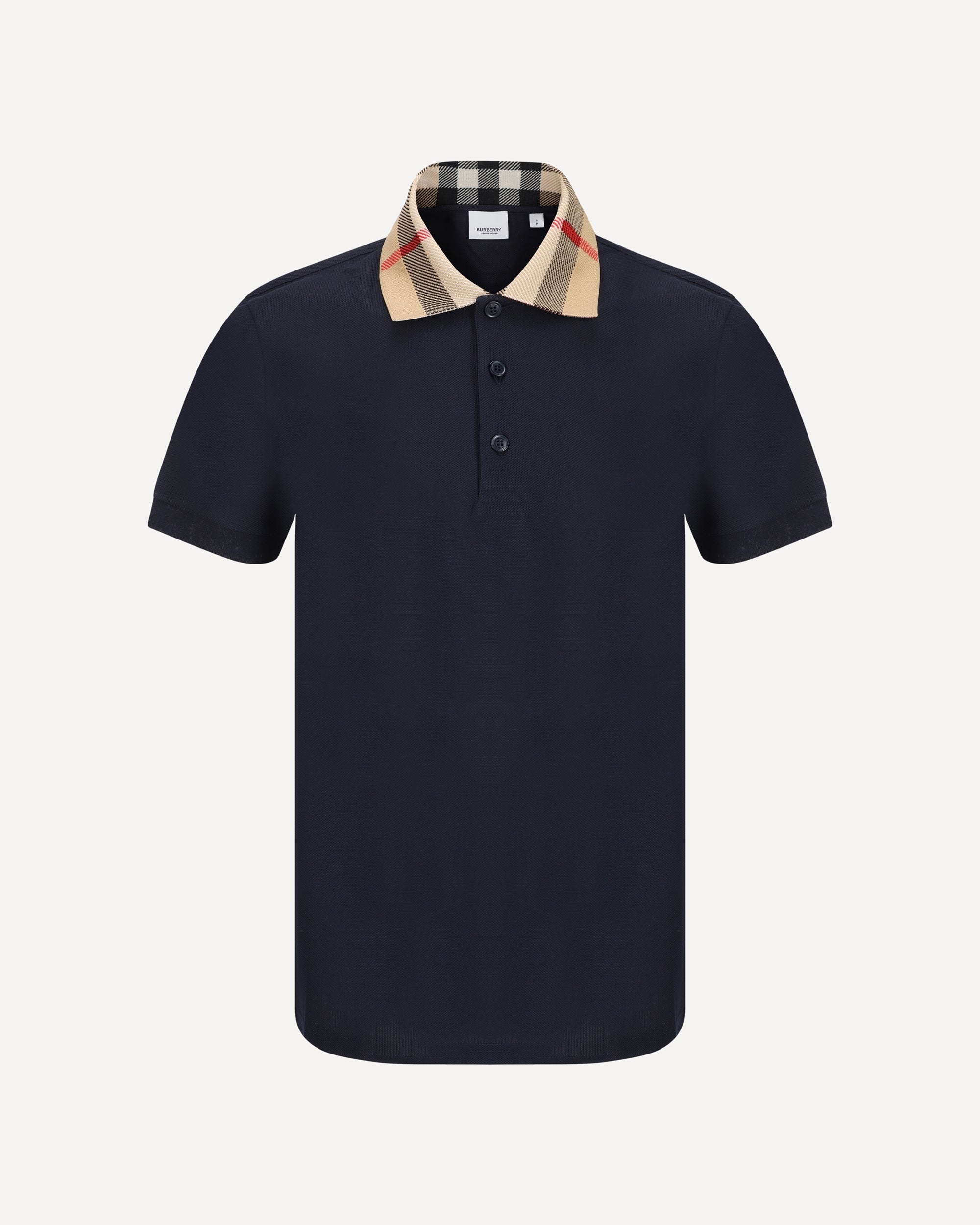 Cotton Polo Shirt by Burberry, classic ribbed collar with iconic all-over repeated Archivio Check pattern detail, tone-on-tone front buttons, monochrome pattern, regular fit.