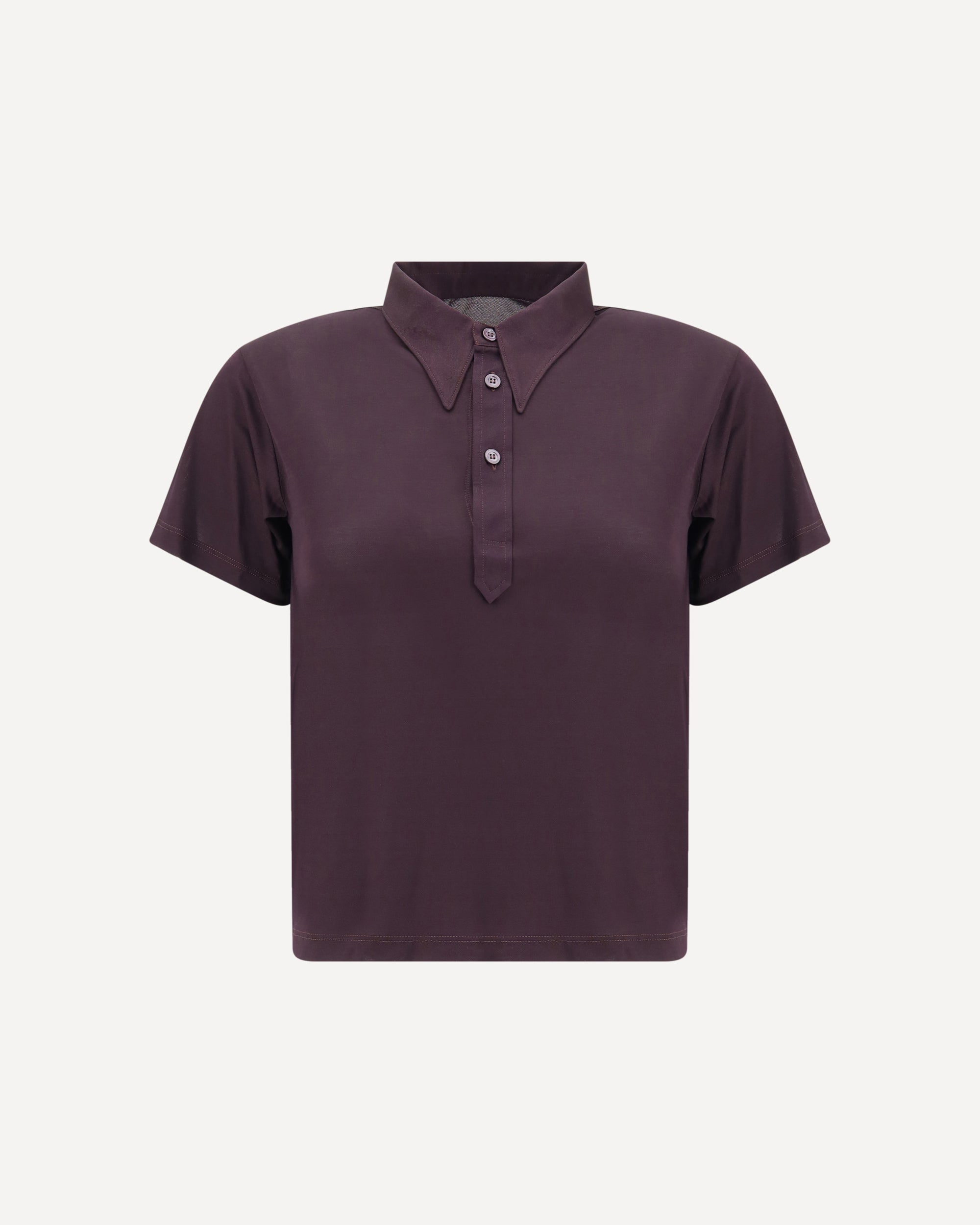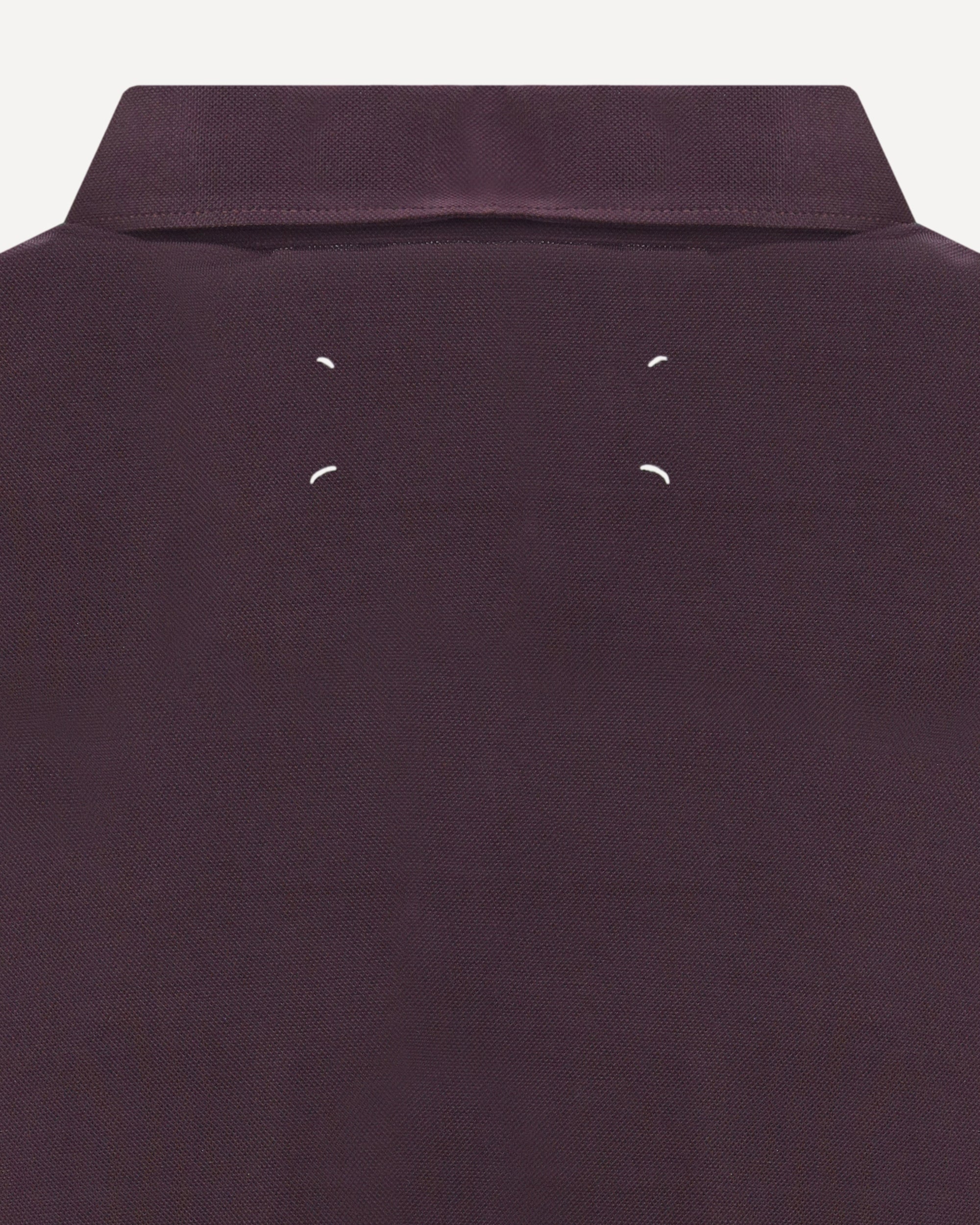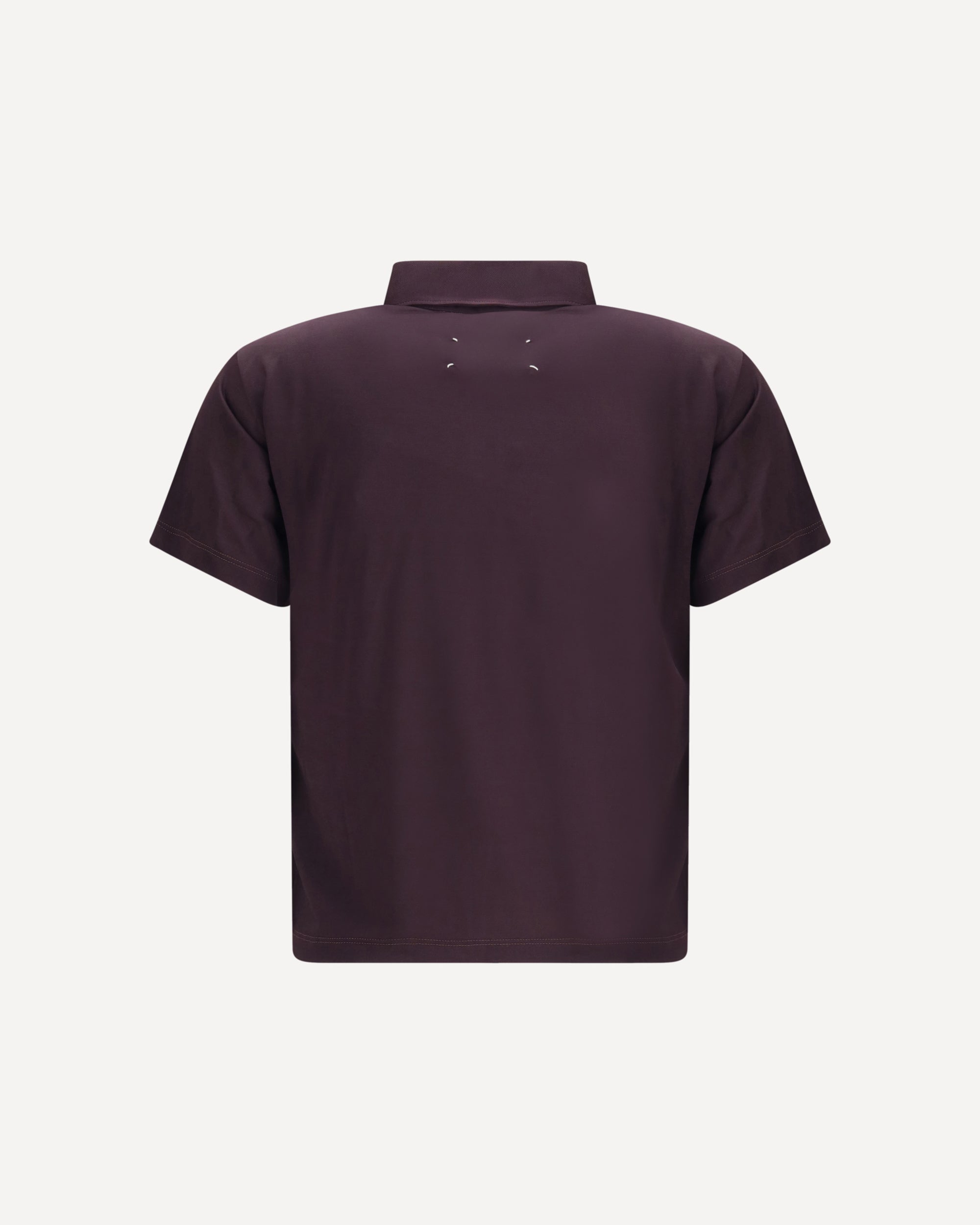 Semi-sheer polo Shirt by Margiela features a classic collar and a four-button front closure, while short sleeves complete the design, lending a light and modern touch to this garment with minimalist appeal.