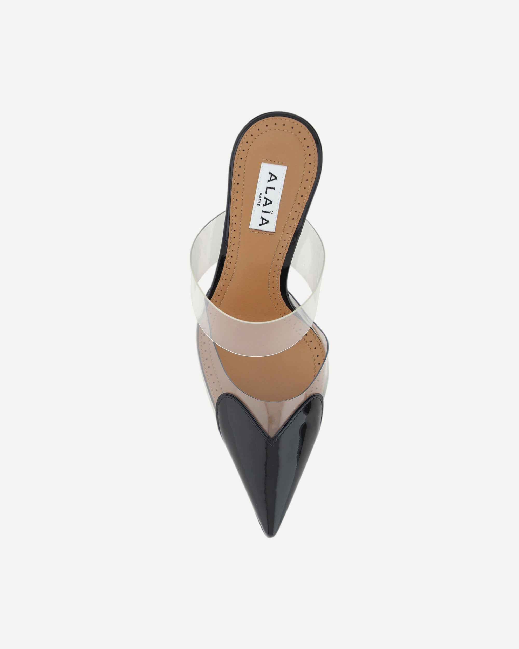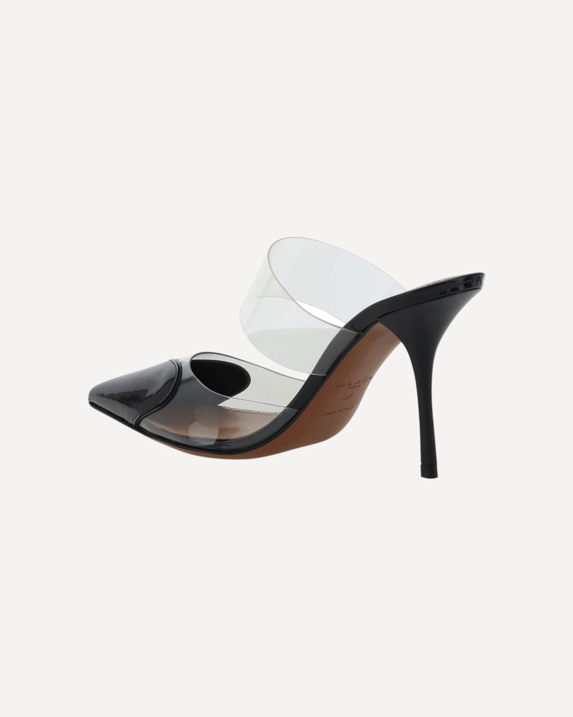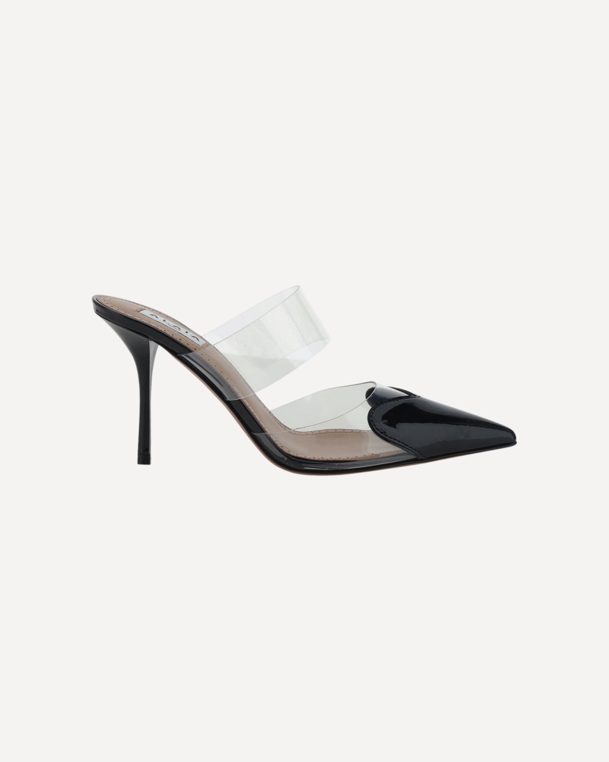 The Le Coeur Pumps by Alaïa combine elegance and modernity. Featuring an almond toe and wide transparent band across the back of the foot, they are made of patent leather and complemented by a leather stiletto heel. The branded insole adds a distinctive touch of luxury and sophistication.