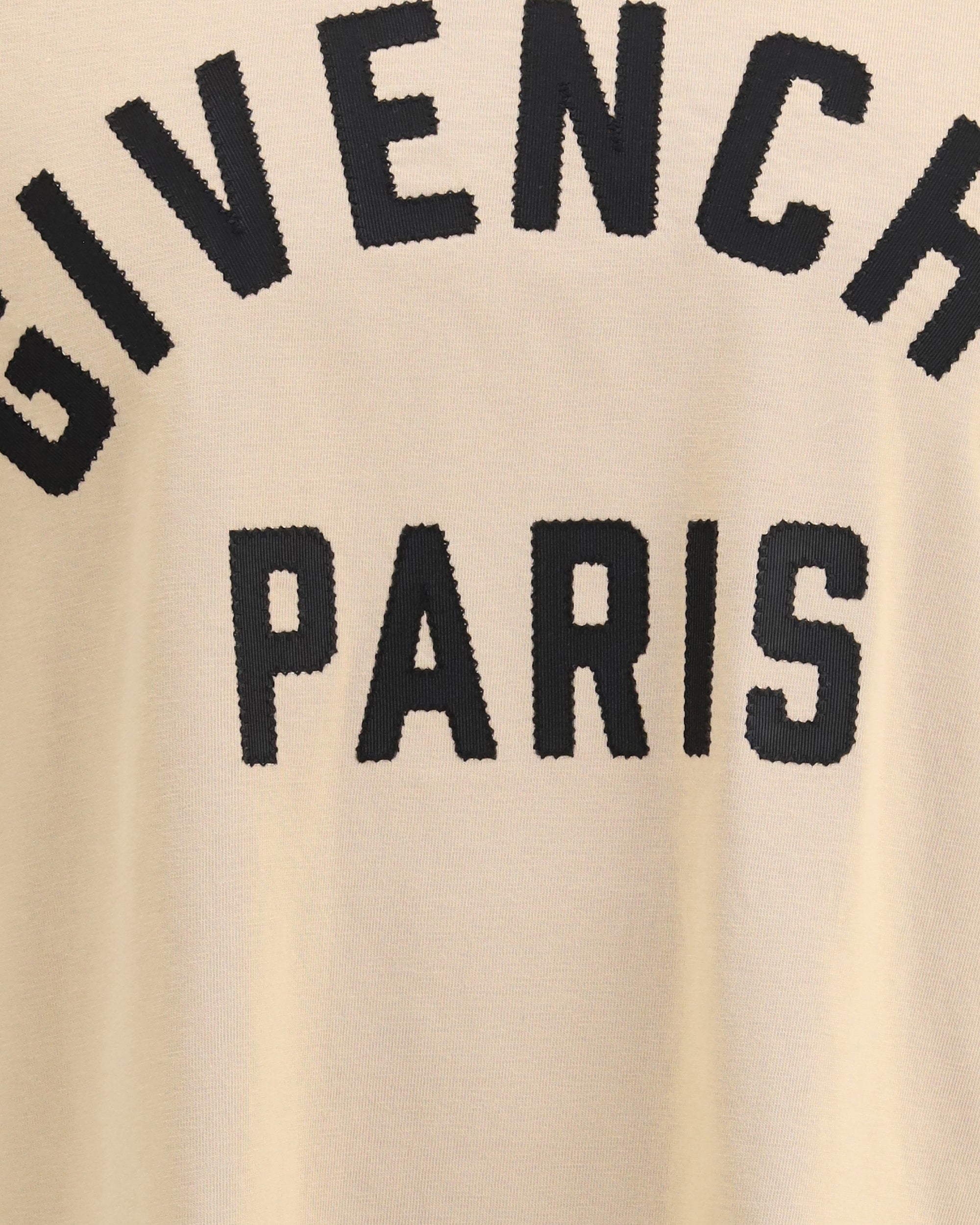 The logo T-Shirt by Givenchy is an iconic garment with an essential and refined style. Crafted from soft cotton, it features a ribbed crew neck and a contrasting stitched logo on the front, a distinctive detail that signs the design with elegance and recognition.