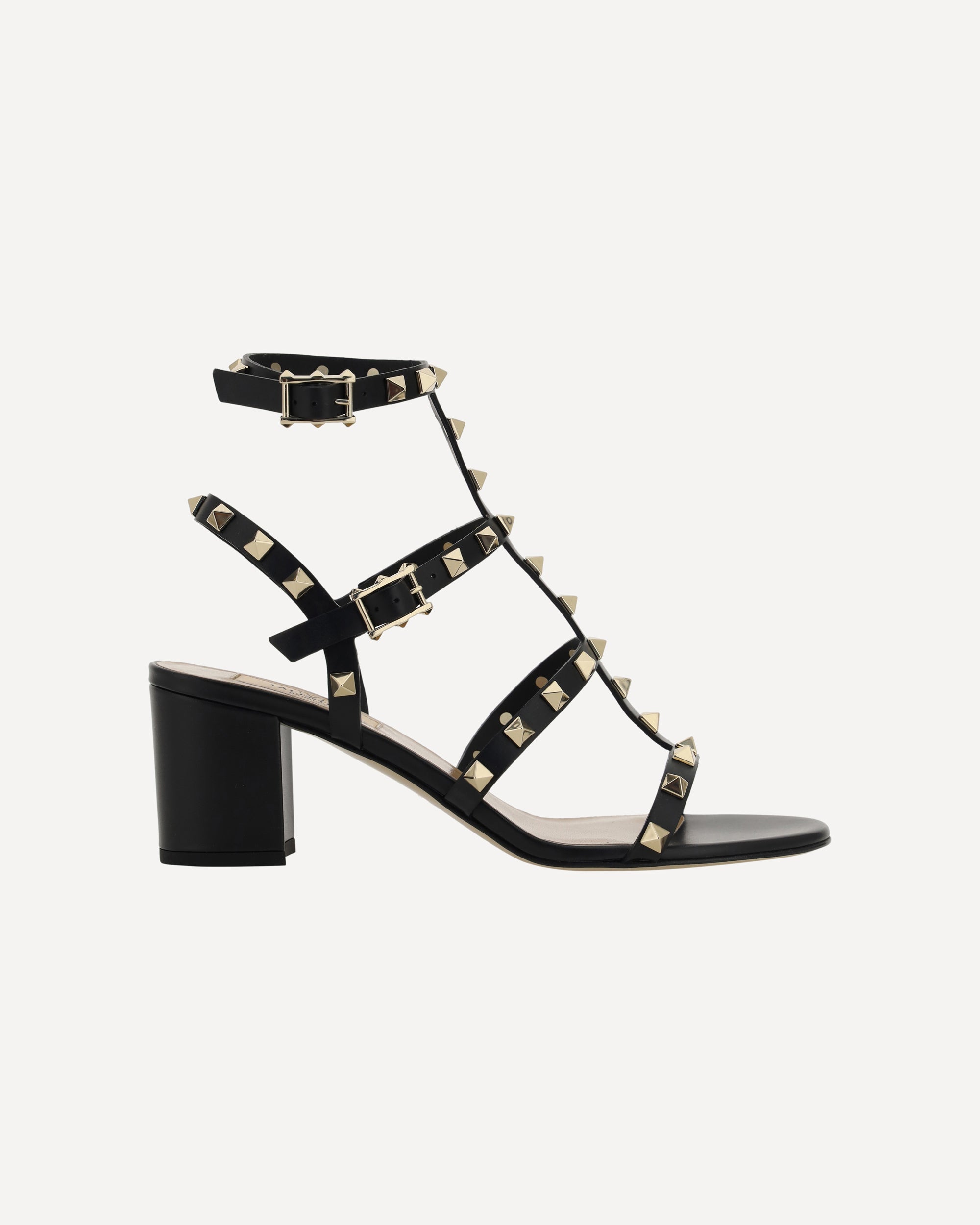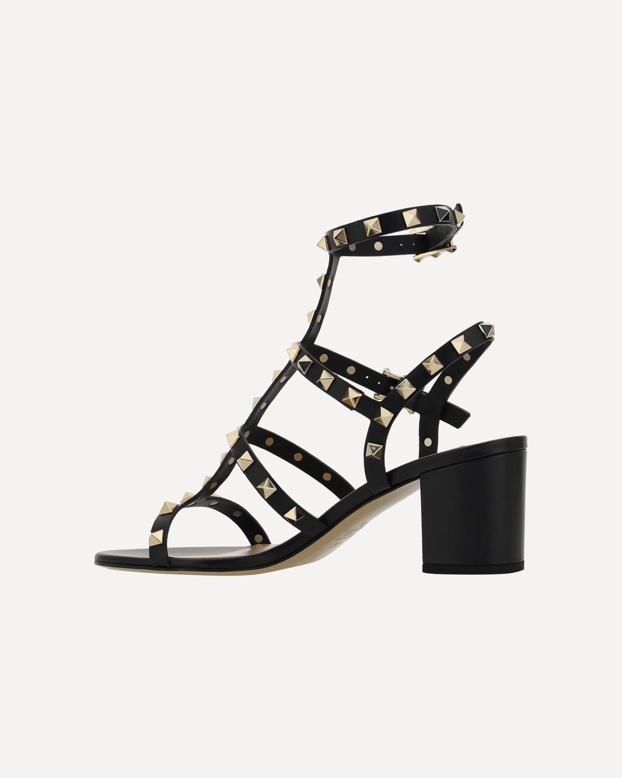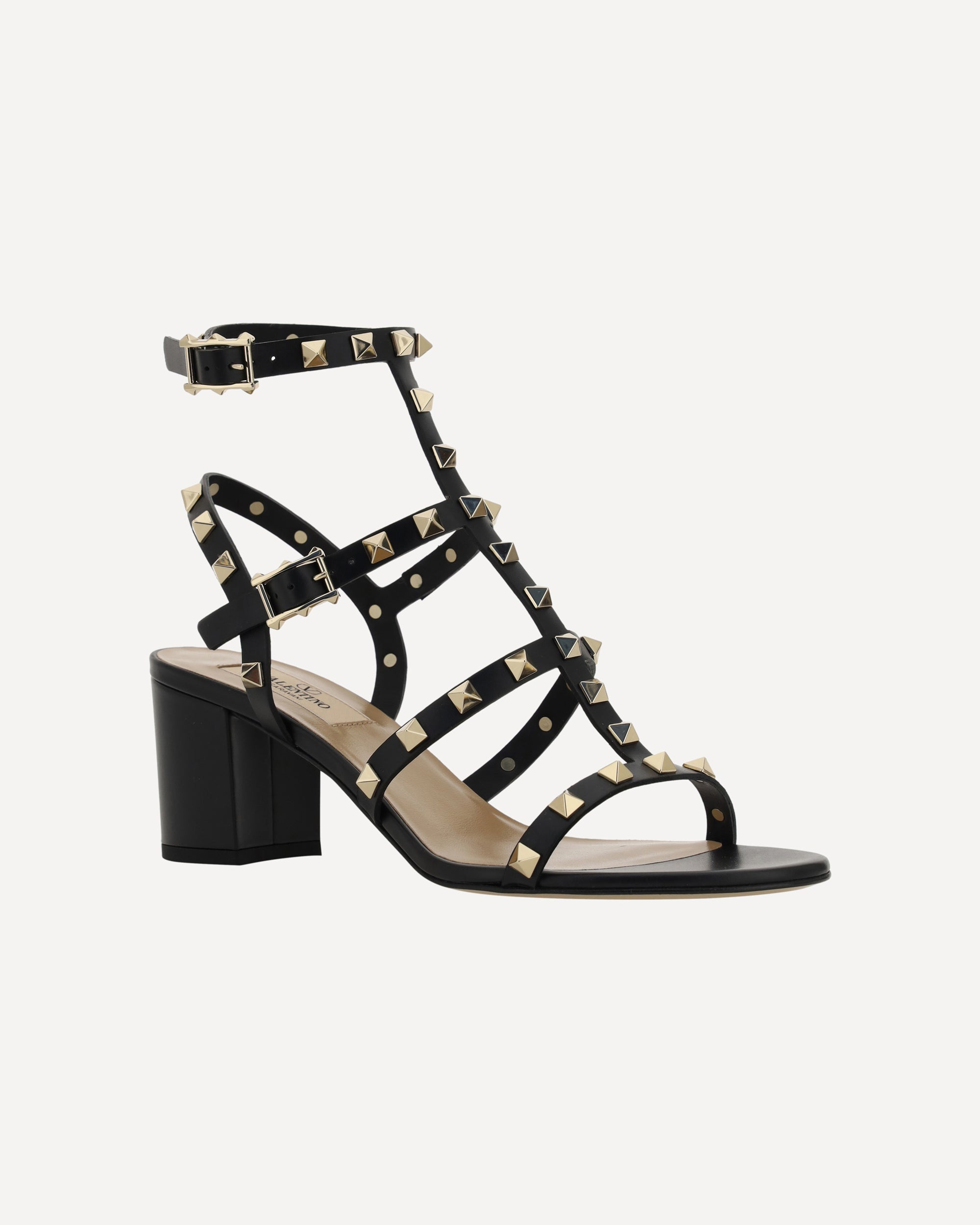 Valentino Garavani's leather Rockstud Sandals are the perfect expression of bold, sophisticated elegance. The round toe and adjustable ankle lap strap closure via a side buckle offer a secure, customized fit. The chunky leather heel lends stability and comfort, while the iconic all-over applied Rockstud studs add a distinctive and gritty touch, making these sandals a true style statement. The branded insole completes the design with a luxurious detail.