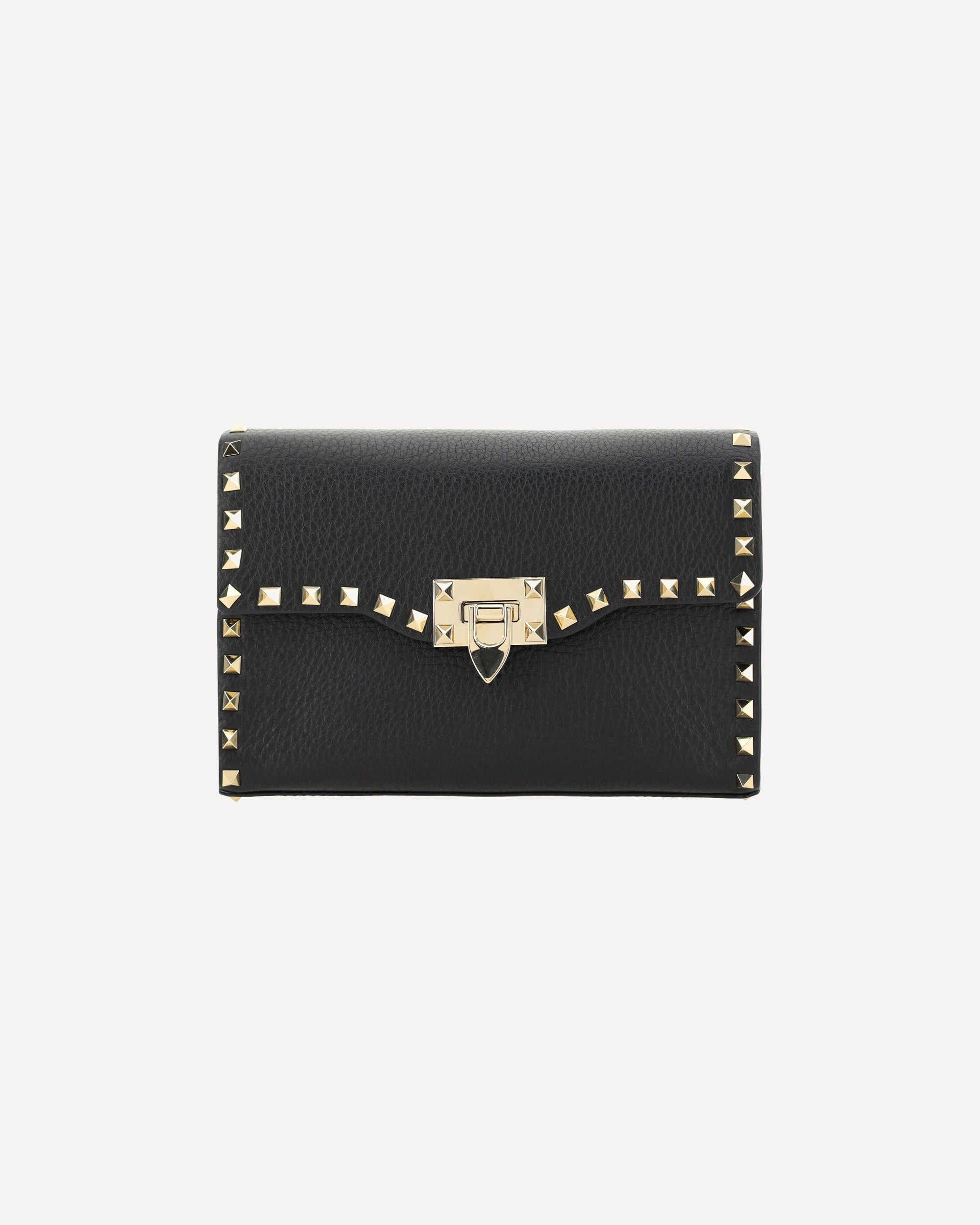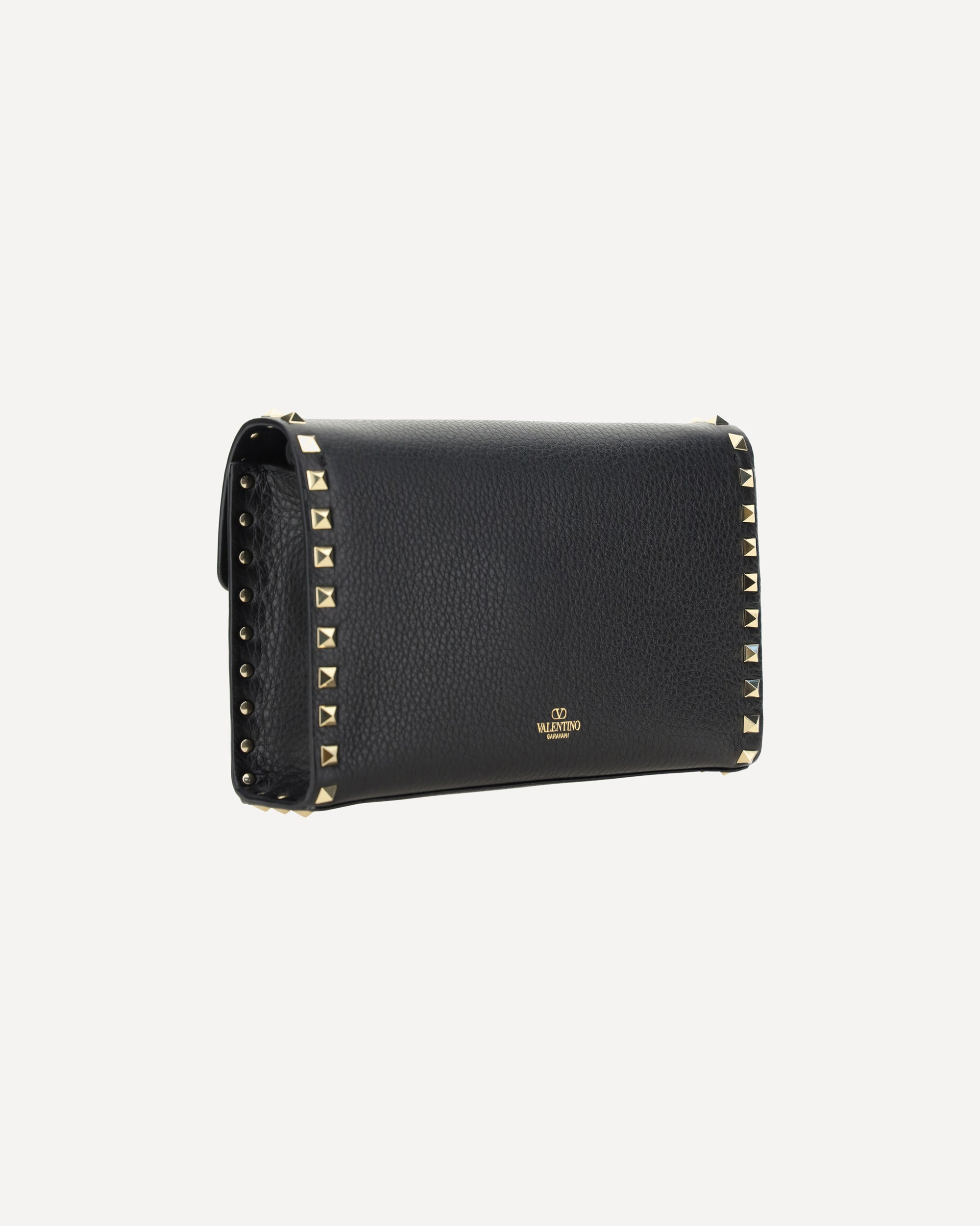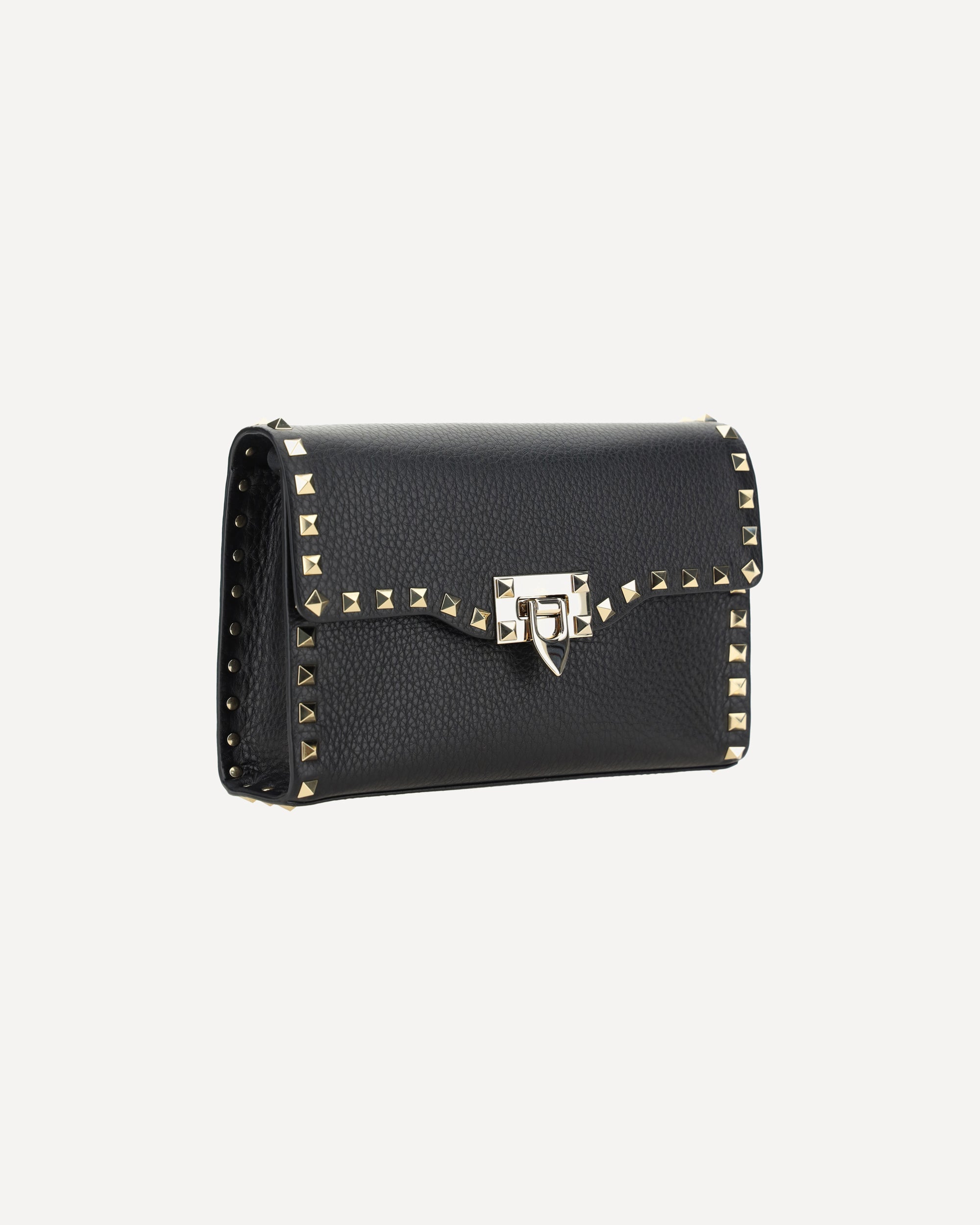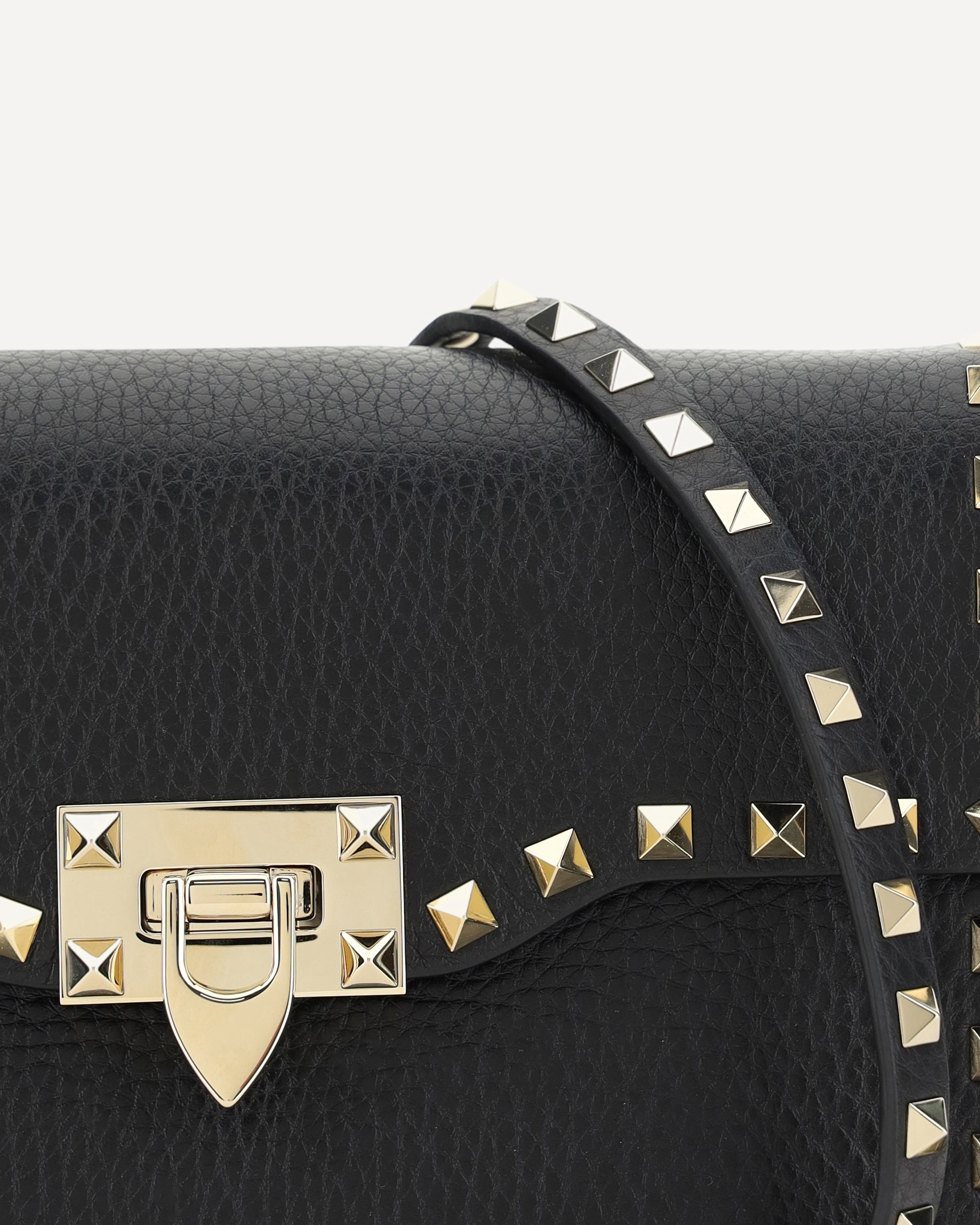 Valentino Garavani's Rockstud small leather Shoulder Bag is a sophisticated accessory with a grained leather design. The edging is embellished with the iconic Rockstud studs, applied on the front and back. The front closure features a swivel, while the back features the brand's contrasting printed monogram. The shoulder strap combines leather and removable chain, offering versatility and style. A perfect balance between elegance and boldness.