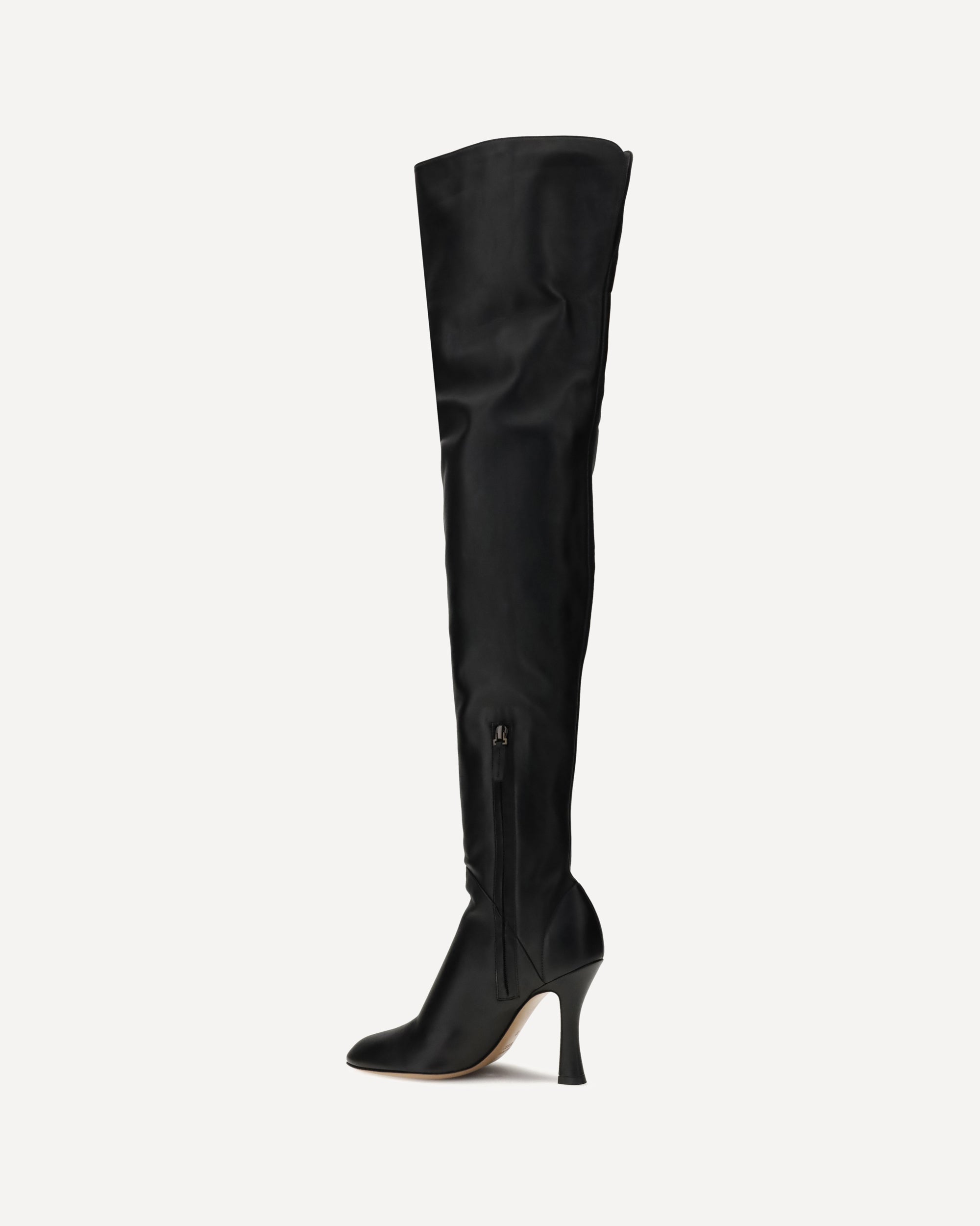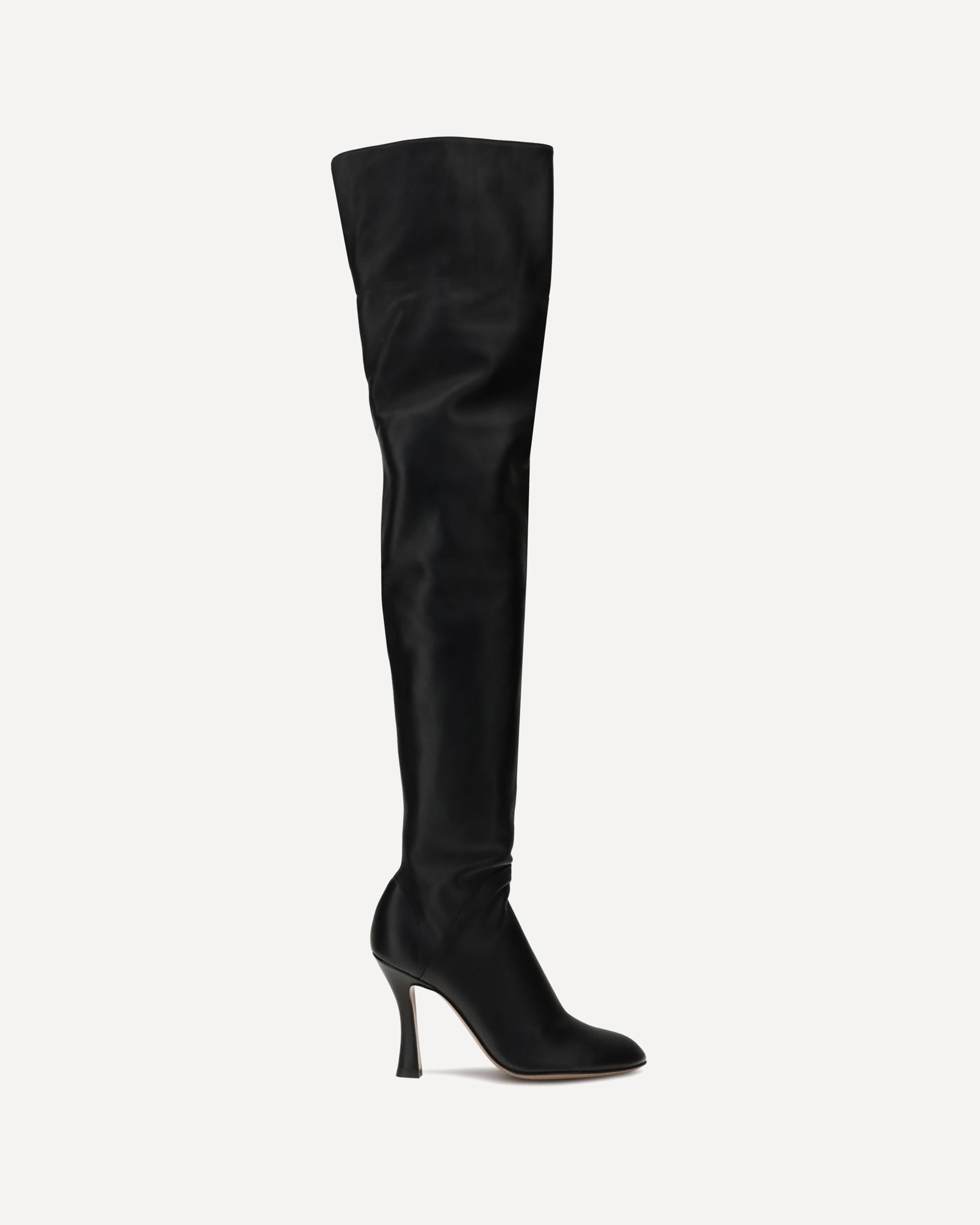 The Boulevard over-the-knee Boots by Petar Petrov are crafted from soft, ultra-flexible leather that elegantly hugs the leg. The rounded toe follows the natural line of the foot, while the 10 cm stiletto heel offers a sleek and comfortable fit. Crafted from premium lambskin nappa, they feature a practical internal zip closure. A sophisticated and timeless style, perfect for enhancing seasonal looks.