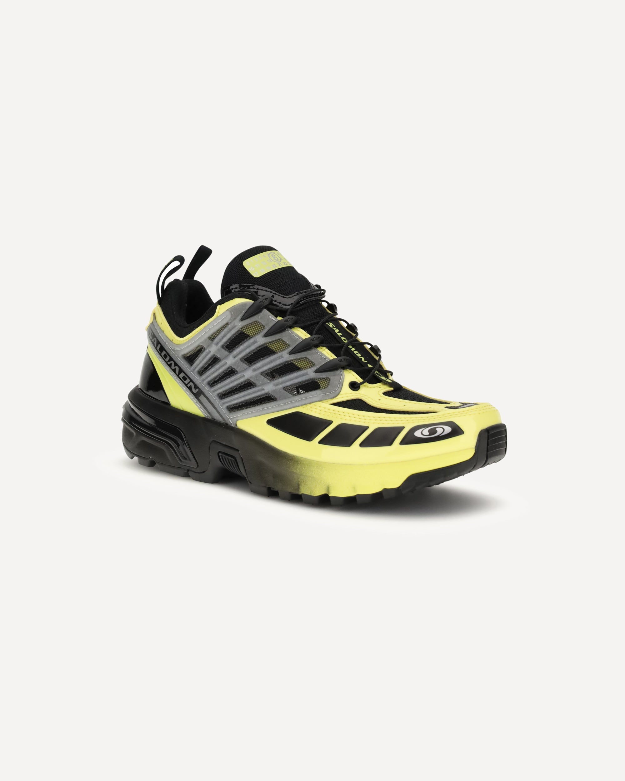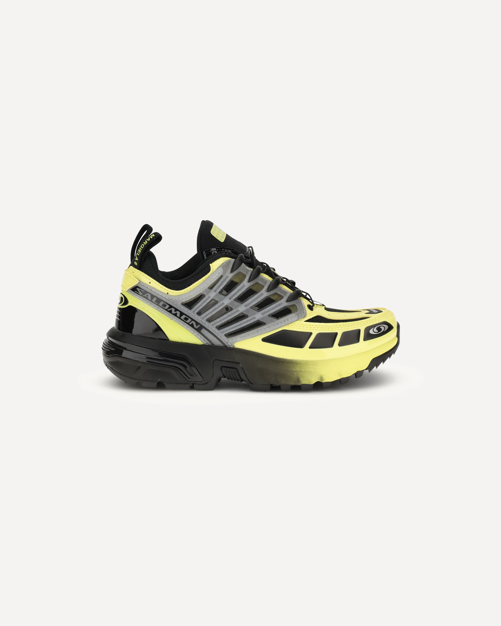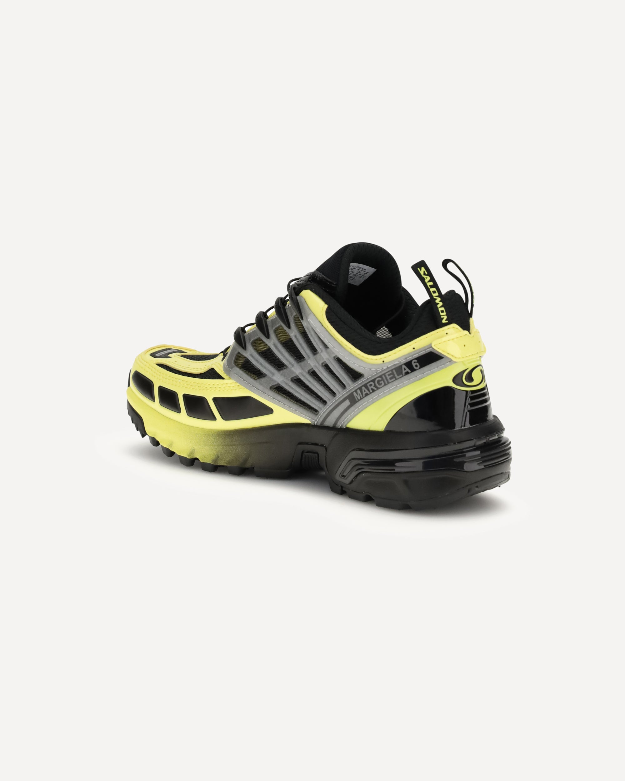 The Sneakers by Salomon X MM6 are born from the exclusive collaboration between MM6 Maison Margiela and Salomon, fusing experimental aesthetics and technical performance. Made of technical mesh and synthetic material in shades of yellow and black, they feature ultra-thin laces, a translucent TPU heel, a rear pullback, iconic logos on the upper, and a high-performance rubber outsole. A model that expresses the concept of transition and functionality with a bold, contemporary style.