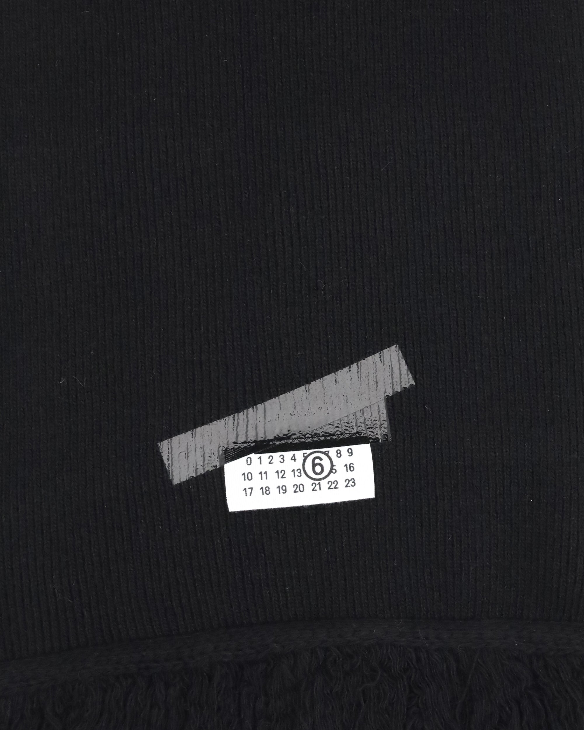 The wool Scarf by MM6 is made of soft knit wool, with an elongated shape that makes it versatile and cozy. Featuring irregular stitches and a raw fringe, it adds a touch of texture to the design. The inverted MM6 signature and number label interrupt the symmetry, creating a striking visual interference that balances the rhythm of the knit with an element of originality and character. An accessory that combines comfort and modernity.