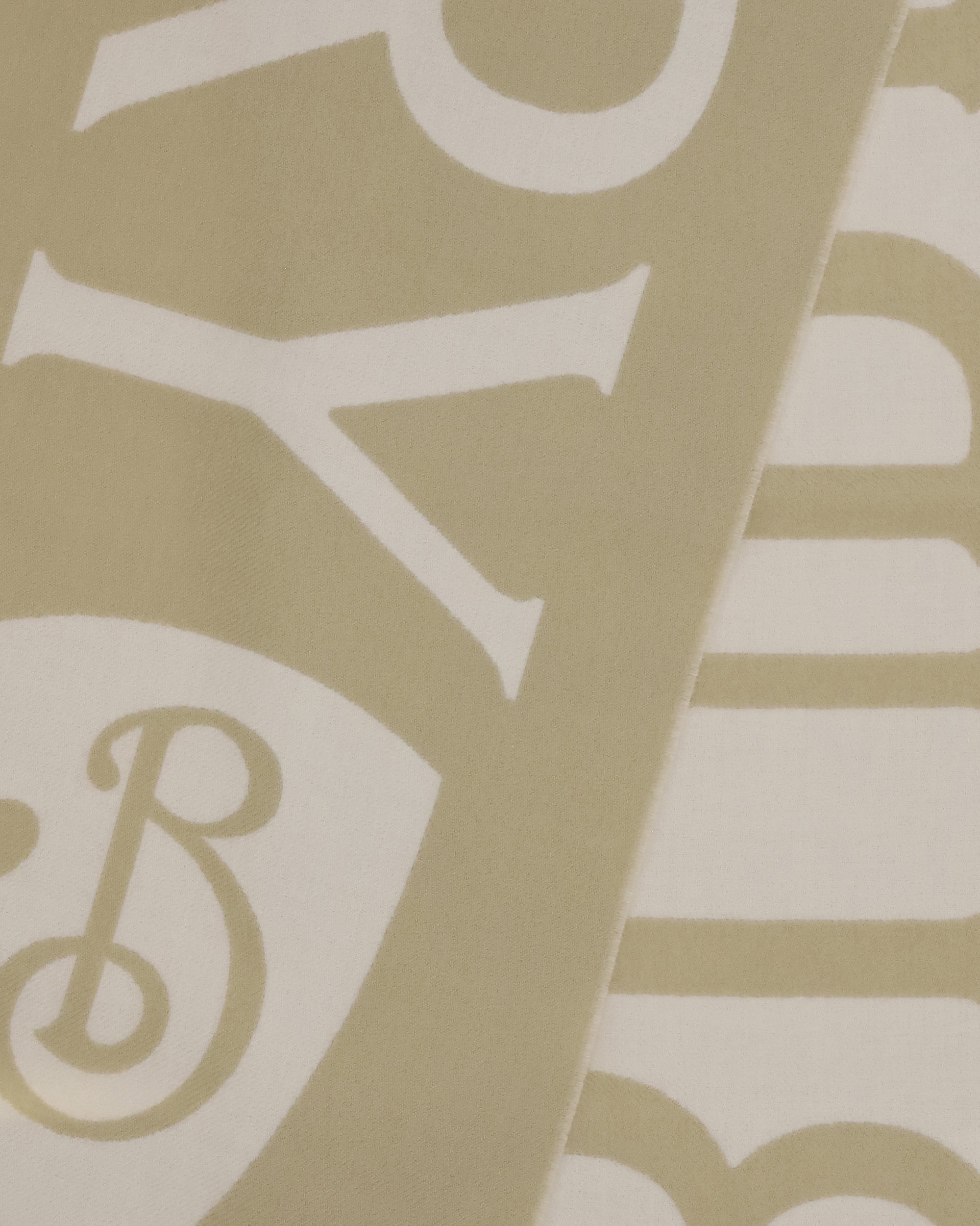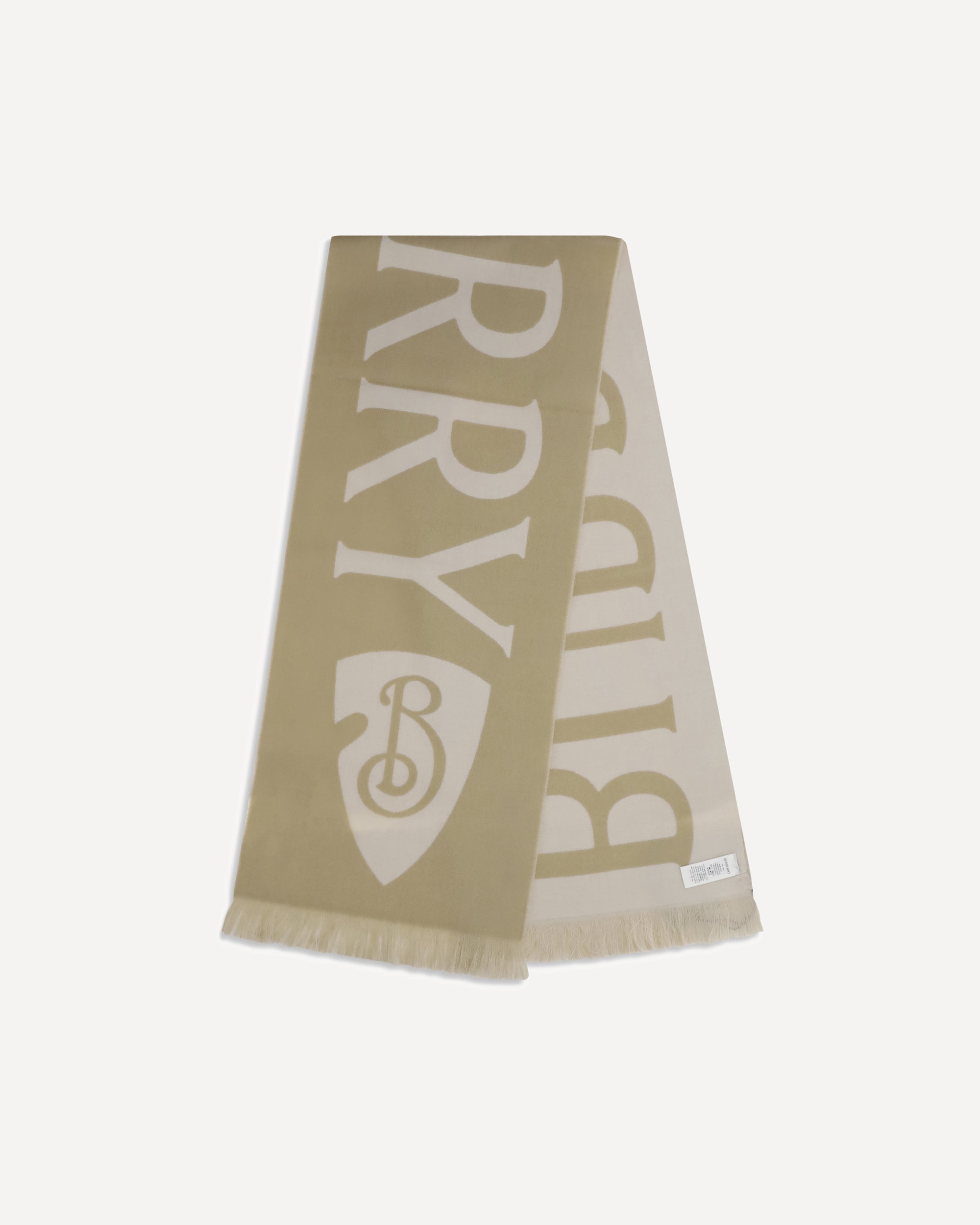 The logo wool Scarf by Burberry is an accessory with a classic and distinctive style. Made in Italy, it features a two-tone design with Burberry lettering and a jacquard B Shield pattern, inspired by the iconic Equestrian Knight Design. Rectangular in shape, it is finished with short, thin bangs at the ends for a touch of timeless elegance.
