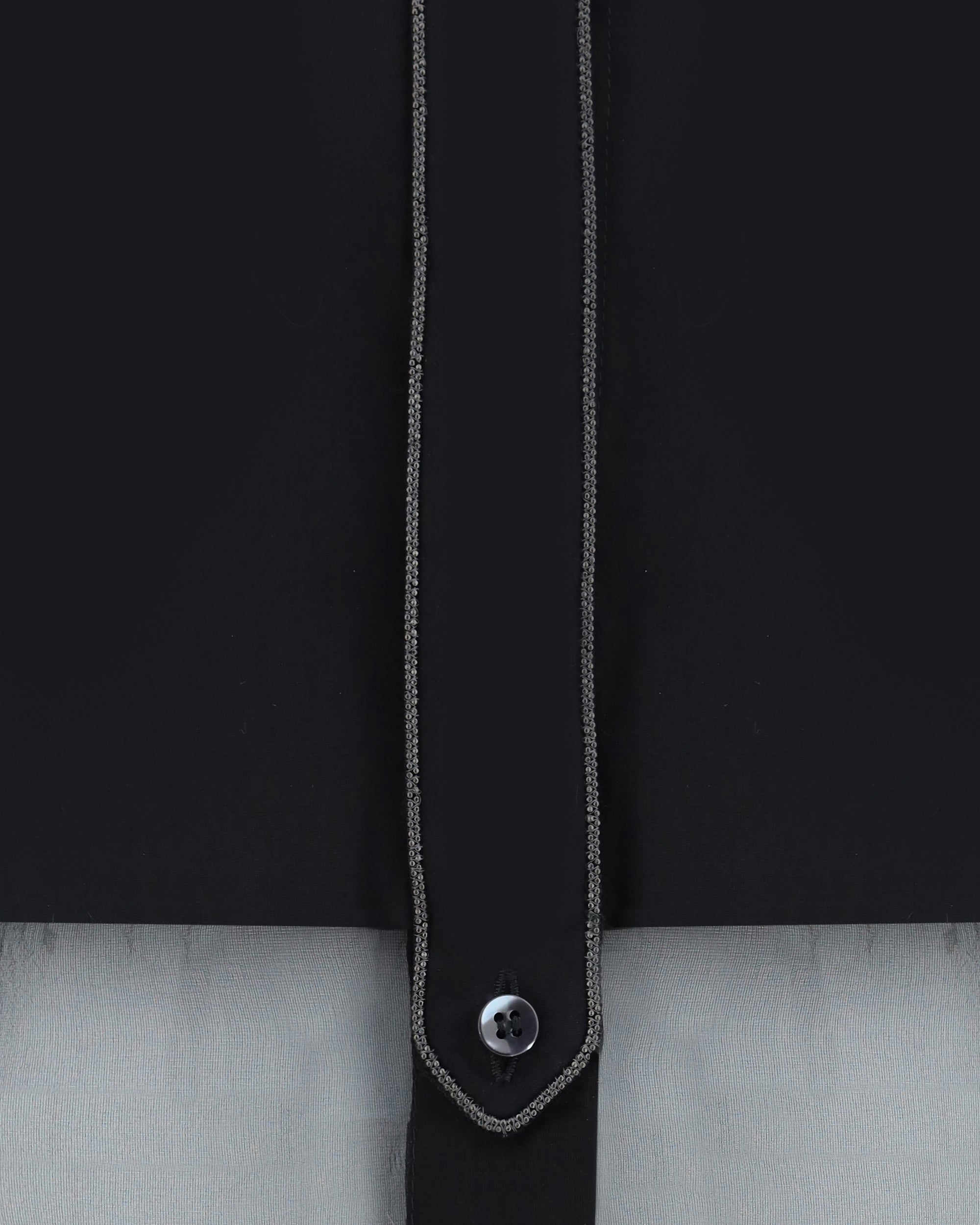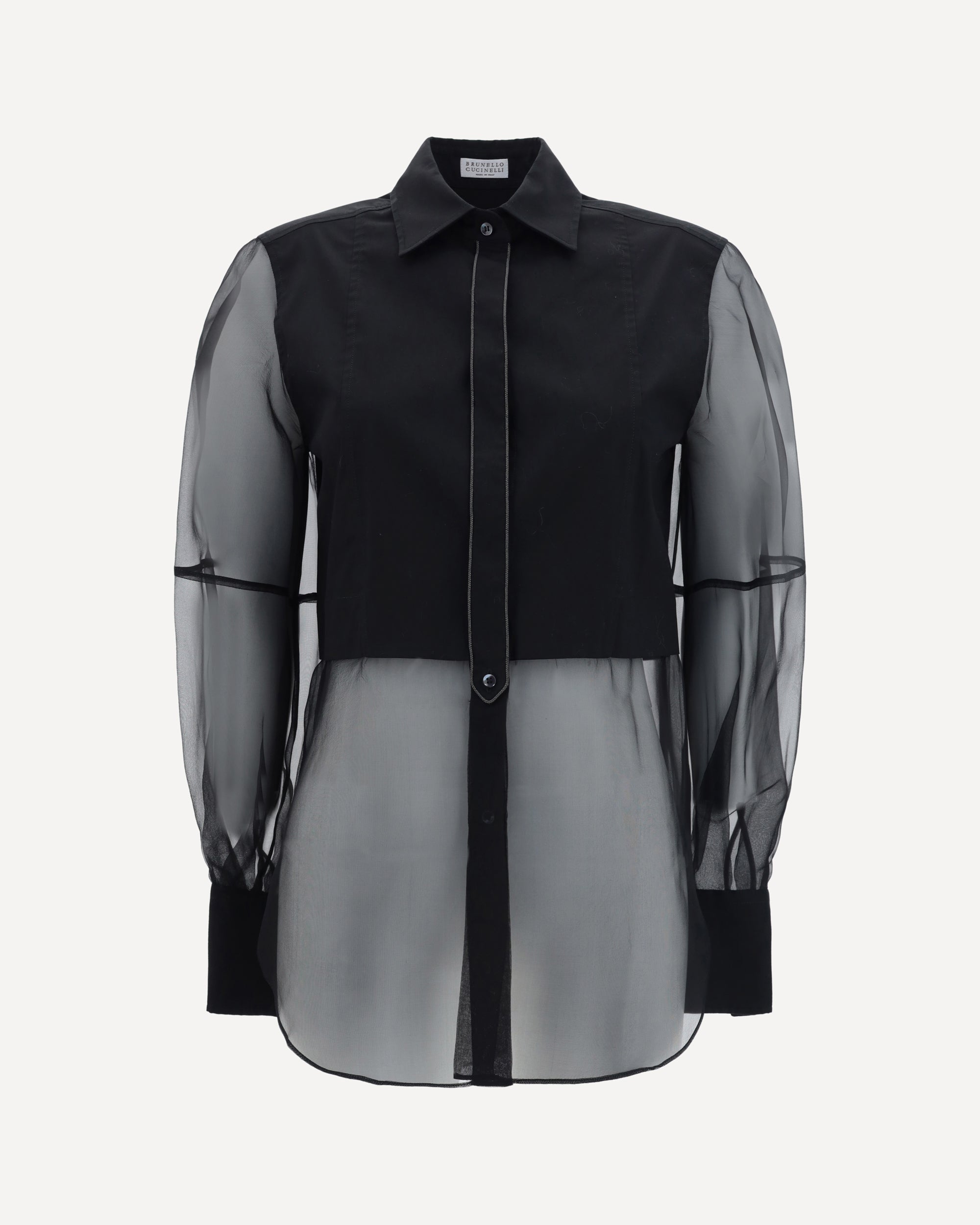 Cotone Shirt by Brunello Cucinelli featuring a classic collar, a front button fastening, a semi-transparent design, the brand's iconic shiny jewel detail applied to front panel, a monochrome pattern, and a regular fit.