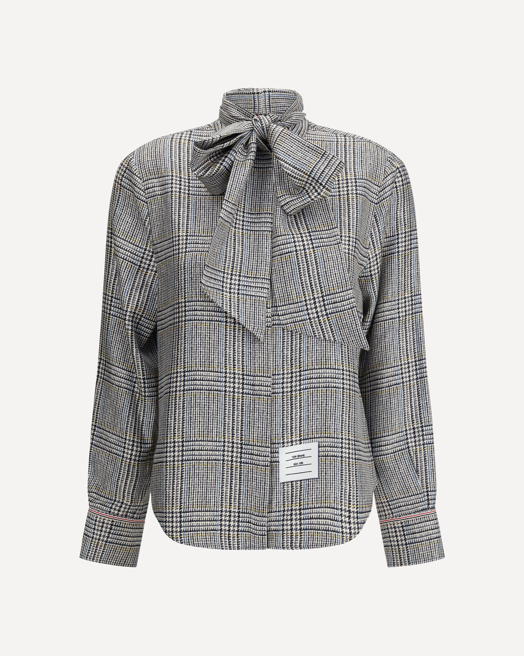 The Hunting Tweed Silk Twill Shirt by Thom Browne blends tradition with modernity in a sophisticated piece. Crafted from heritage Hunting tweed, a historic Scottish fabric, this shirt carries a century-old legacy while offering a contemporary fit, with lightweight silk that drapes effortlessly. The detachable bow at the collar adds an elegant touch, while the Thom Browne name tag and subtle grosgrain trim at the cuffs give it a distinctive edge. Pair it with the Hunting Tweed Backstrap Trousers for a refined look.