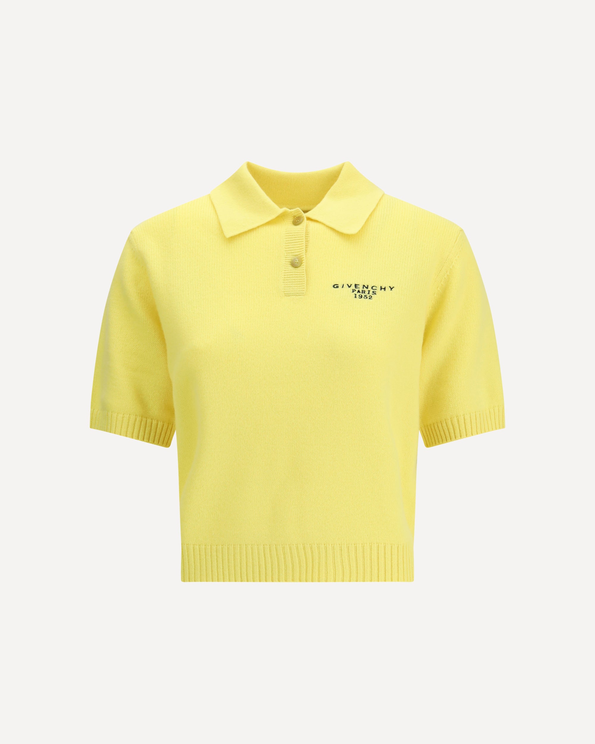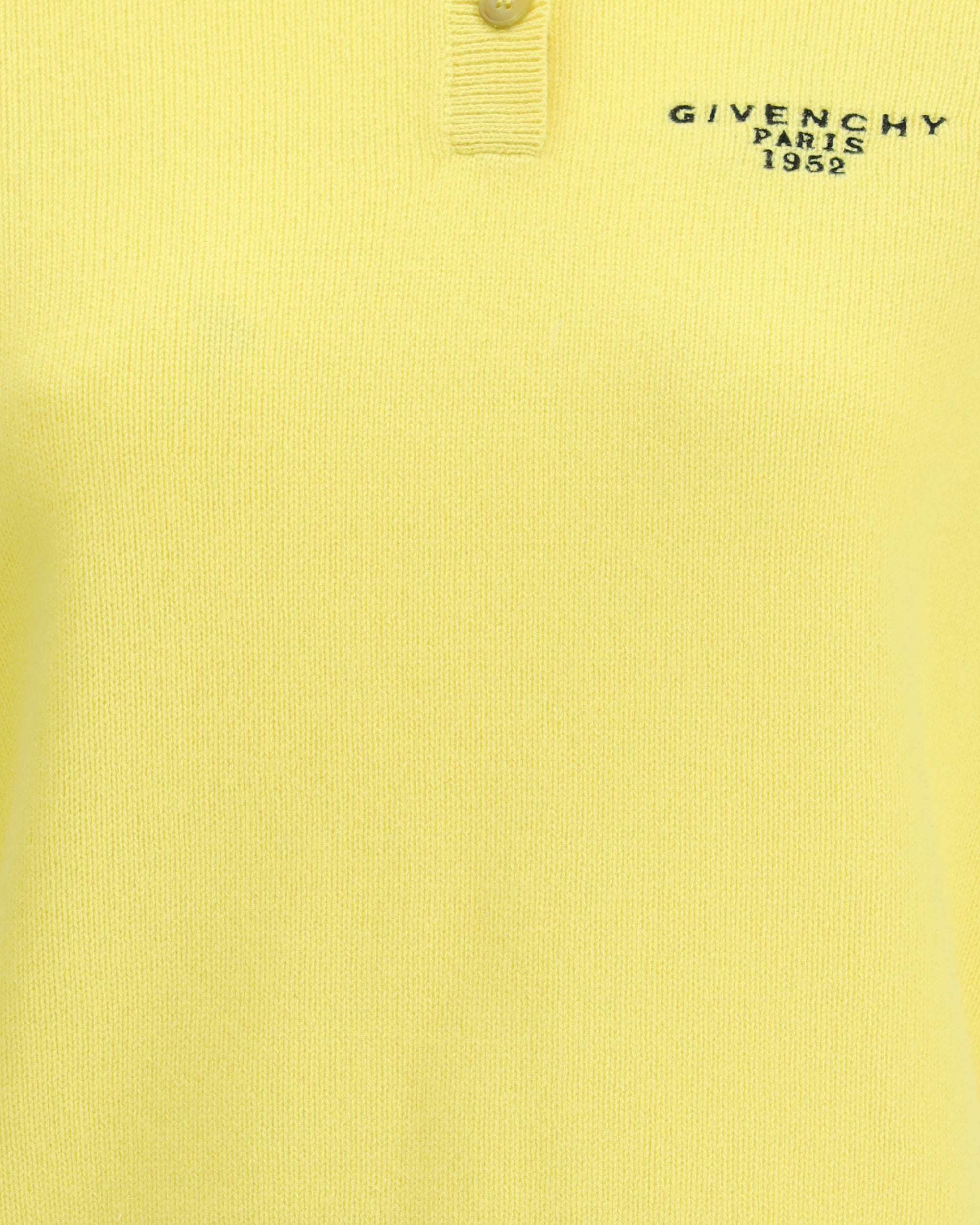 The Short-sleeve Polo by Givenchy combines elegance with comfort in a contemporary design. Crafted from Wool and Cashmere, it features a button-down polo collar, embroidered GIVENCHY Paris 1952 logo on the chest, and ribbed cuffs and hem, creating a refined and versatile piece perfect for standalone wear or layering