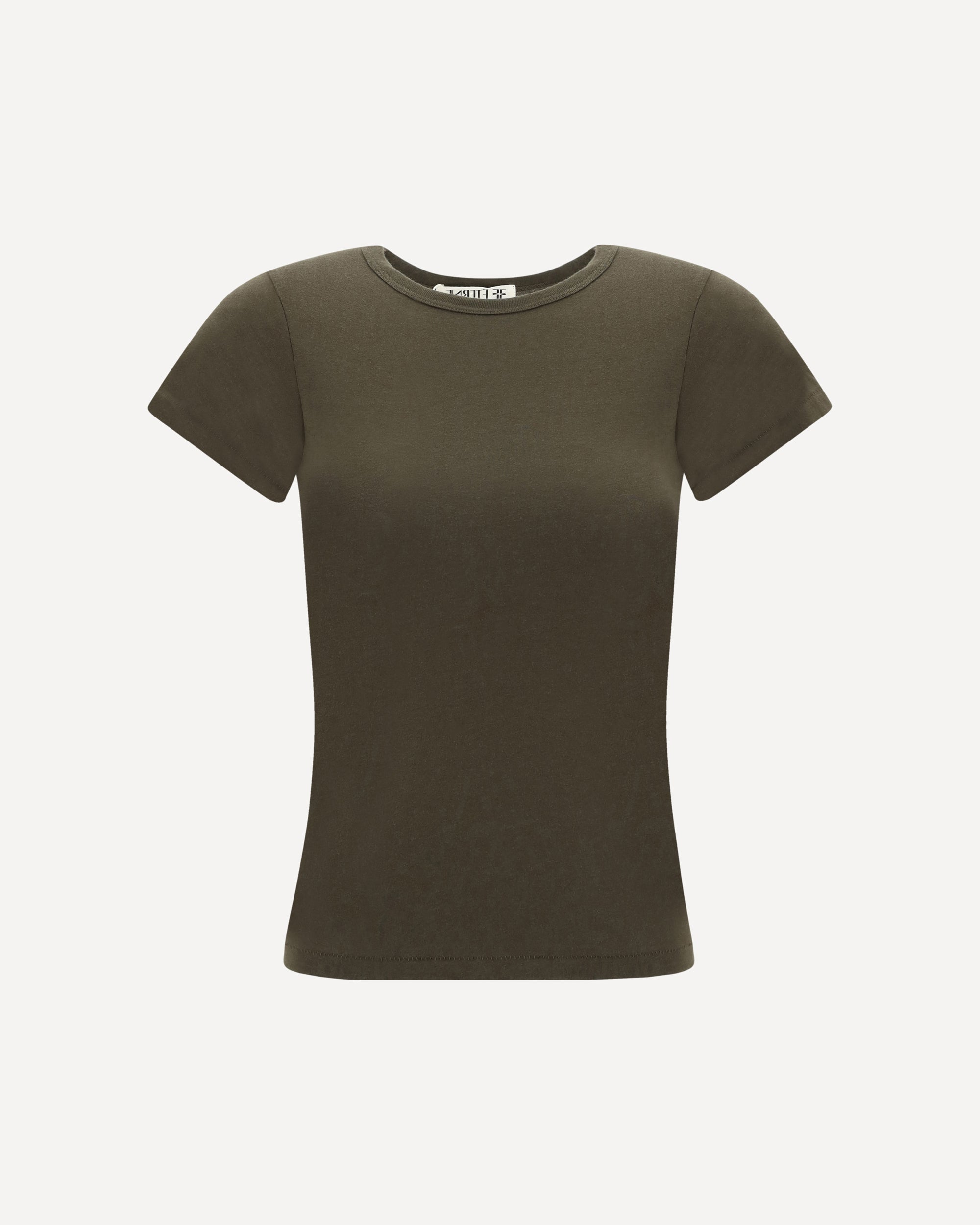 Éterne's cotton short-sleeved T-Shirt is an essential and sophisticated piece, featuring a ribbed crew neck that accentuates its clean, minimalist design. The fitted style enhances the silhouette, offering a flawless and comfortable fit. Made from high-quality cotton, this T-shirt is perfect for wearing on its own or as a base for more structured looks. A versatile classic that reflects the attention to detail and timeless elegance typical of the Éterne brand.