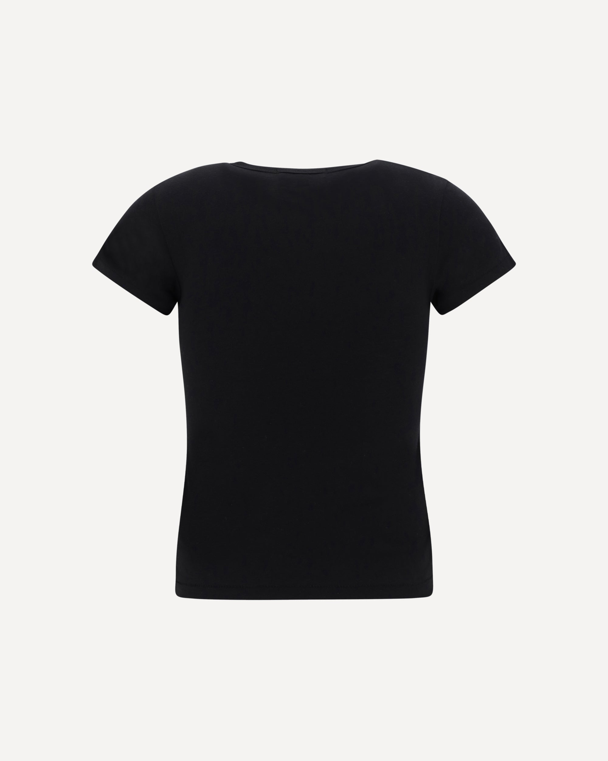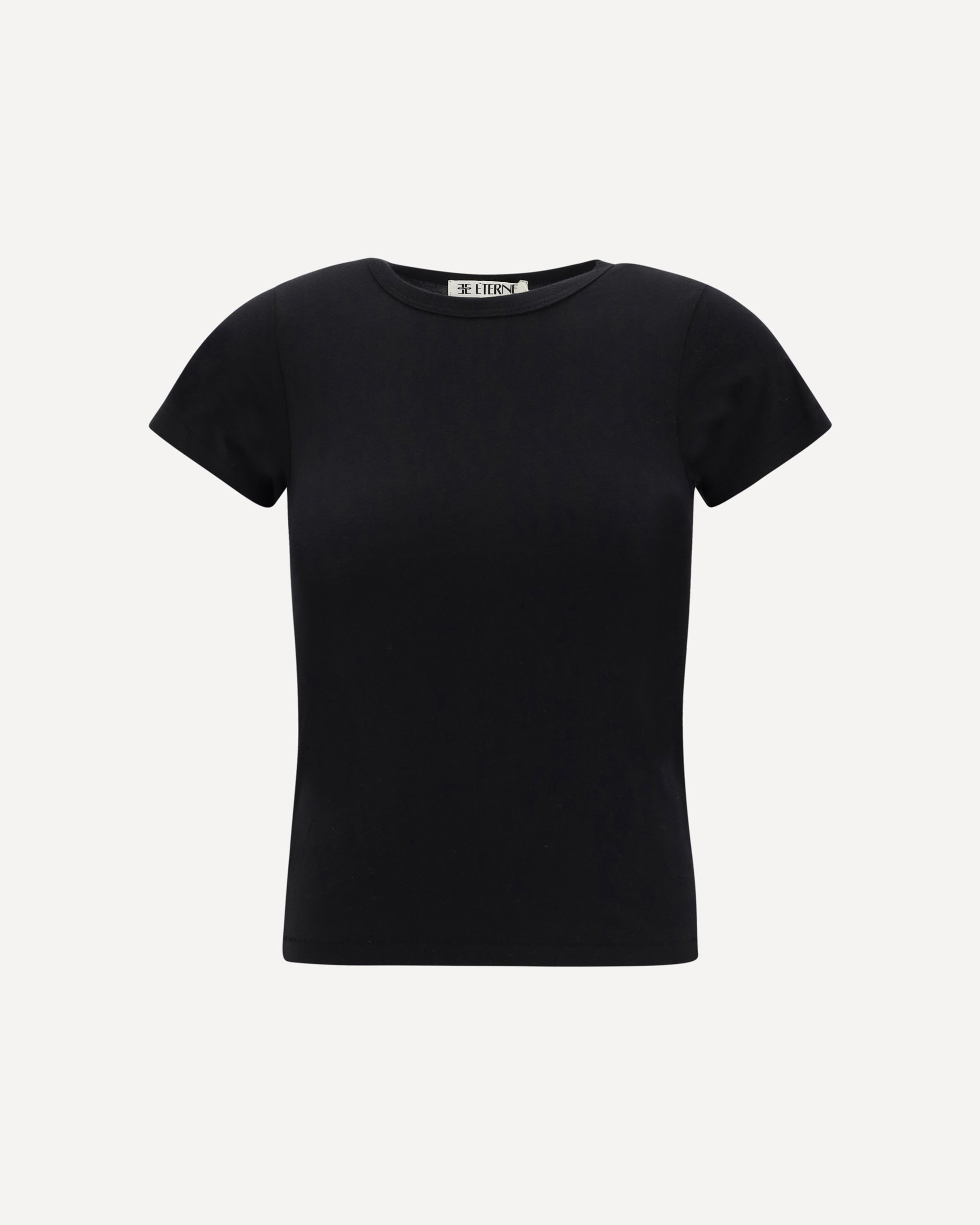 Éterne's cotton short-sleeved T-Shirt is an essential and sophisticated piece, featuring a ribbed crew neck that accentuates its clean, minimalist design. The fitted style enhances the silhouette, offering a flawless and comfortable fit. Made from high-quality cotton, this T-shirt is perfect for wearing on its own or as a base for more structured looks. A versatile classic that reflects the attention to detail and timeless elegance typical of the Éterne brand.