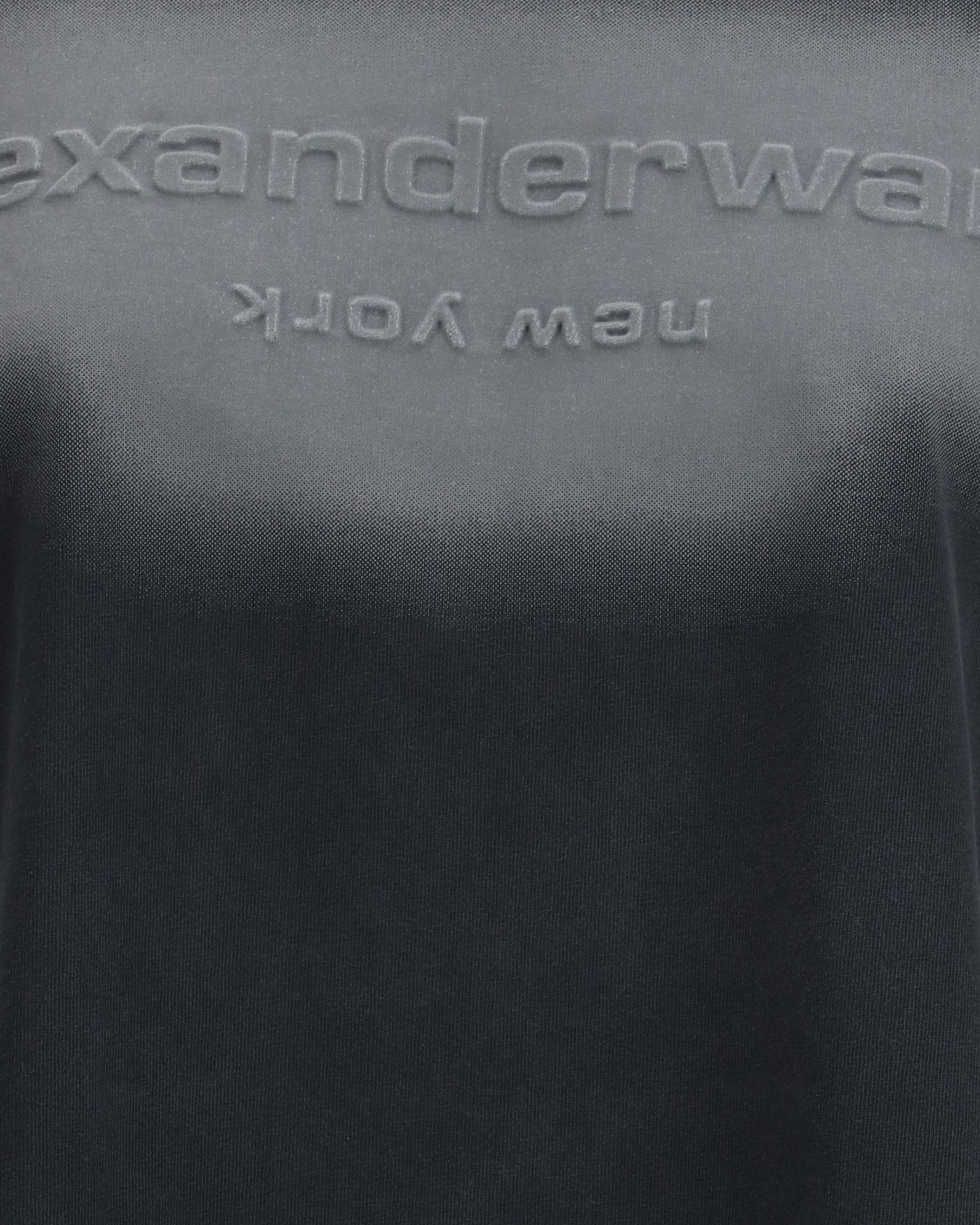 The Logo T-shirt by Alexander Wang embodies refined modernity with a clean, structured aesthetic. Crafted from smooth matte cotton, it features a slightly oversized silhouette that drapes effortlessly, subtly defining the waist. The embossed “alexanderwang” logo, framed by a diffused light-grey spray effect, adds an urban-industrial edge. Soft yet durable, it retains its flawless look wear after wear.