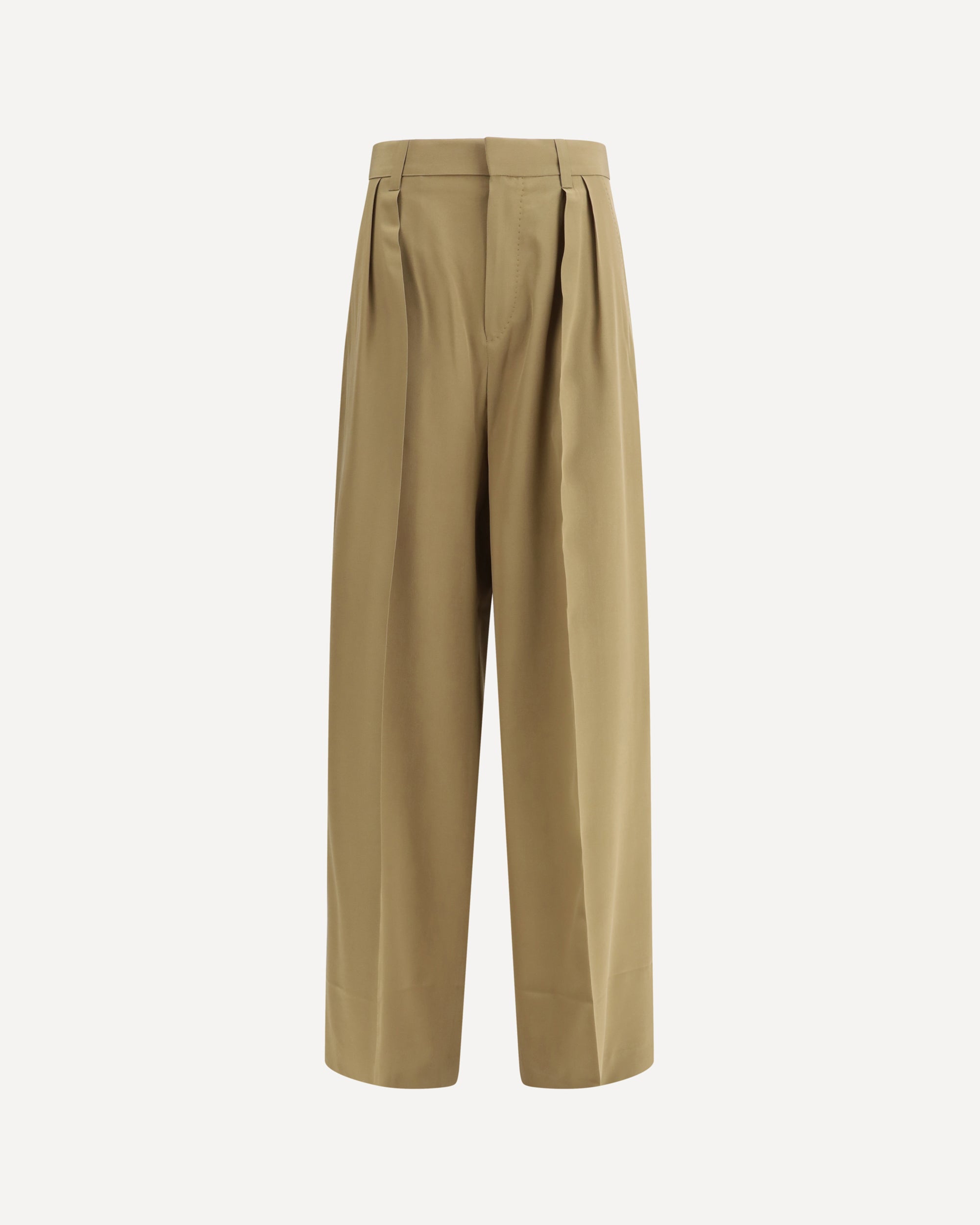 Petar Petrov's silk Pants have a high waist and a wide-leg pattern, giving an elegant, flowing silhouette. The front closure is with a hidden zipper and hook, while the two side welt pockets add practicality to the design. The regular fit ensures comfort and versatility.