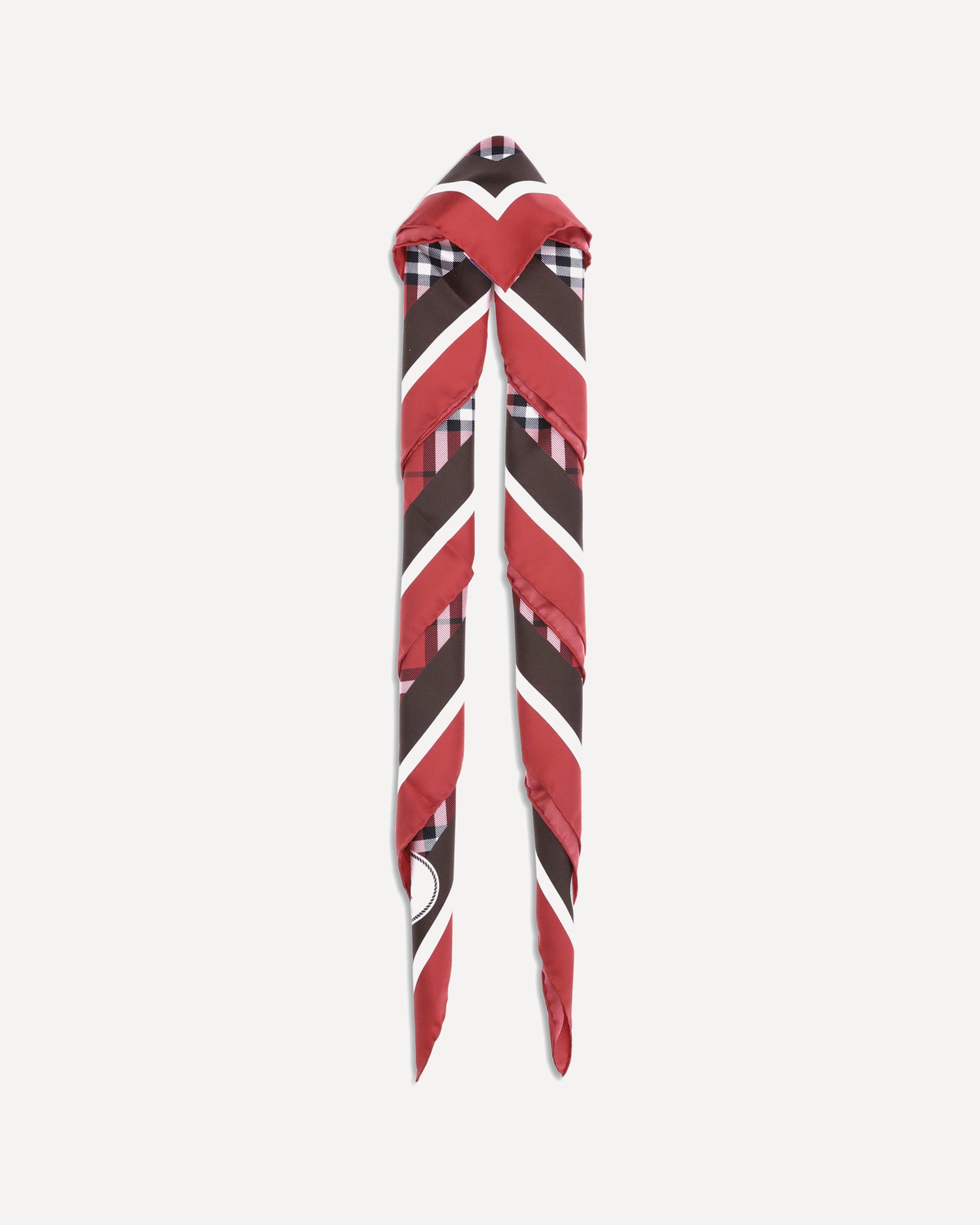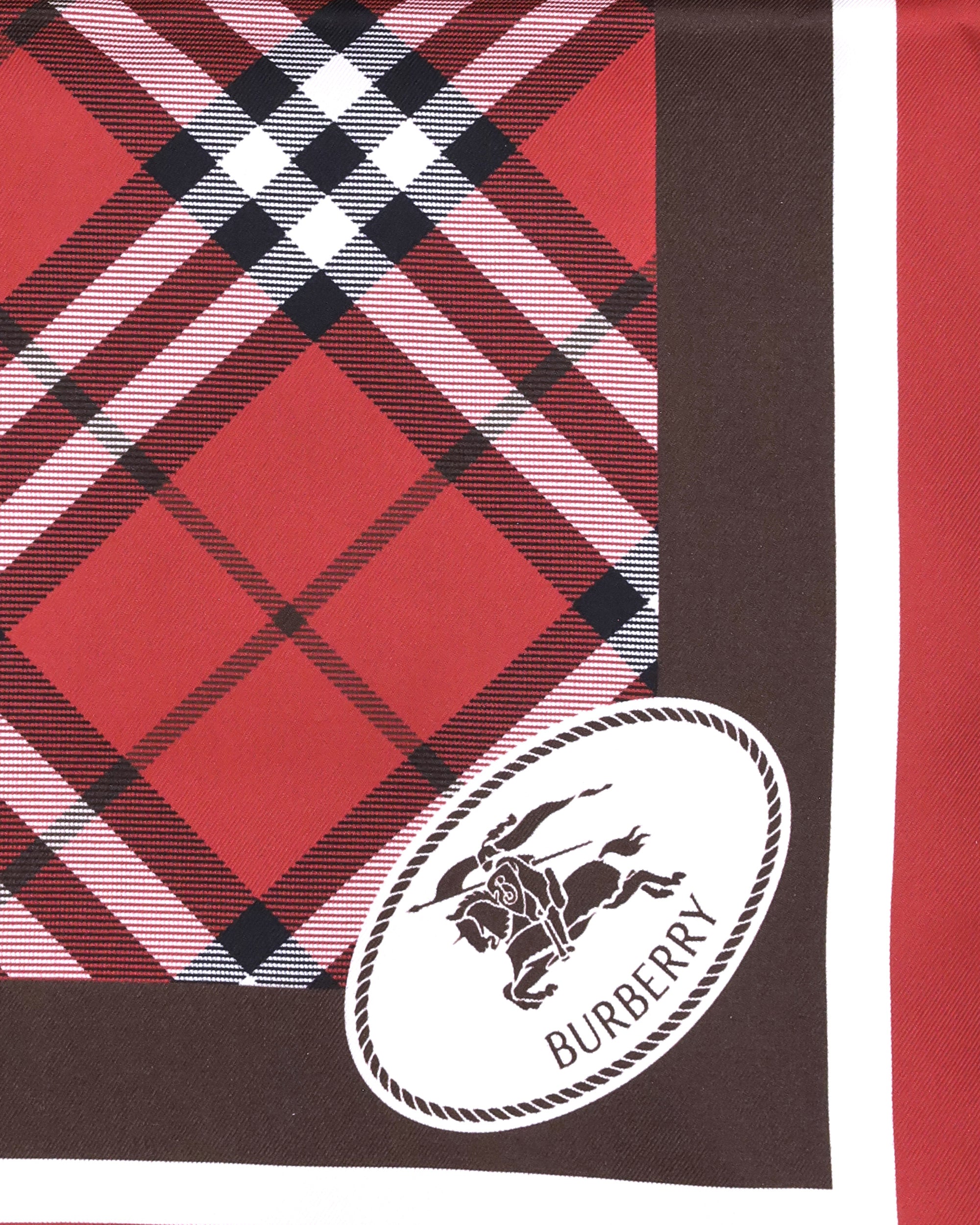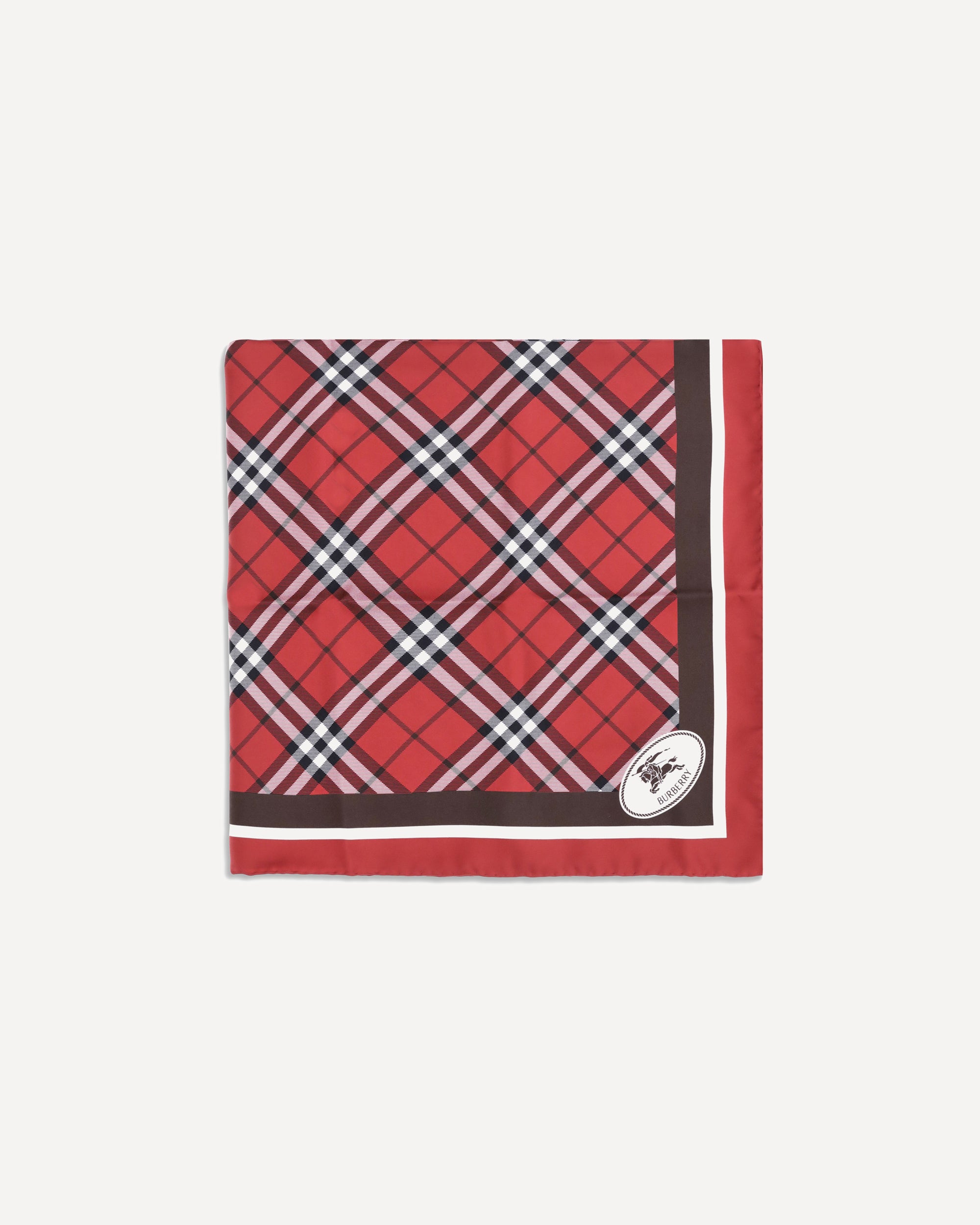 Burberry's Silk check Scarf is a refined accessory that reinterprets an archival pattern with contemporary elegance. Square in shape, it features contrasting stripes on the edges, hand-rolled hems and the iconic Knight Stamp in the center. Burberry lettering printed on the corners completes the design, making it a distinctive and timeless garment.