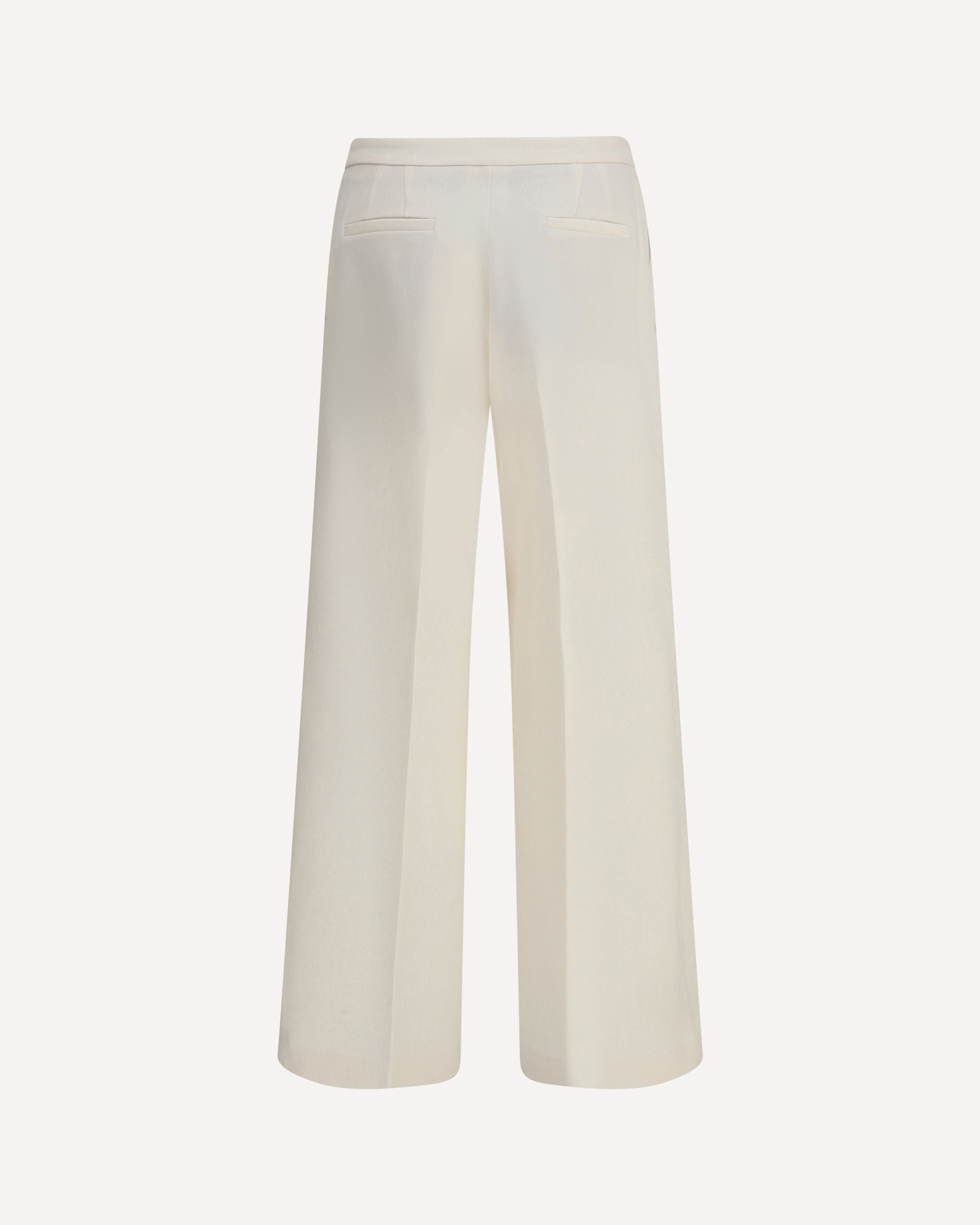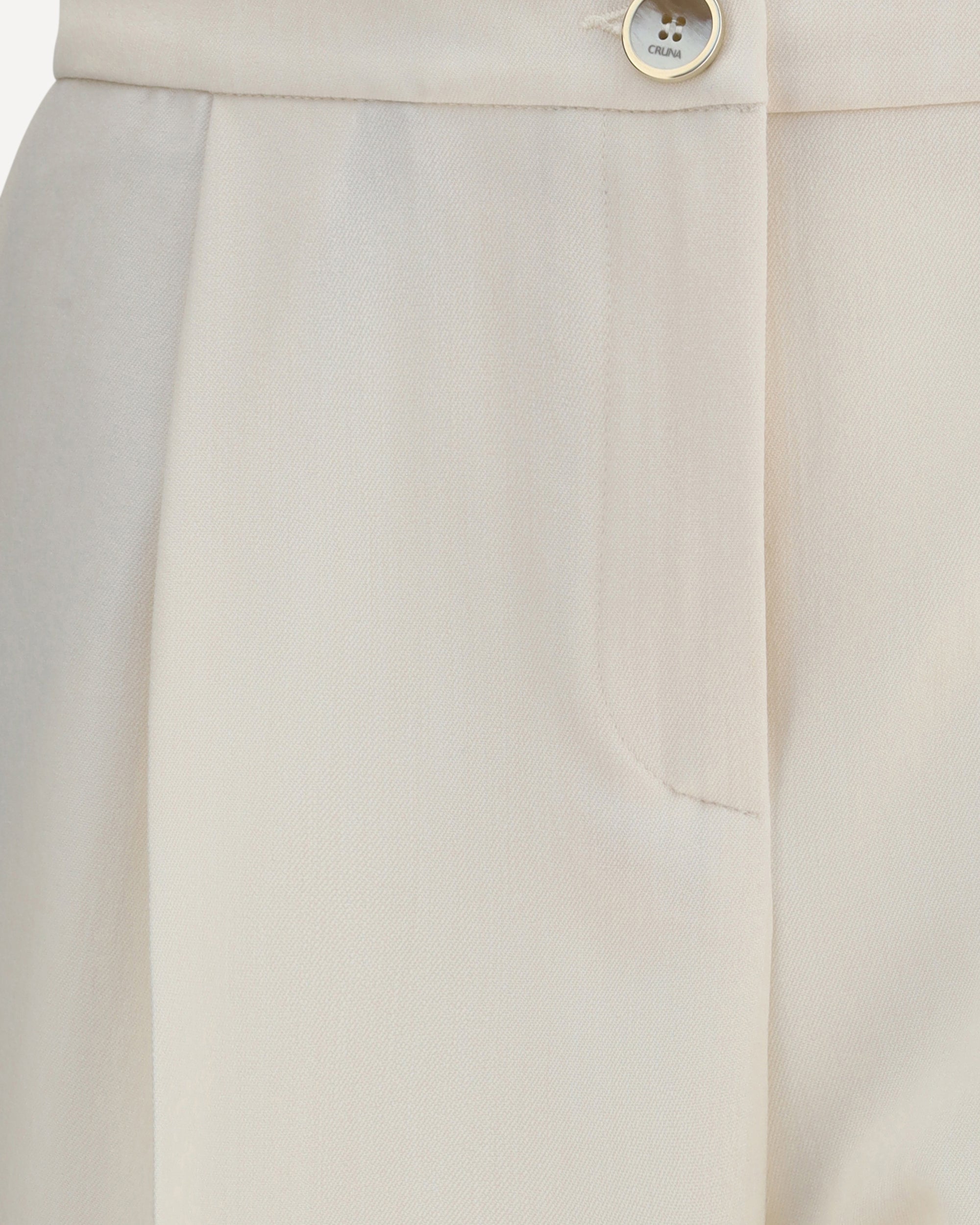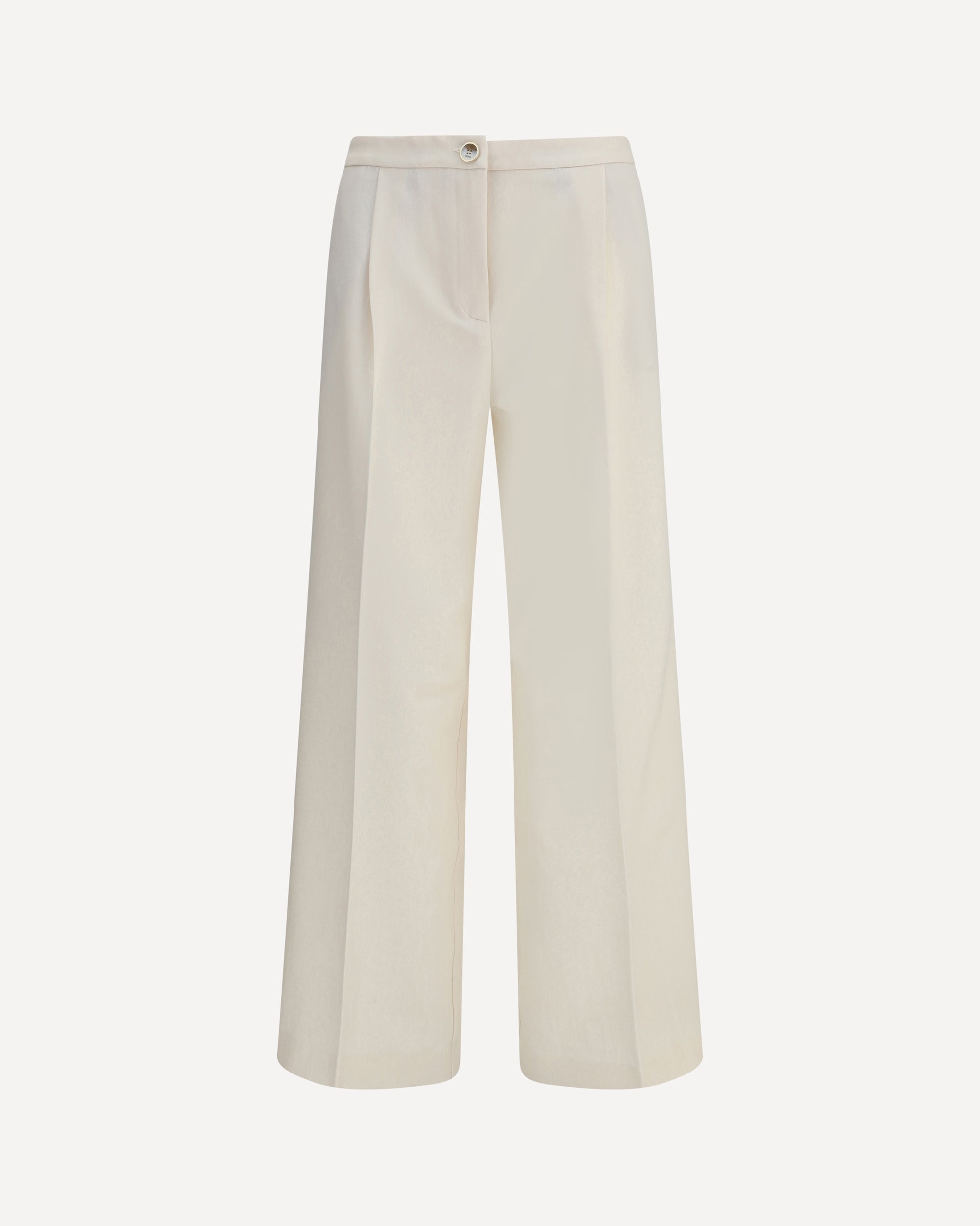 Wide leg Pants by Cruna, featuring a modern and versatile silhouette. They feature a front zip and button fastening, two side slash pockets and two welt pockets on the back. An essential piece with a clean design, perfect for casual or more refined looks.