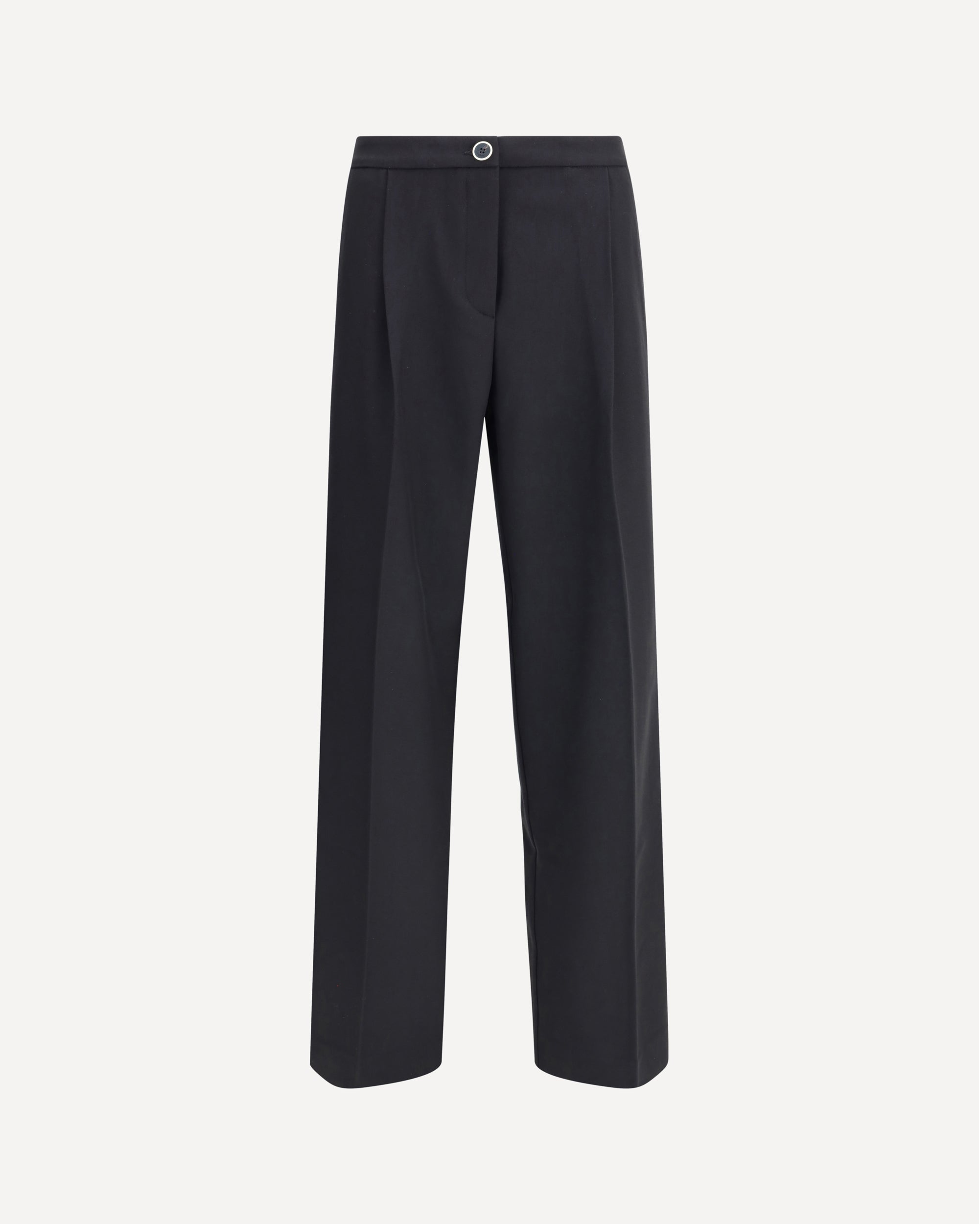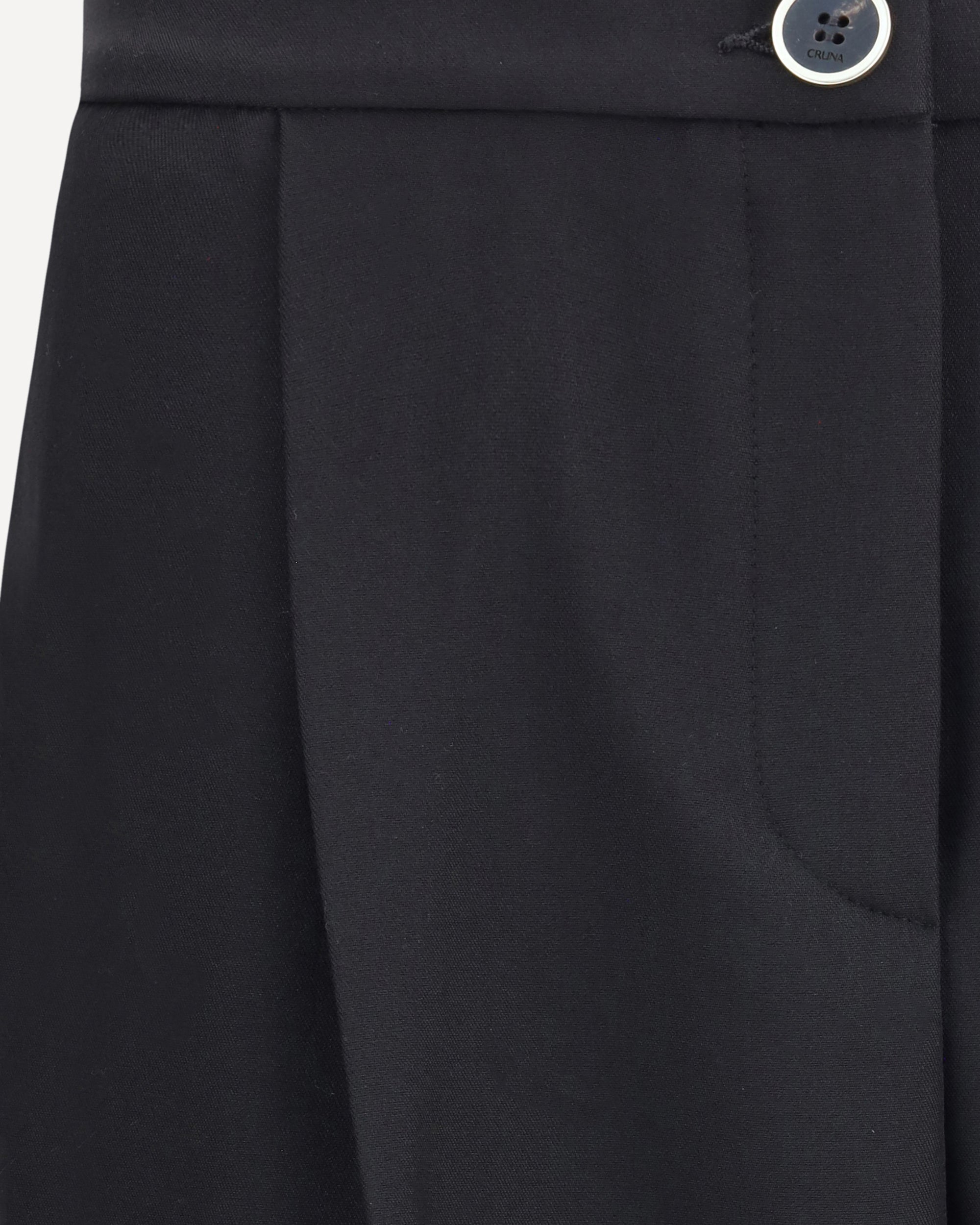 Wide leg Pants by Cruna, featuring a modern and versatile silhouette. They feature a front zip and button fastening, two side slash pockets and two welt pockets on the back. An essential piece with a clean design, perfect for casual or more refined looks.