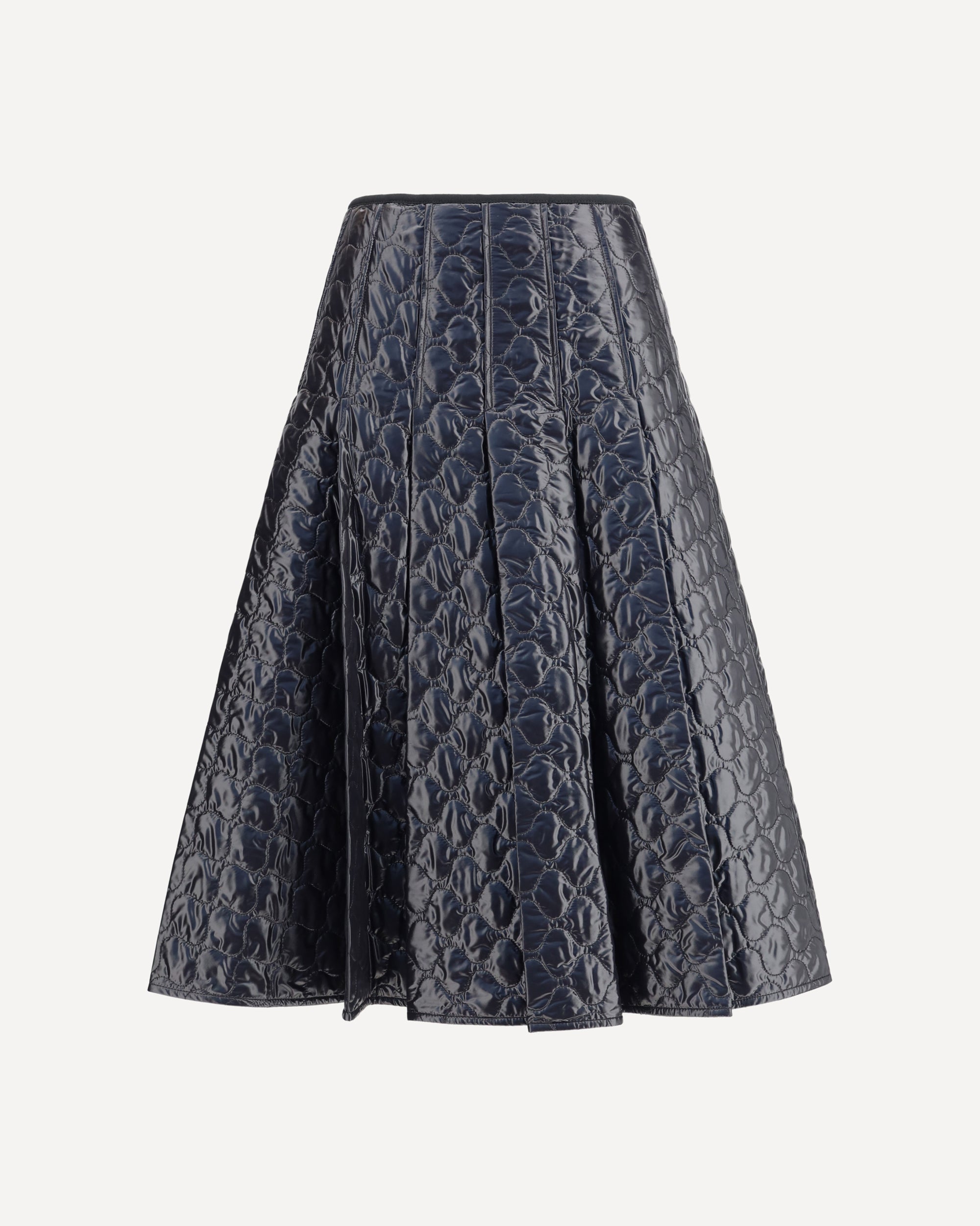 Moncler's padded midi Skirt combines style and functionality in a unique design. Made of iconic laqué nylon with matching lining, it features lightweight padding for thermal comfort. Pleating lends movement and femininity, while the zipper and snap hook closure adds a contemporary, technical touch.