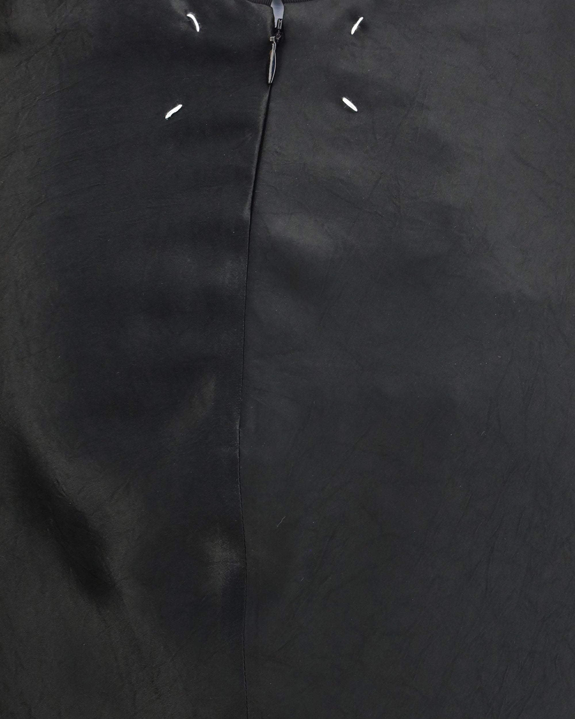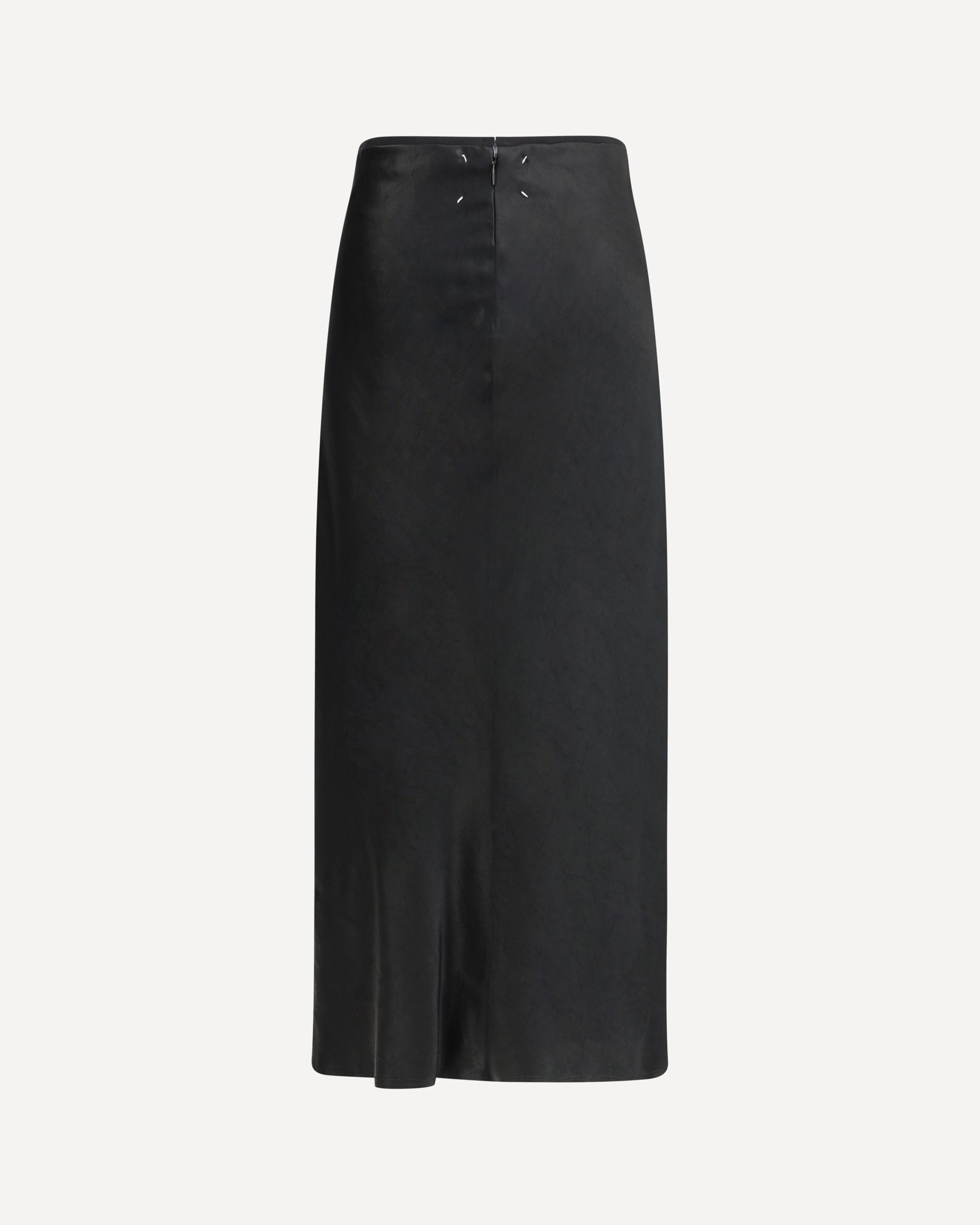 The Satin Midi Skirt by Maison Margiela redefines femininity with an essential and refined approach. The bias cut enhances the fluidity of the fabric, while the elasticated waistband ensures comfort and definition. The back zip closure preserves the clean silhouette, completed by the iconic four-stitch detail at the rear, a hallmark of the maison.