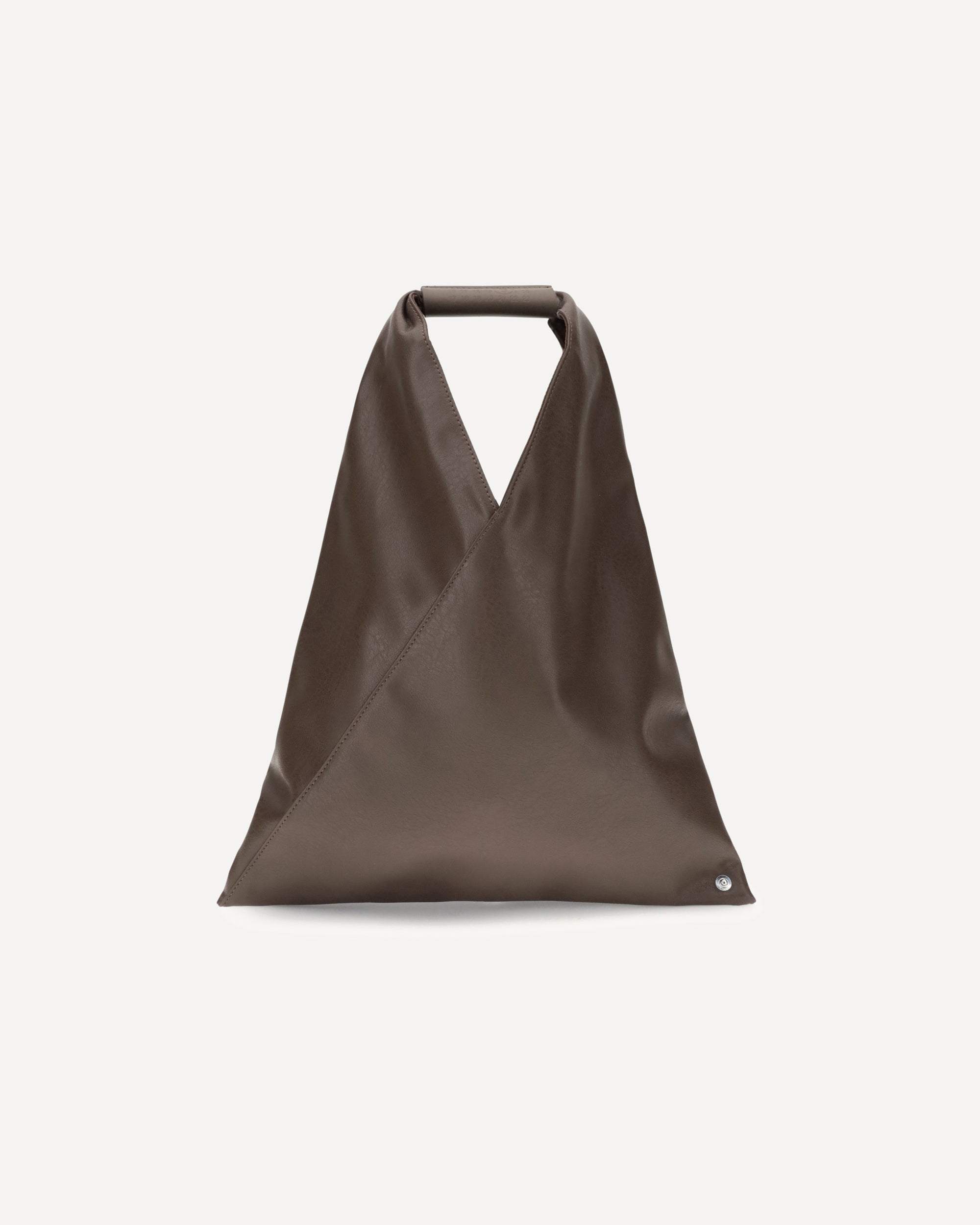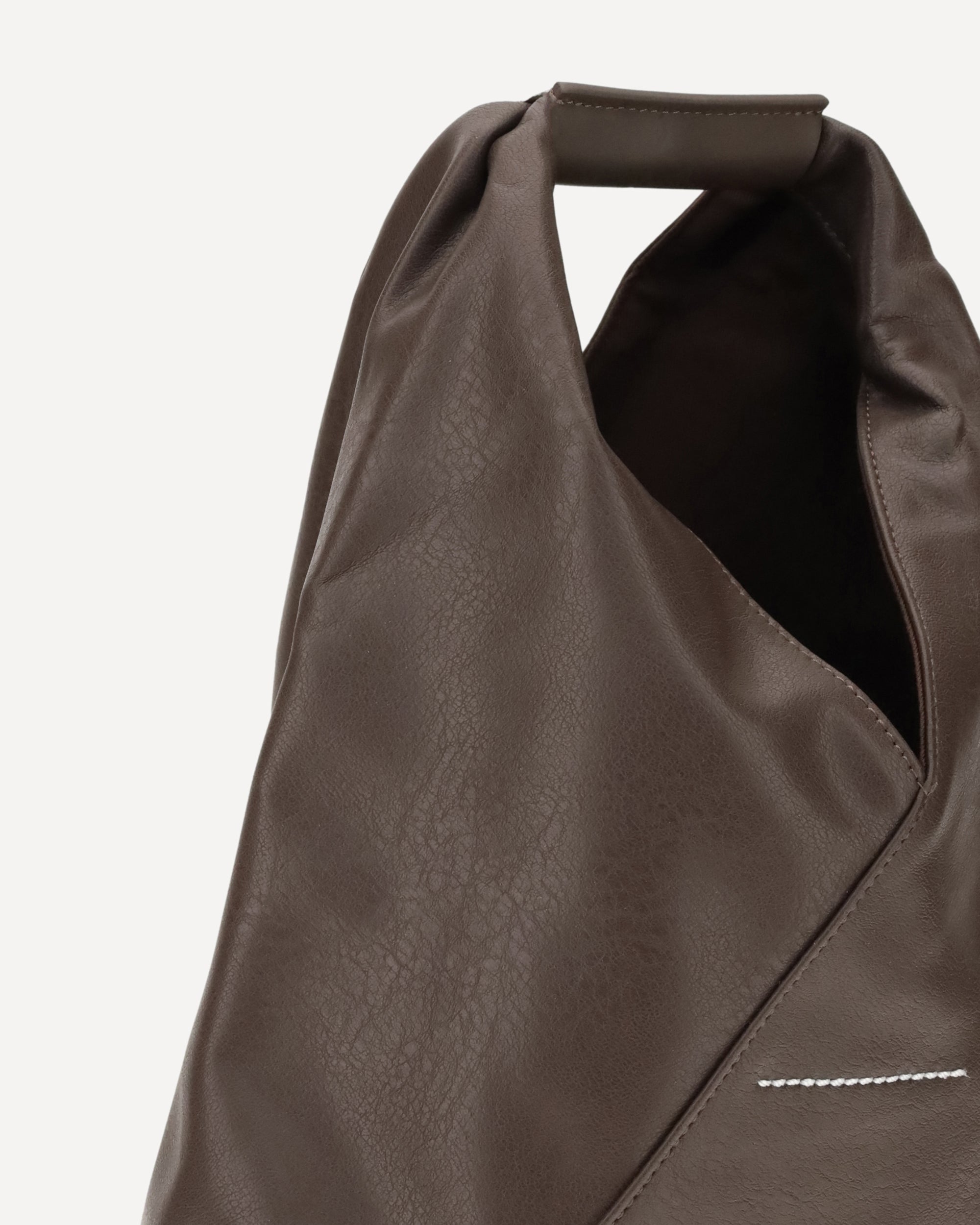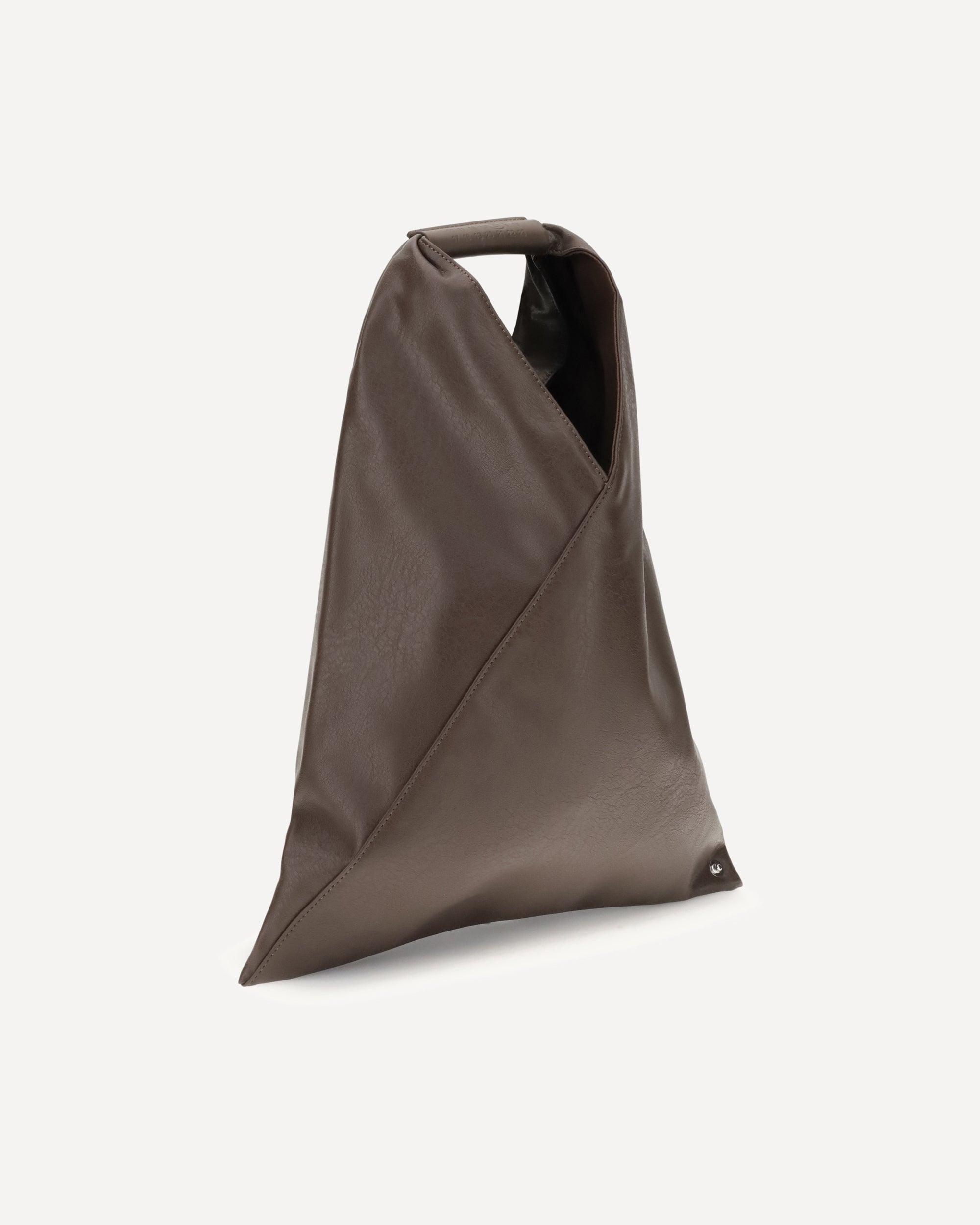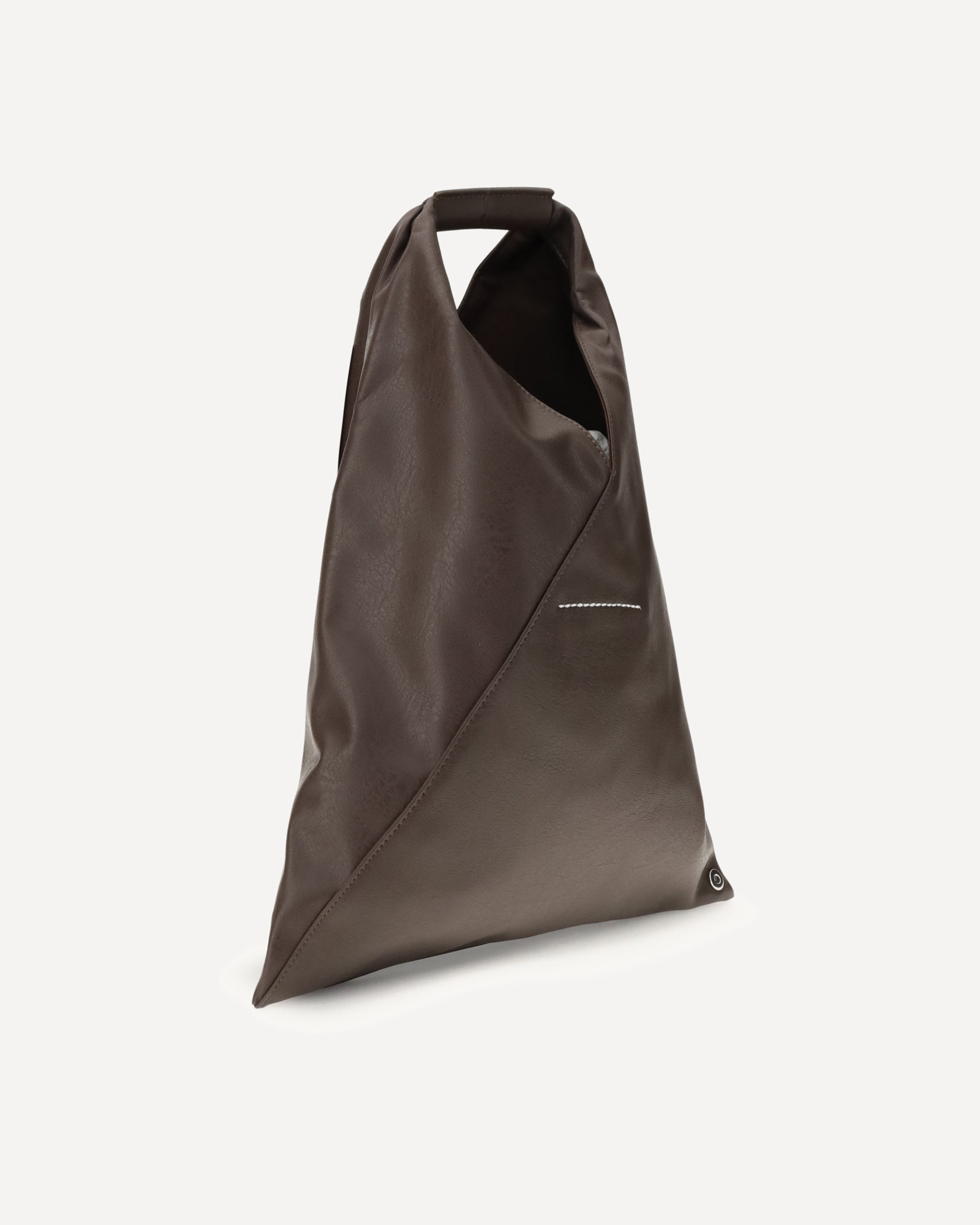 The Japanese Handbag by MM6 Maison Margiela reinterprets minimalist elegance with a contemporary twist. Made of faux leather, it features a distinctive tubular top handle and an interior snap-button closure. The geometric design and unique interior compartment make this practical and distinctive accessory perfect for completing urban and sophisticated looks.