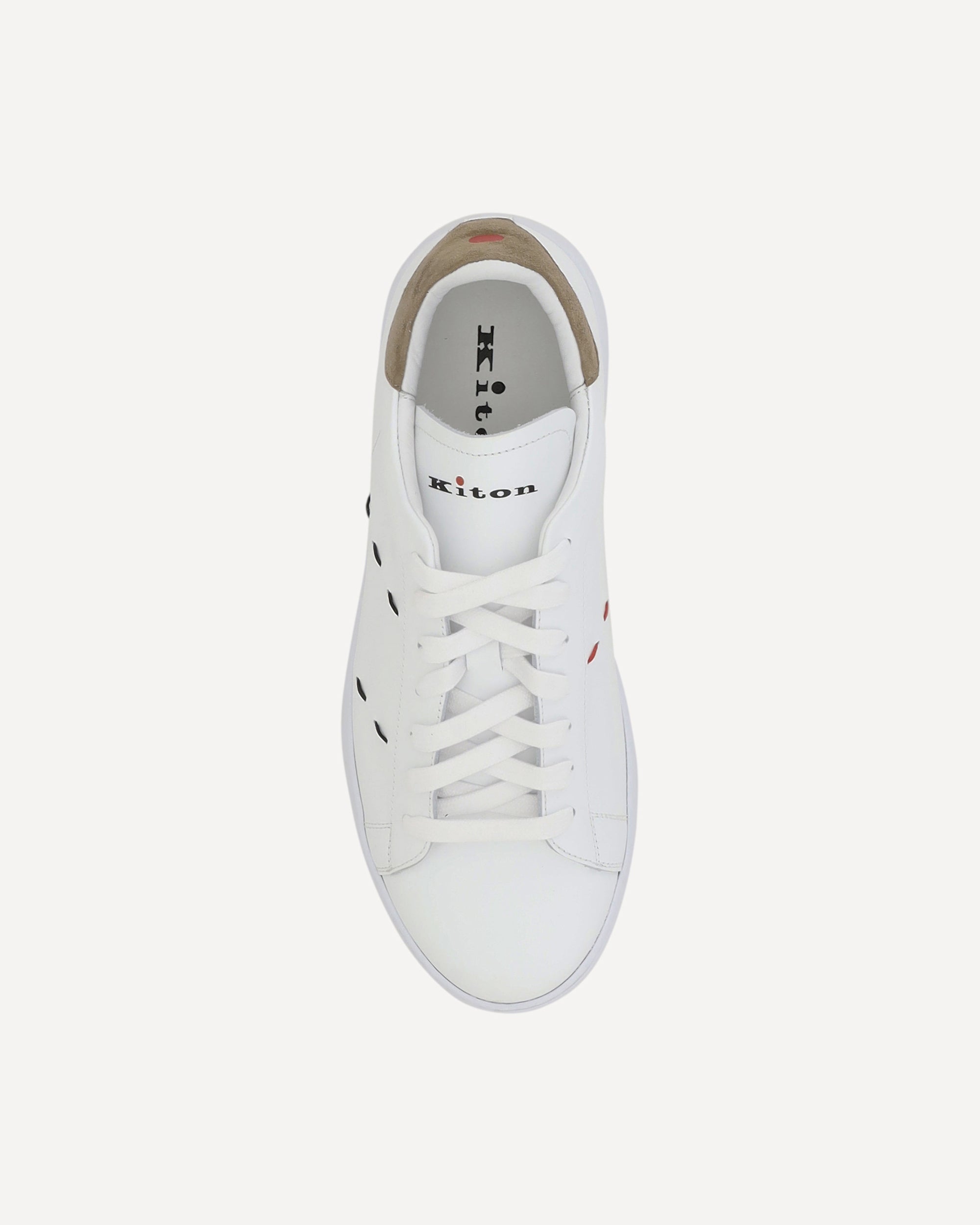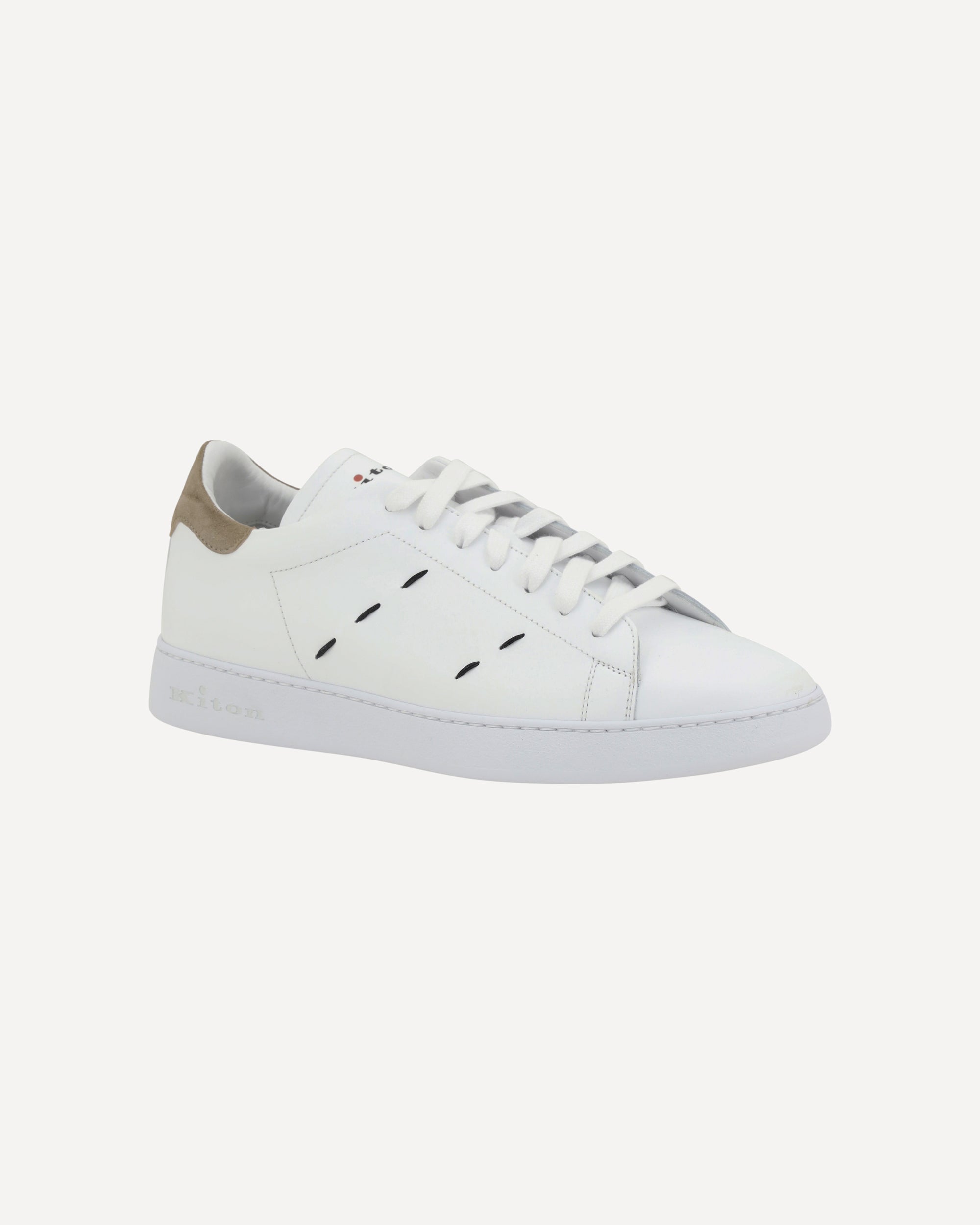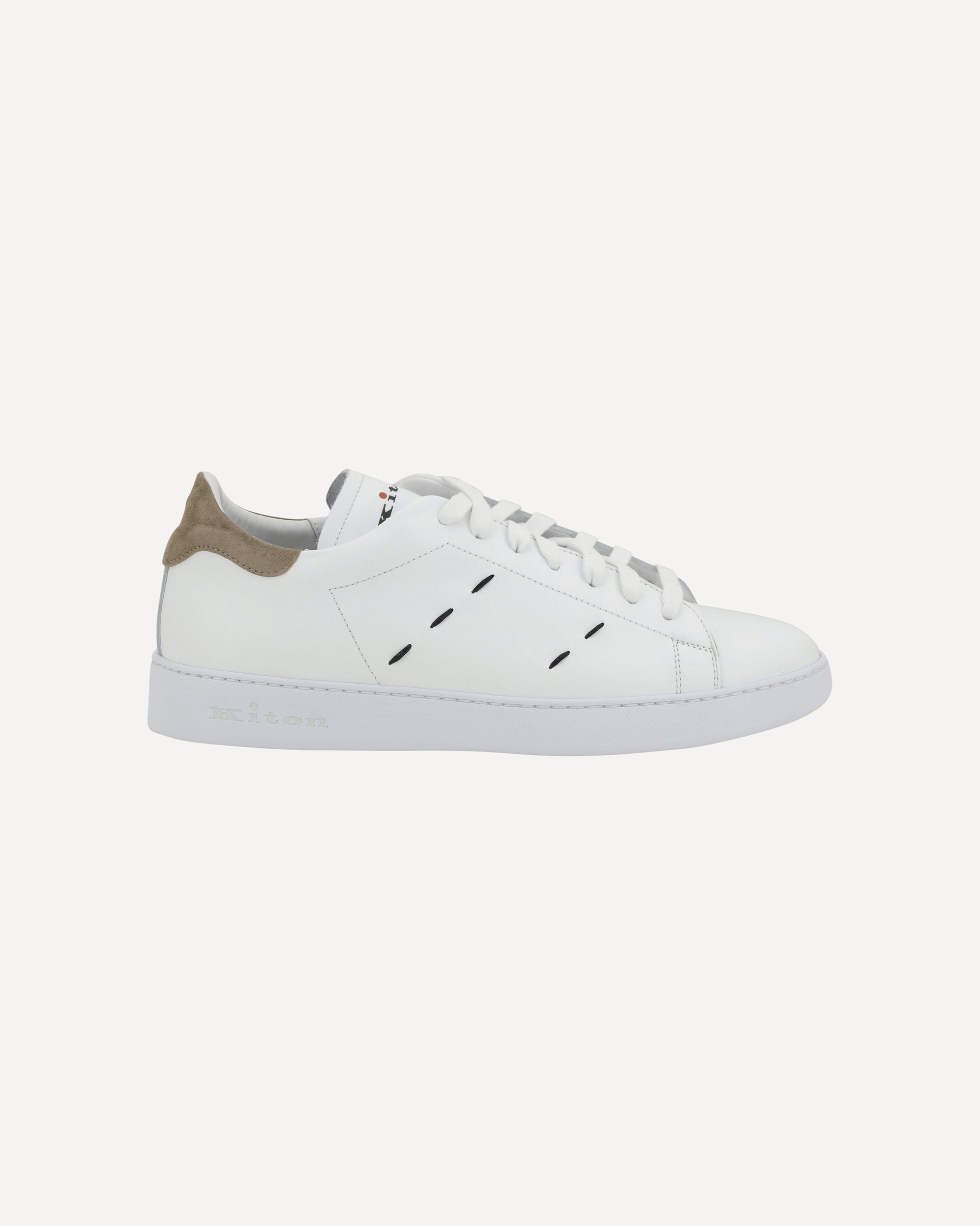 Kiton's leather Sneakers feature a lace-up front closure and a round toe. A contrasting suede heel and logoed tongue add distinctive details, while stitching on the side panels and a flat sole with the brand's iconic monogram add a touch of elegance. The branded insole completes the design, making these sneakers sophisticated and comfortable.