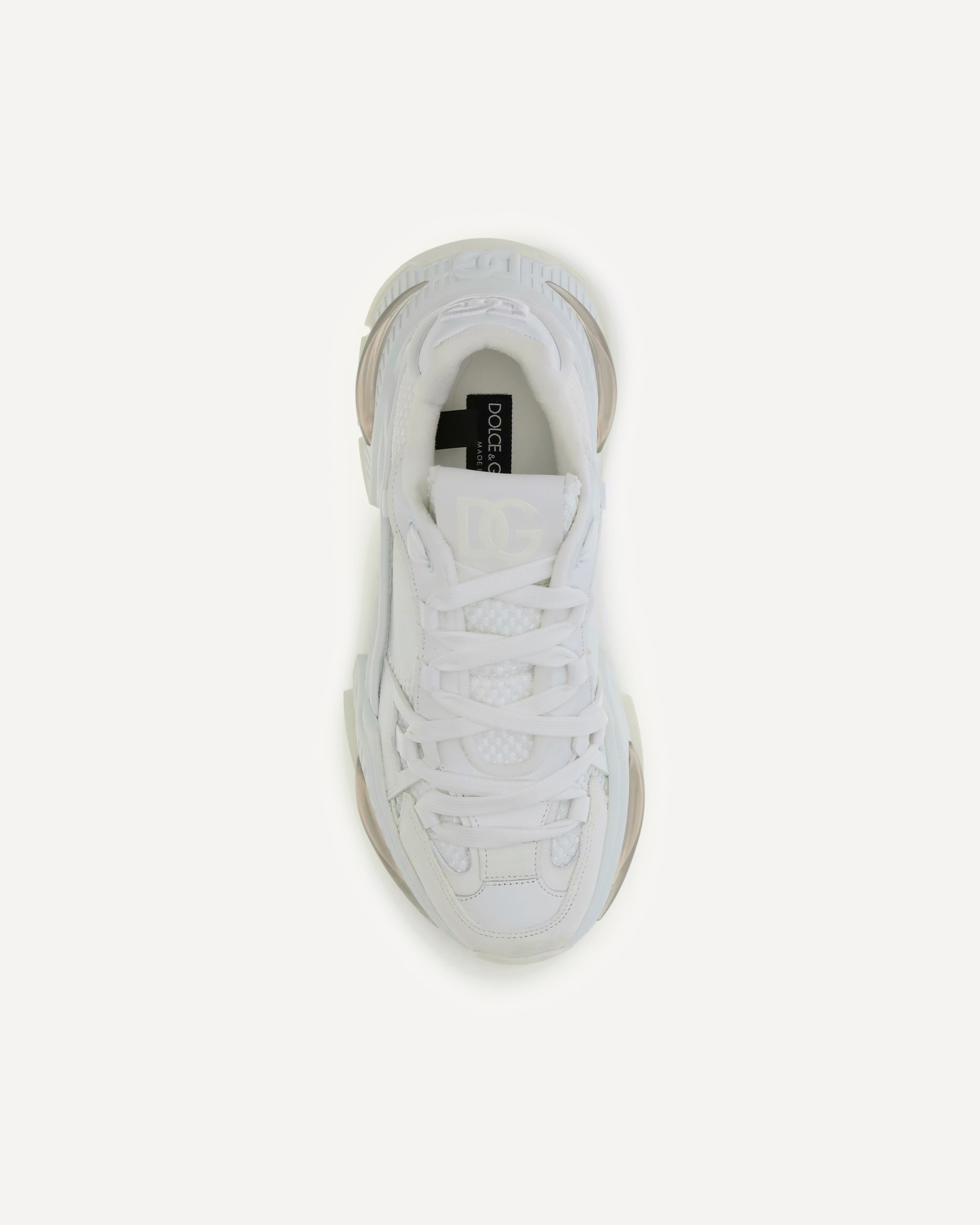 Dolce&Gabbana's Airmaster Sneakers combine functionality with distinctive style. Made with a technical fabric upper, they feature a calfskin heel with DG logo, flat laces and a logoed tongue. The calfskin insole (Fussbett) is embellished with a logo label, while the logoed super flex rubber sole and bottom ensure optimal comfort and grip.