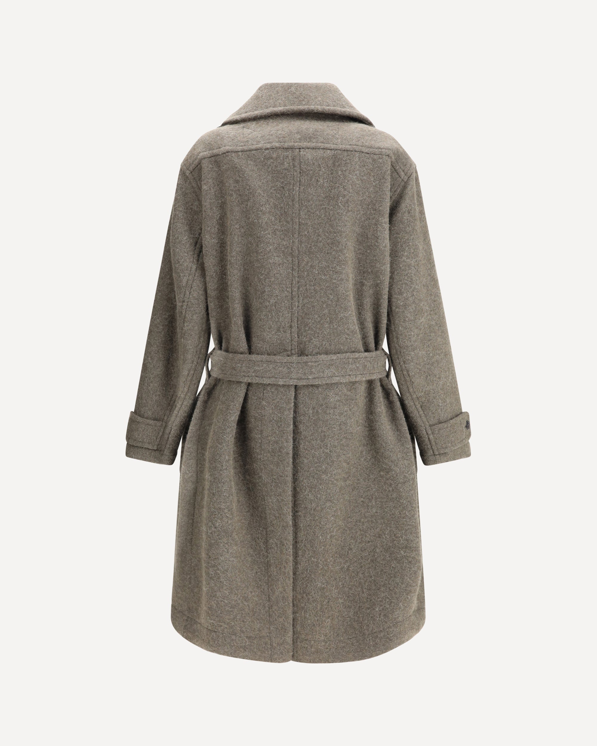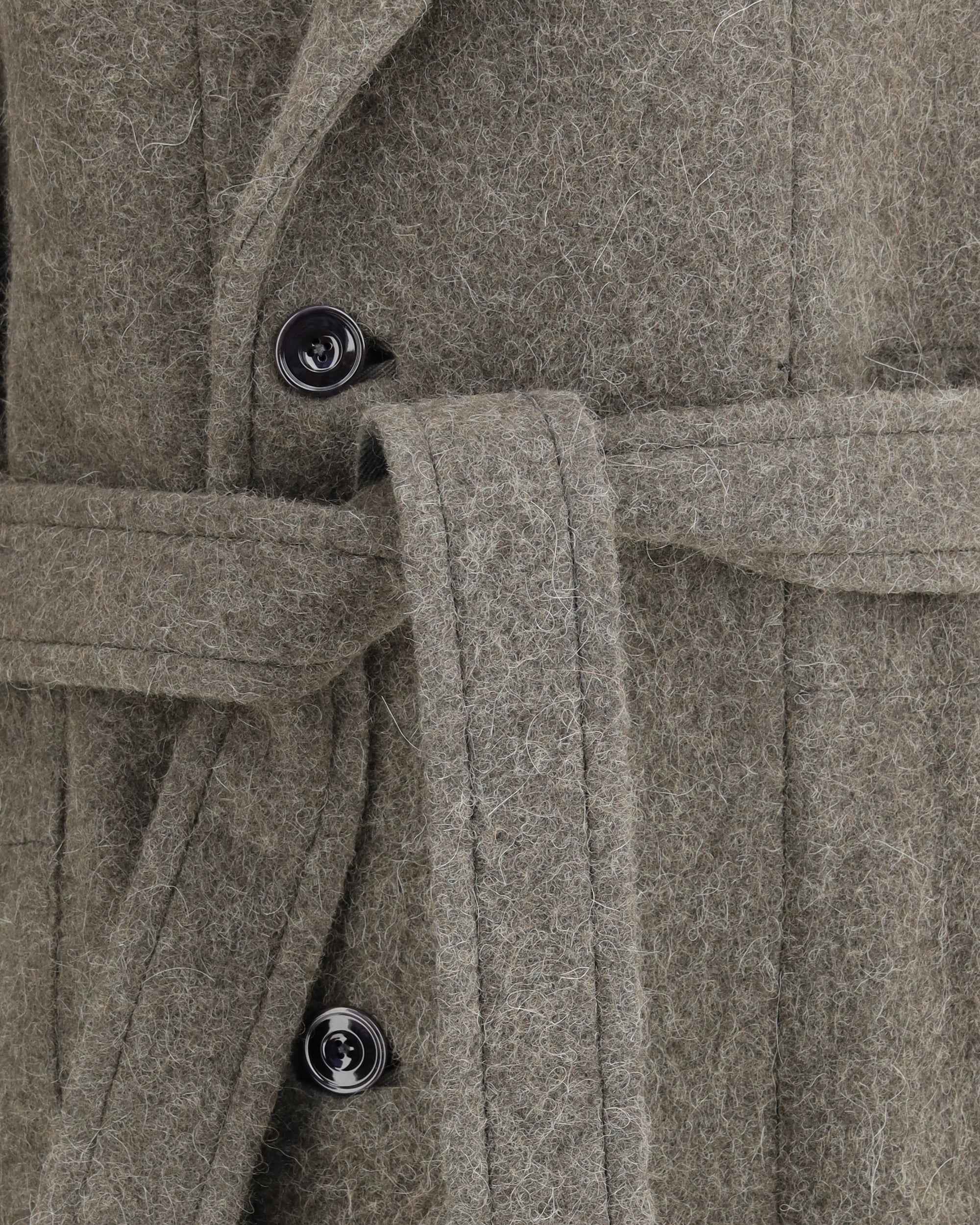 The wool and alpaca Coat by Lemaire embodies the brand’s understated sophistication. Crafted from a fine wool and alpaca blend, it features notched lapels, a front button closure, and a self-tie belt that cinches the waist for a naturally elegant silhouette. The design includes two front patch pockets, adjustable cuffs with straps, and a central back vent. Unlined, it offers a refined lightness that enhances its modern and effortless appeal.