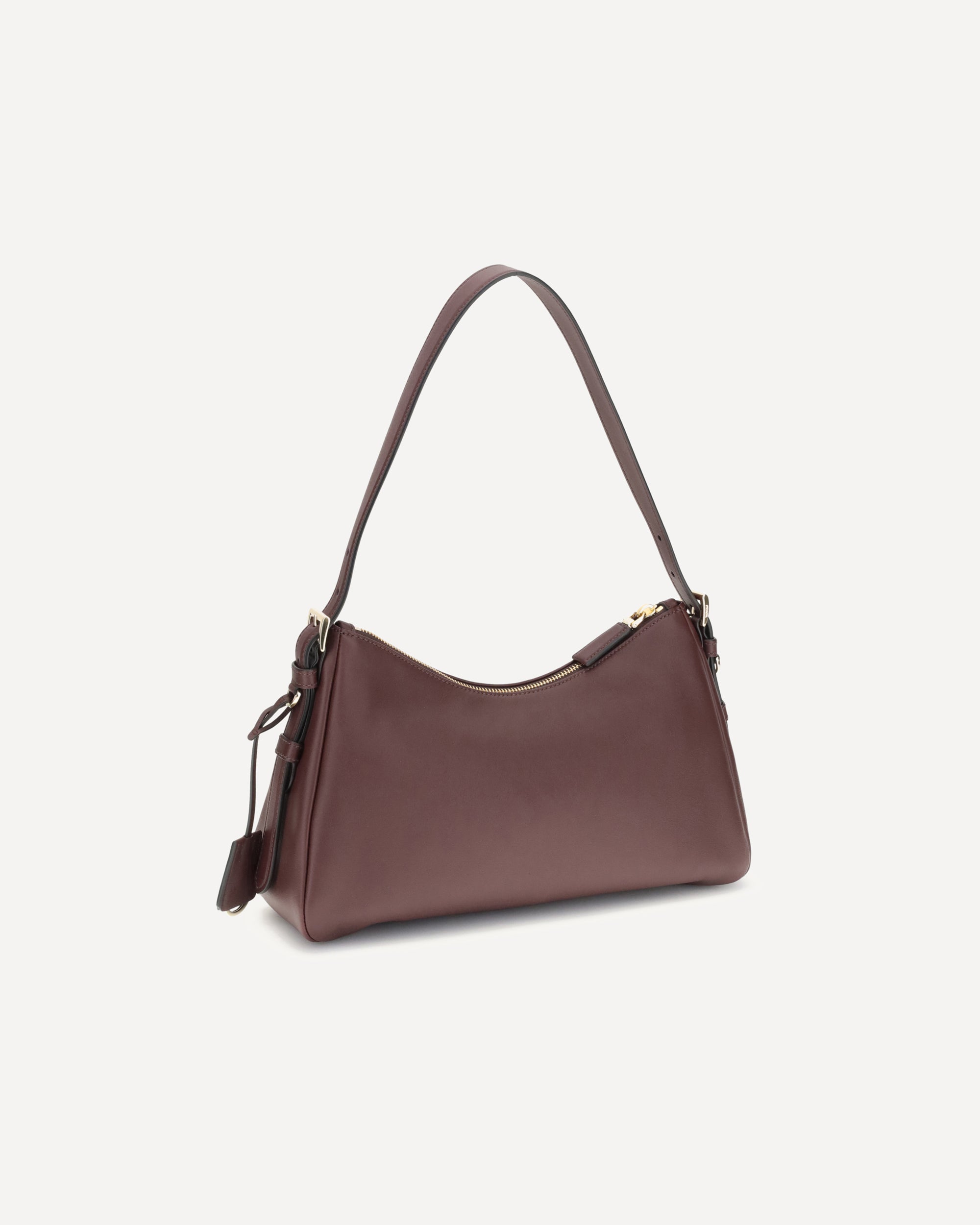 Prada's Aimée Medium leather Shoulder Bag is a stylish and functional accessory perfect for a sophisticated, everyday look. The zippered top closure provides security, while the adjustable flat shoulder strap offers the option to wear it comfortably on the shoulder. The brand's iconic triangular plaque applied to the front is a hallmark of Prada's luxury and authenticity. An applied charm at the base of the handle adds a touch of sophistication, while the unique interior compartment offers ample space for essentials.