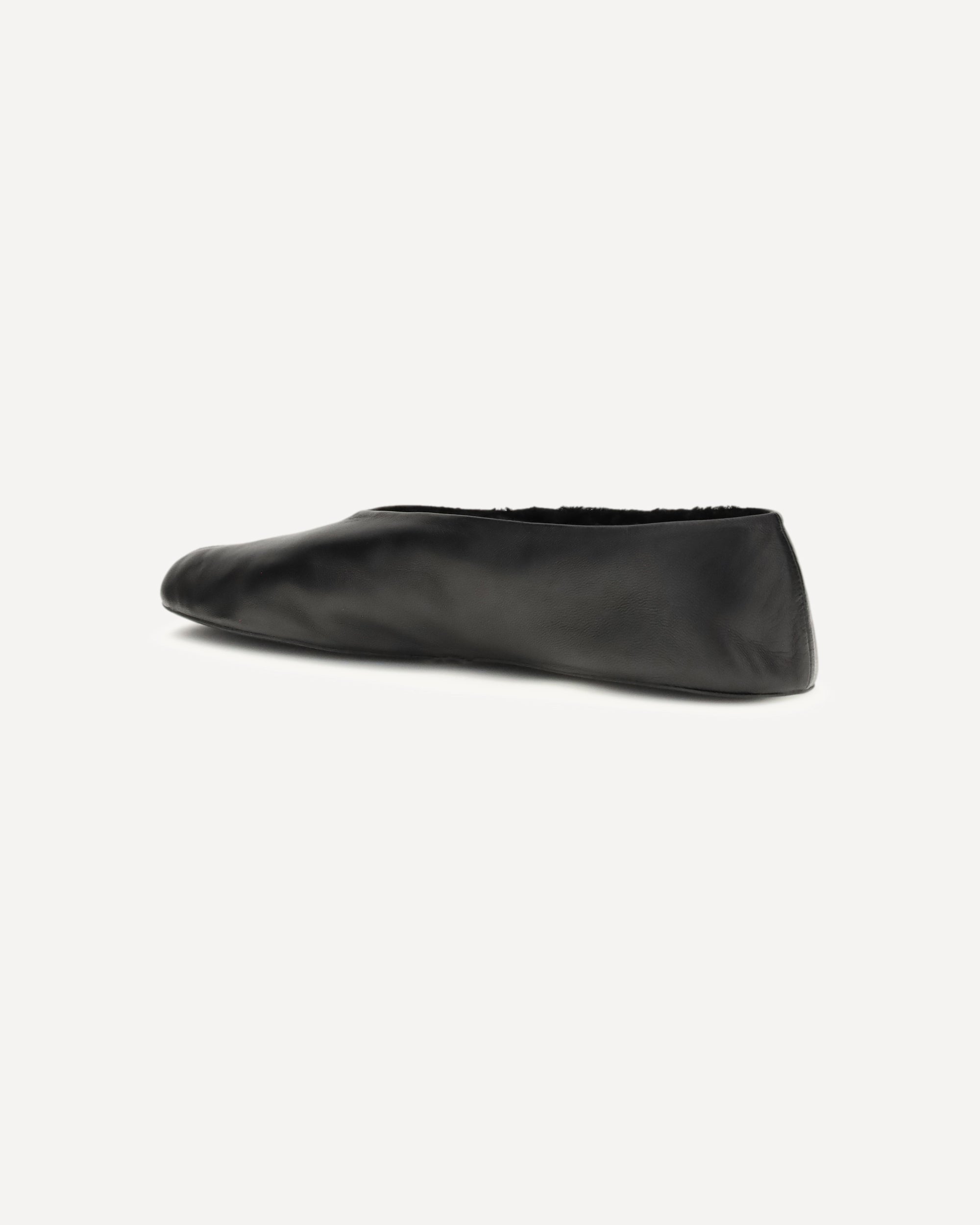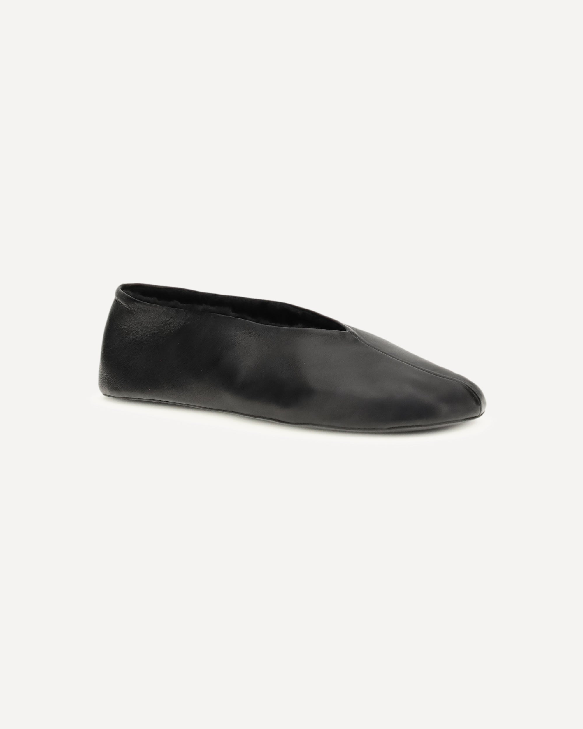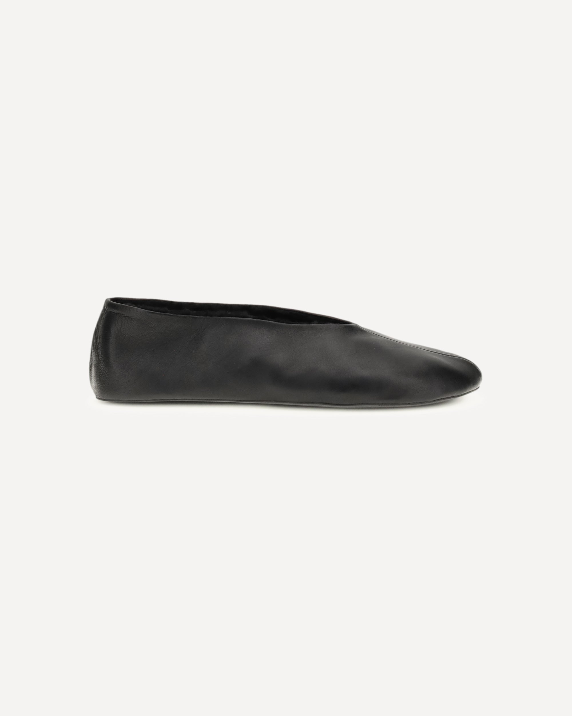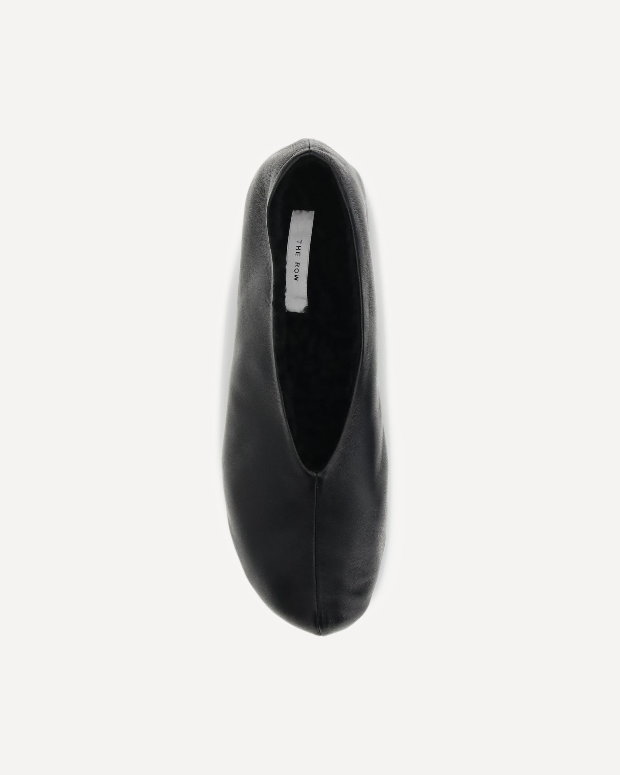 The Stella Ballerinas by The Row are a refined example of minimalism and timeless elegance. Made of smooth nappa leather, they feature an oval toe and a center front seam that emphasizes their clean lines. The slip-on design and flexible rubber-covered sole ensure comfort and practicality, making them perfect for understated, sophisticated style.