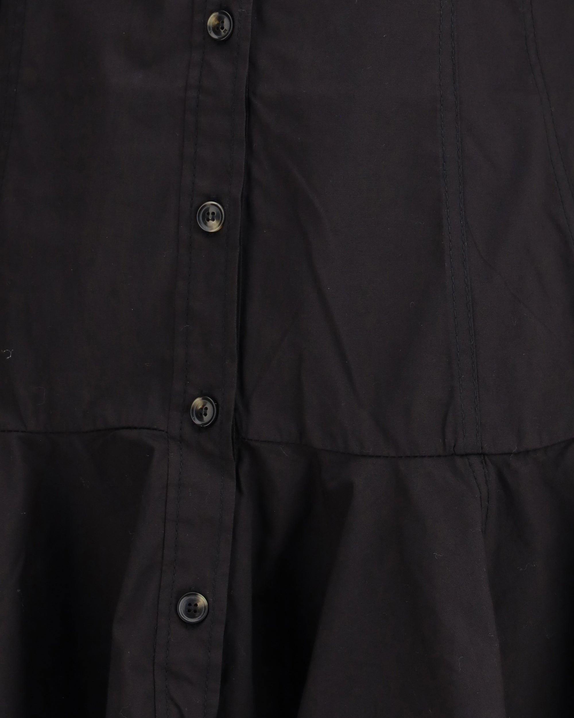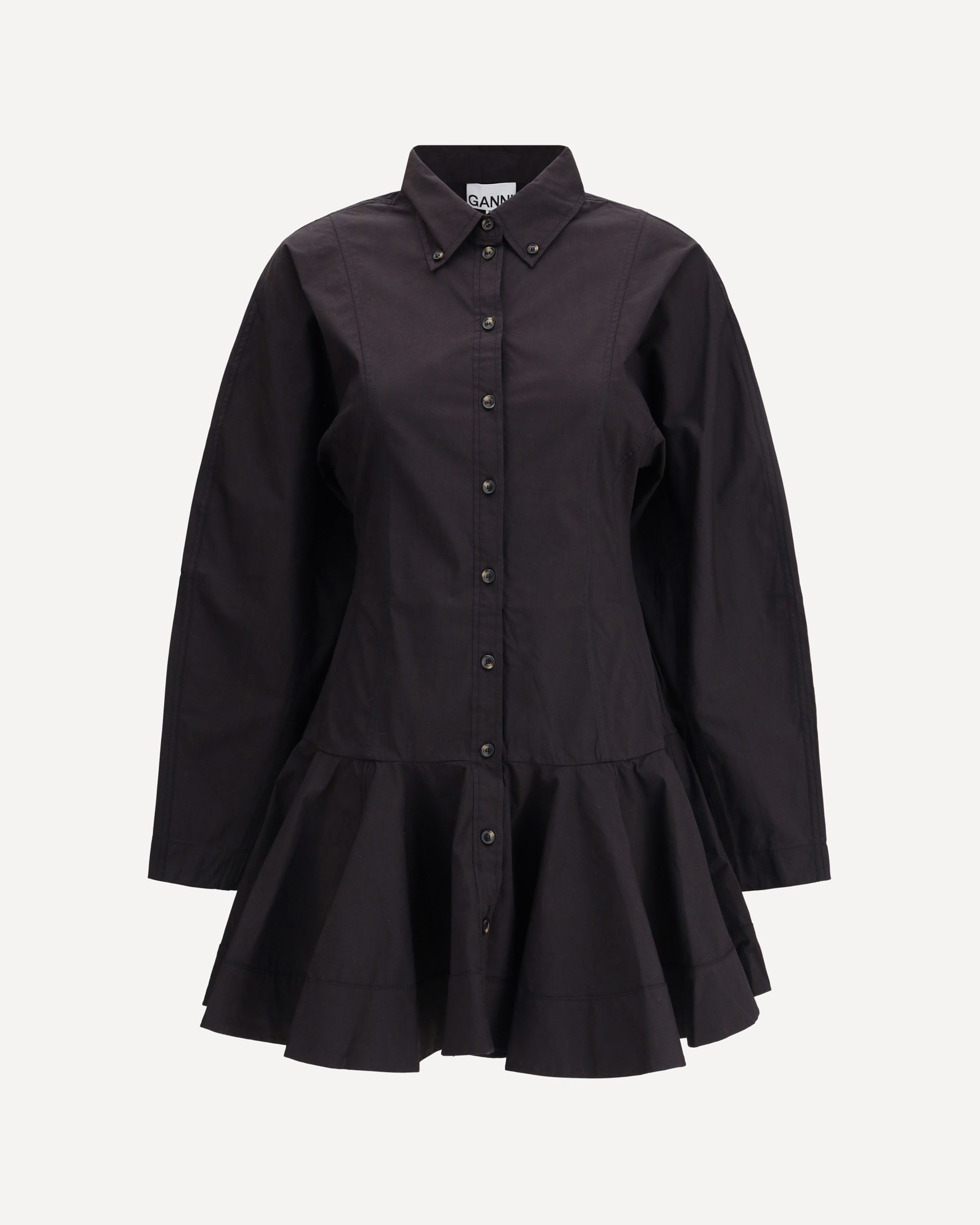 Ganni's Short chemisier Dress features a classic collar and a front button closure. It features long sleeves, a low waist and a gathered hemline, giving the garment a feminine and dynamic touch.