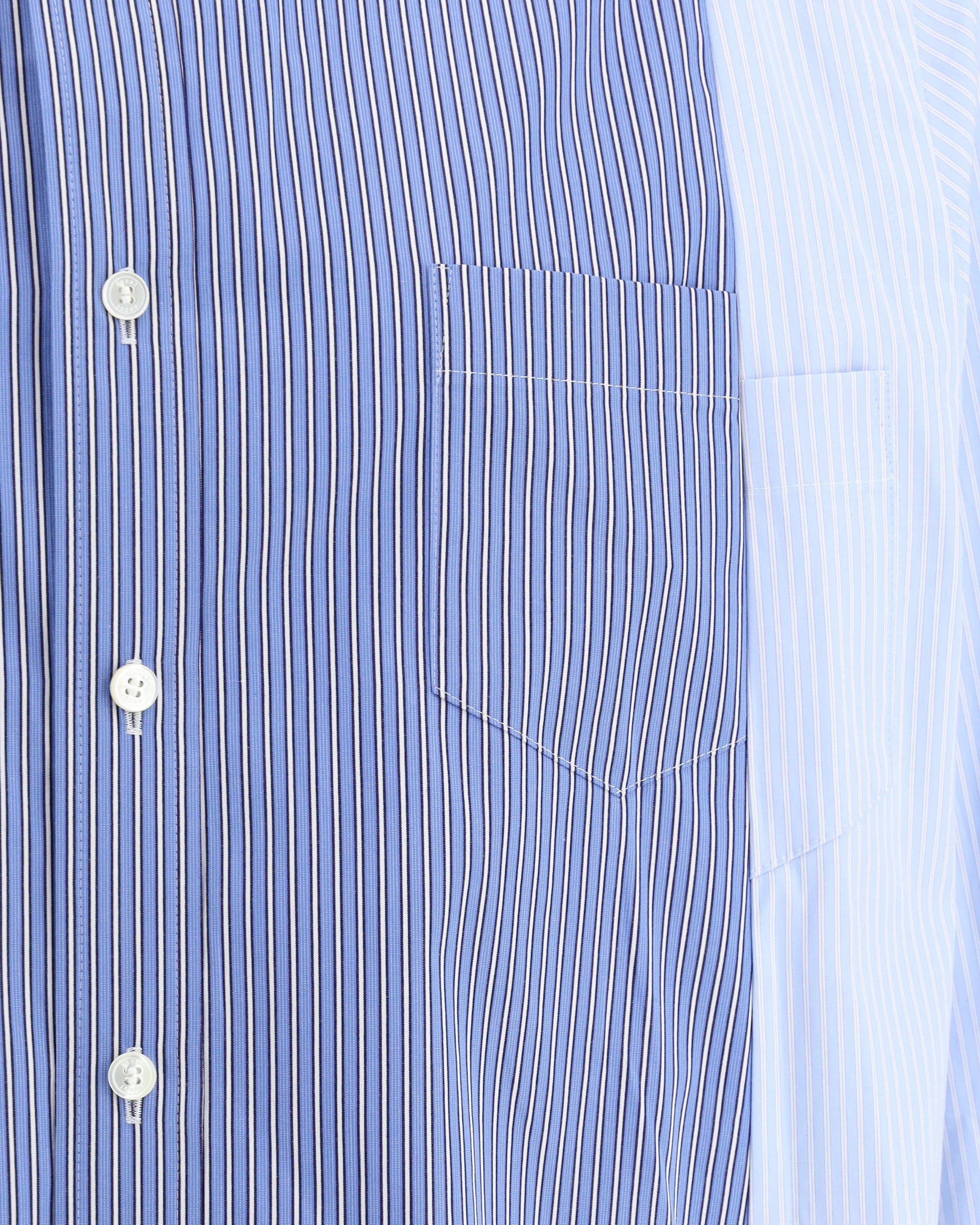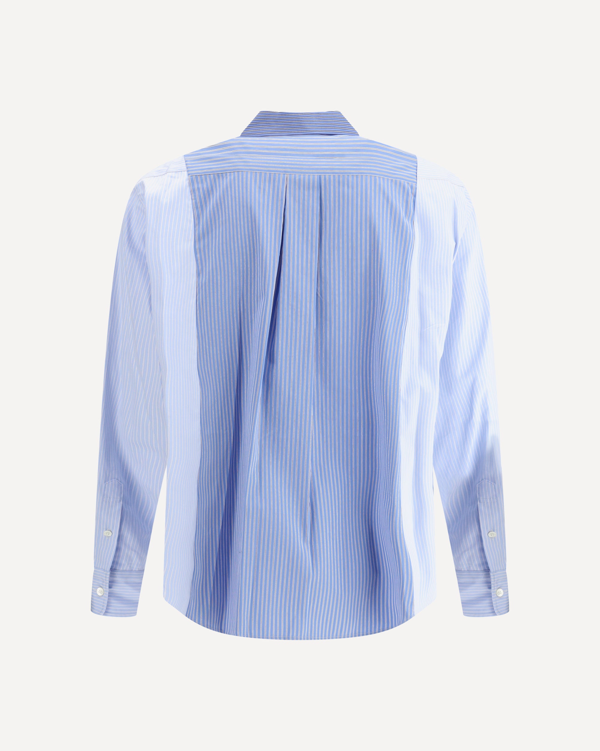 Sacai's cotton Shirt is a sleek, contemporary piece perfect for a sophisticated yet casual look. The classic collar and front button closure offer a traditional design, while the adjustable button cuffs allow for a customized fit. The patch welt pocket on the front adds a practical and stylish touch. The paneled design creates a dynamic effect, while the striped pattern lends a fresh, modern touch. This garment is ideal for those looking for a versatile shirt that combines elegance and comfort.