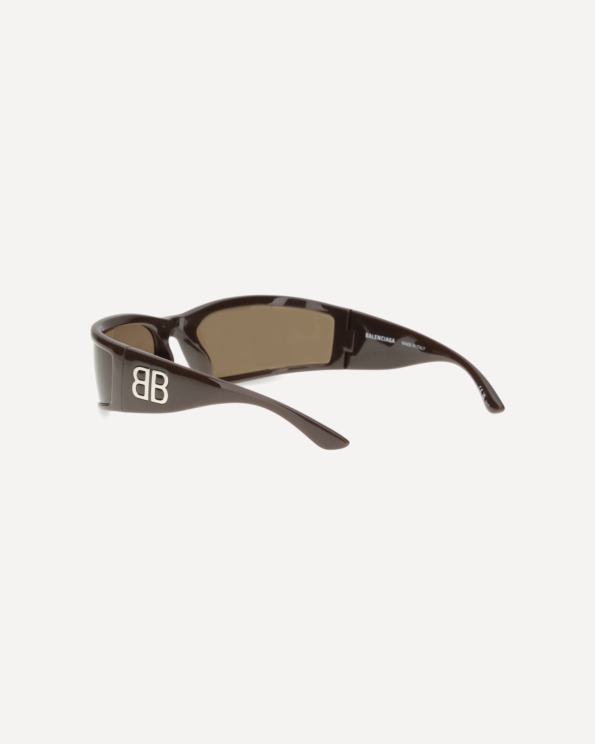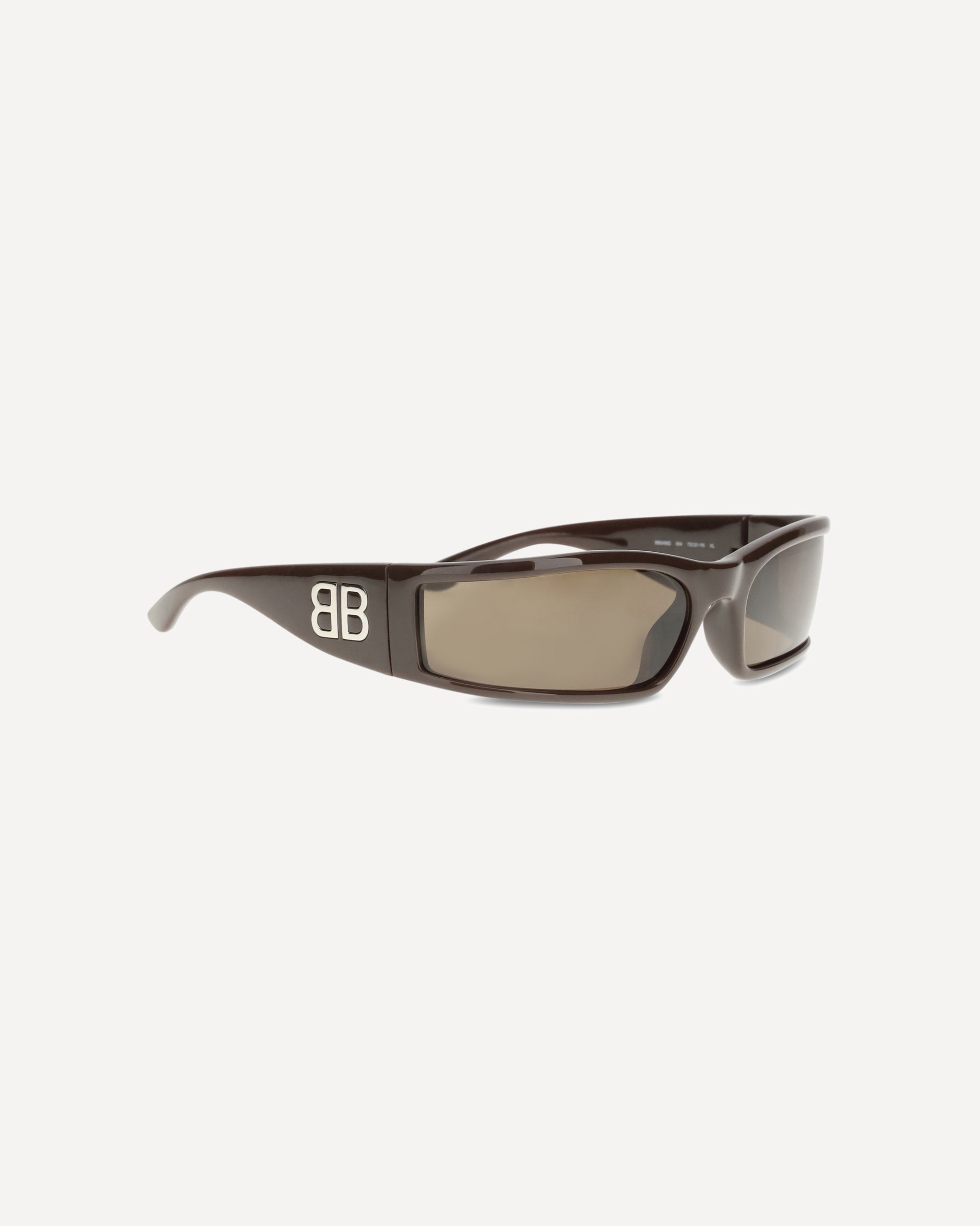 Balenciaga's Sunset Sunglasses combine contemporary design and sustainability. Made of acetate, they are embellished with metallic logo details on the temples, adding a touch of distinctive elegance. The rectangular shape gives a modern and versatile look, while the bio nylon lenses combine protection and respect for the environment, perfectly embodying the brand's innovative spirit.