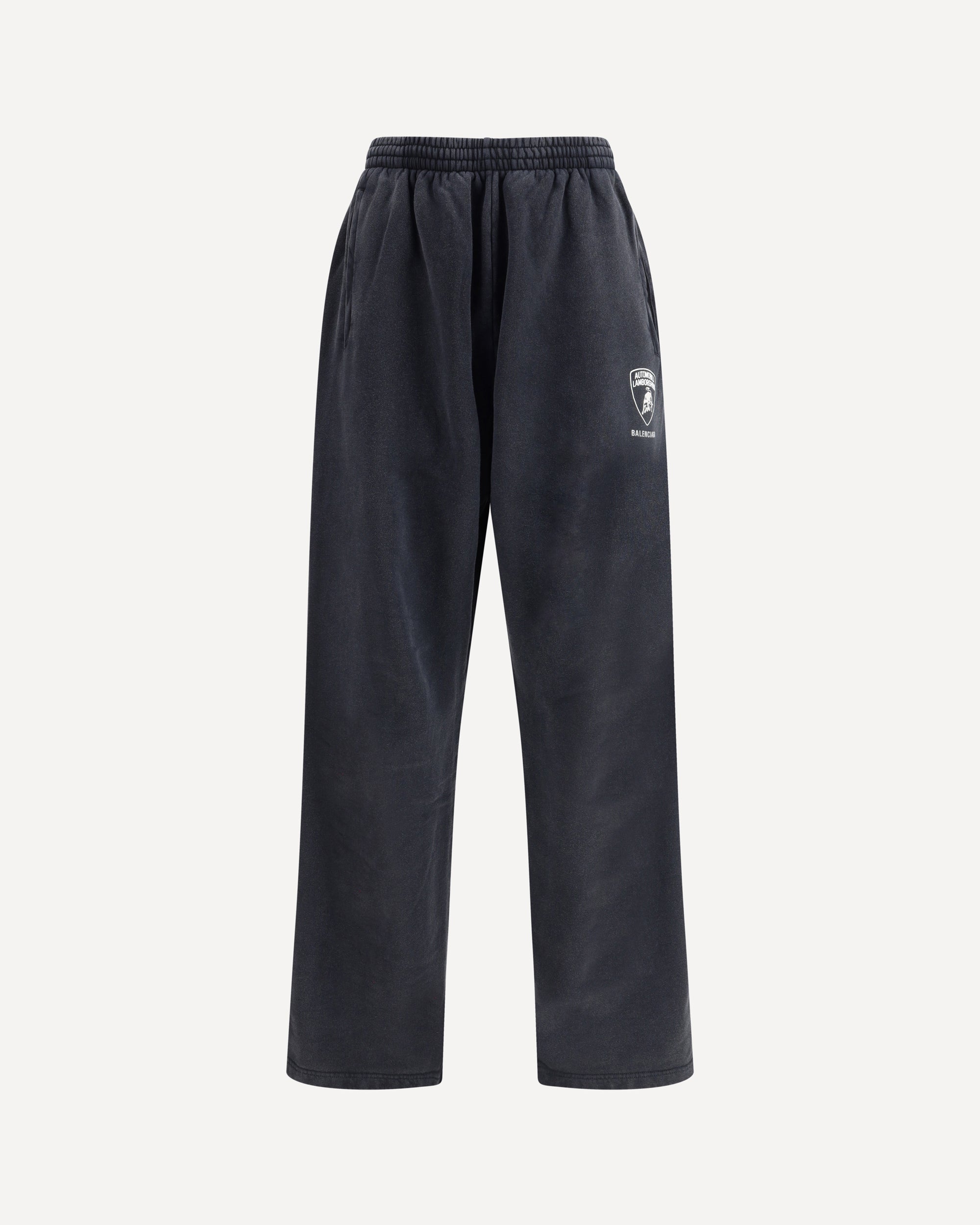 Wide-leg cotton Sweatpants by Balenciaga feature an elasticized, adjustable waistband with internal drawstring for a customized fit. They feature two side welt pockets and the iconic contrasting monogram on the front, the brand's signature detail. The plush interior ensures comfort and warmth, while the oversized fit gives a modern, relaxed look perfect for casual, contemporary style.