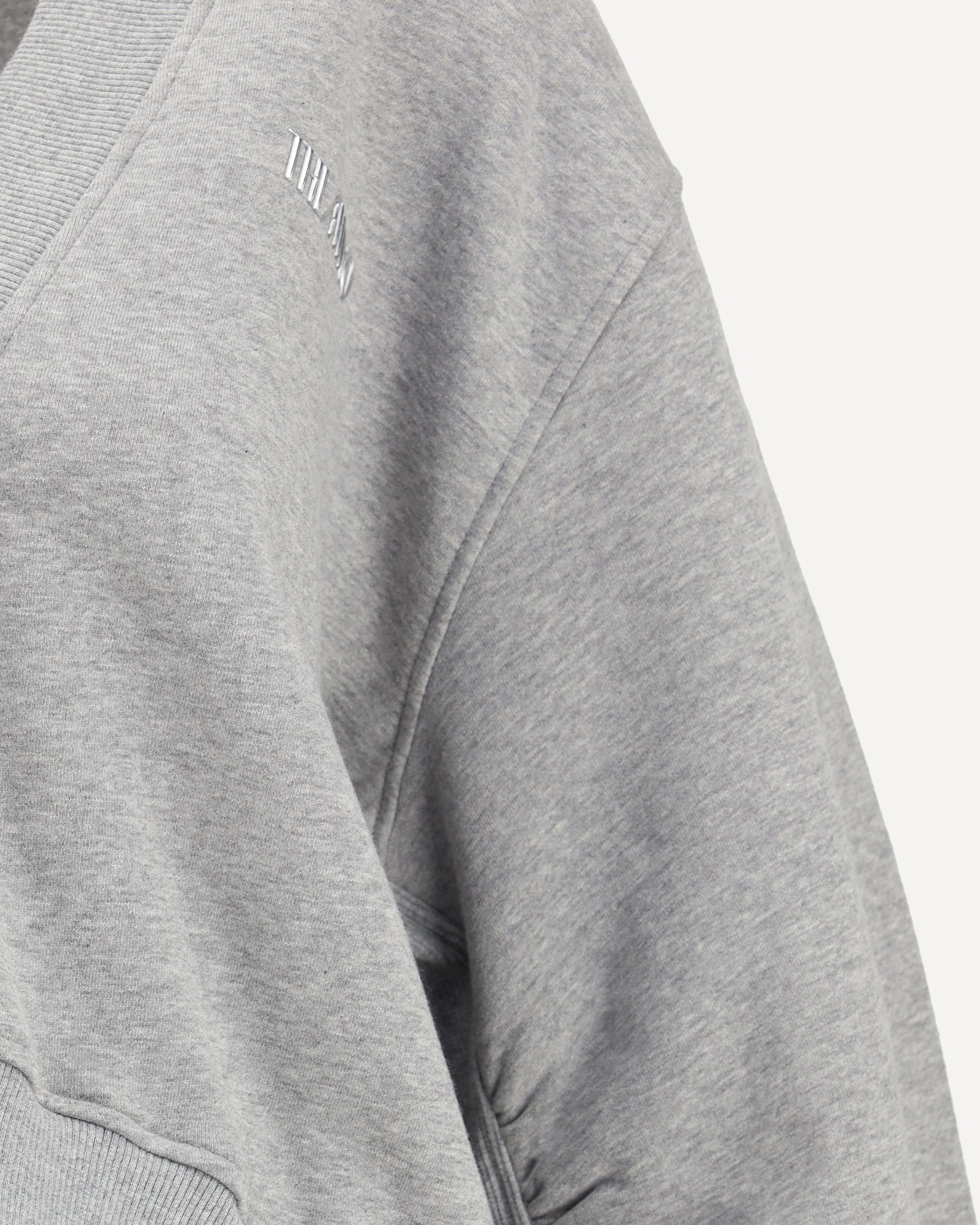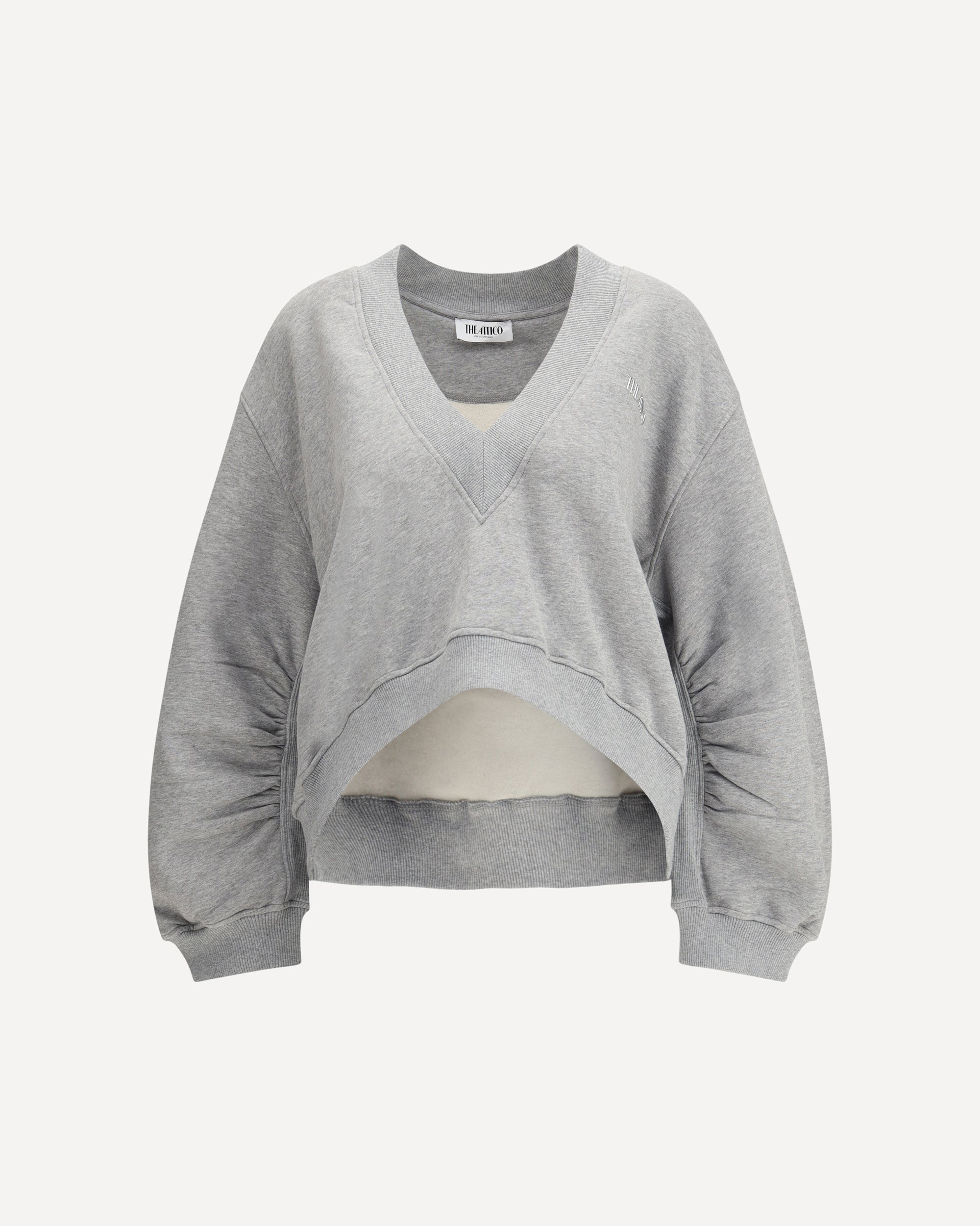 The Attico's oversized Sweatshirt is made of gauzy fleece with a faded grey melange finish, perfect for a relaxed yet impactful look. Featuring a deep V-neckline, it is finished with a tone-on-tone rubberized logo label, a discreet yet recognizable detail from the brand.
