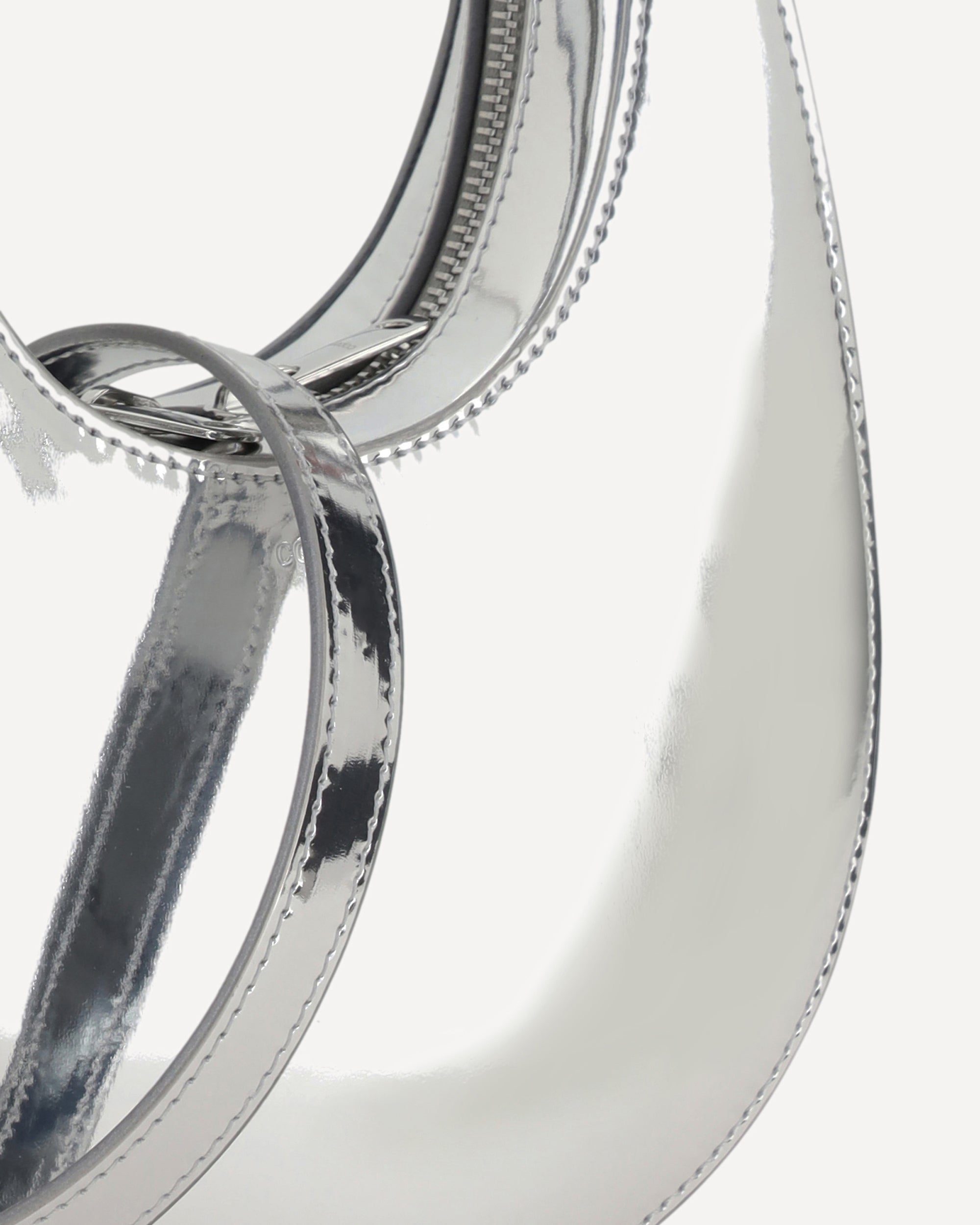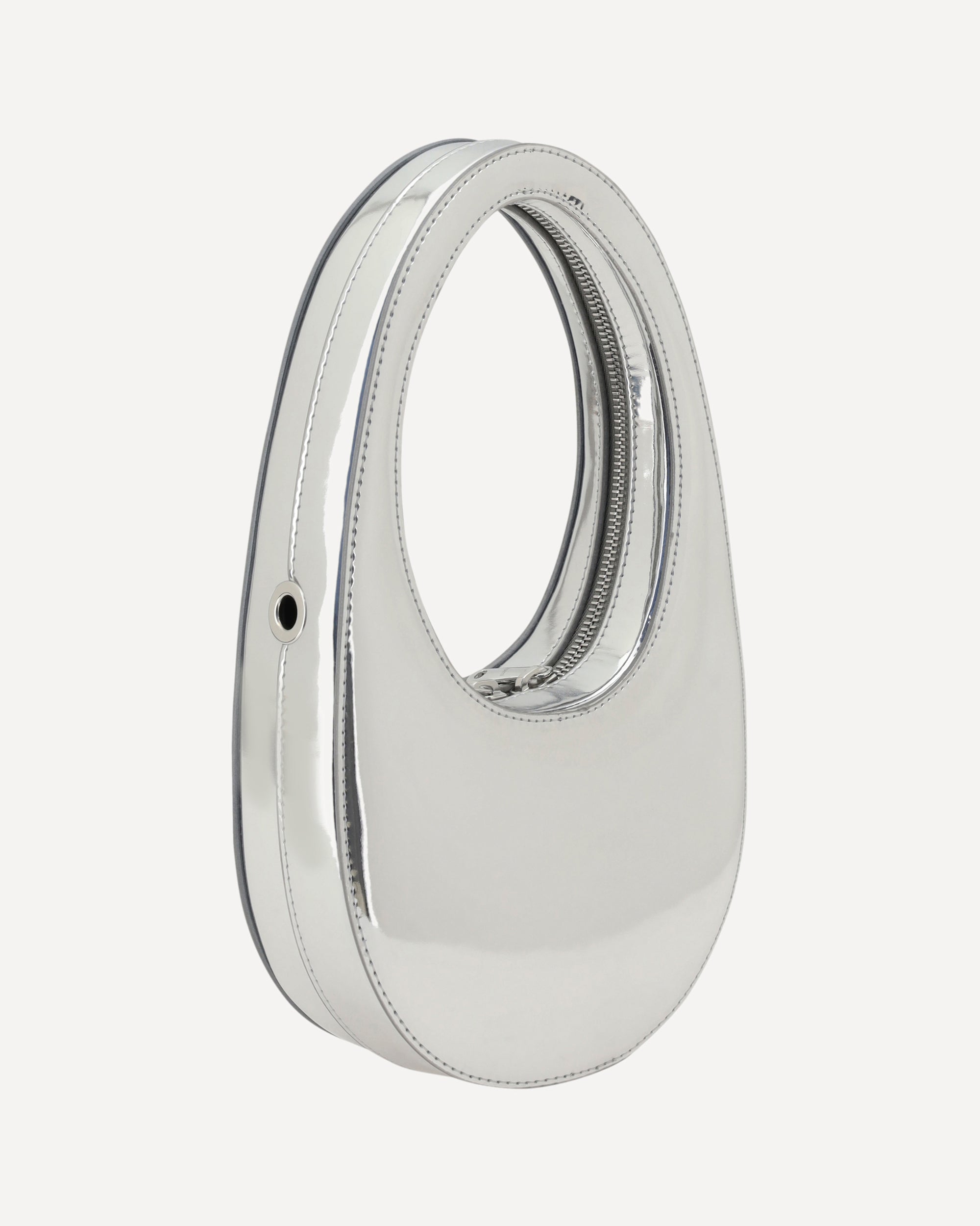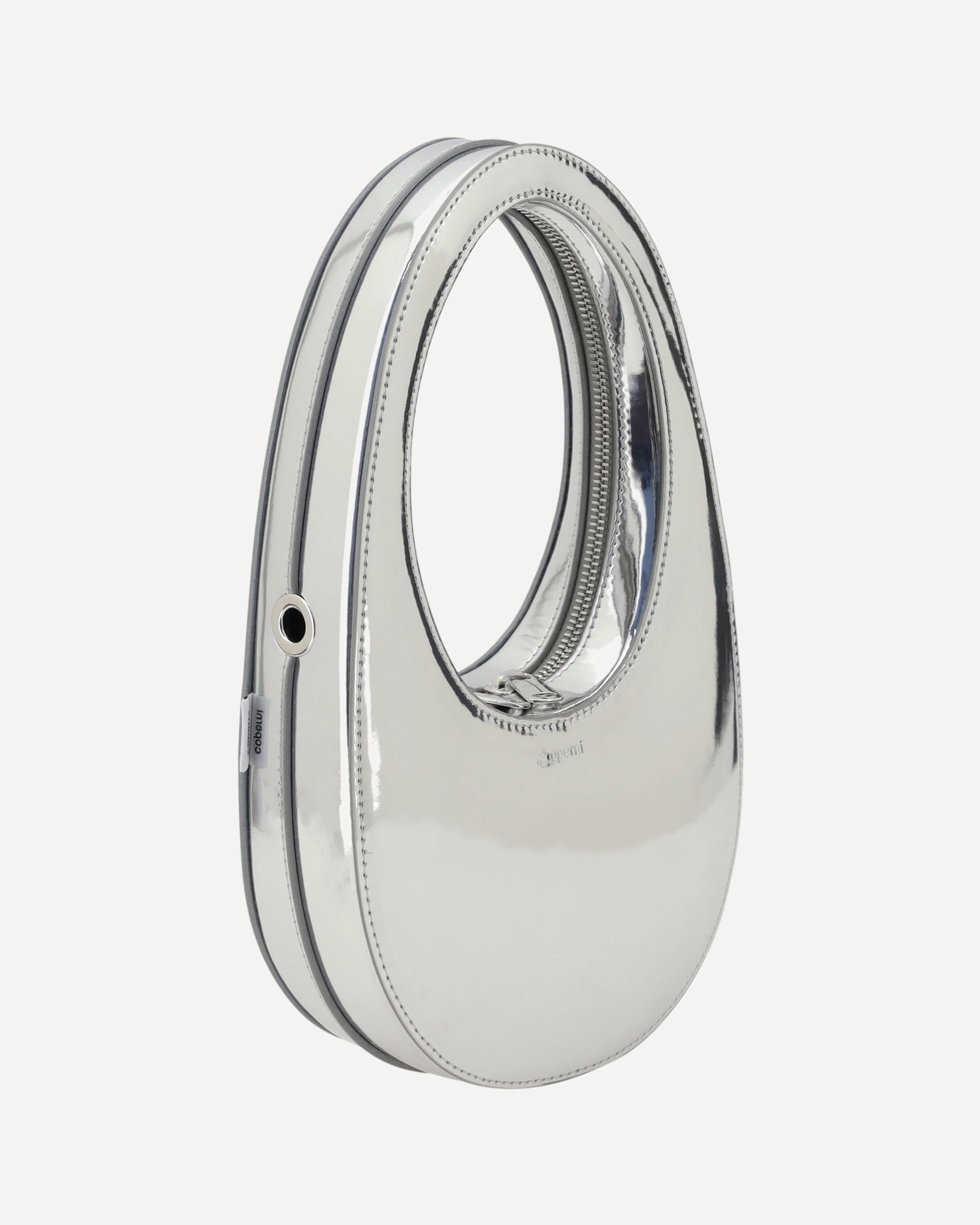 Coperni's Swipe Mini leather Handbag is a blend of innovation and minimalism. Its distinctive hobo shape is enhanced by a mirrored design, giving it a futuristic touch.Featuring a double-slider closure, it has a single interior compartment with a welt pocket for maximum convenience. The iconic three-dimensional monogram plaque stands out on the contrasting front, while the flat, removable and adjustable shoulder strap adds versatility, allowing it to be worn by hand or over the shoulder.