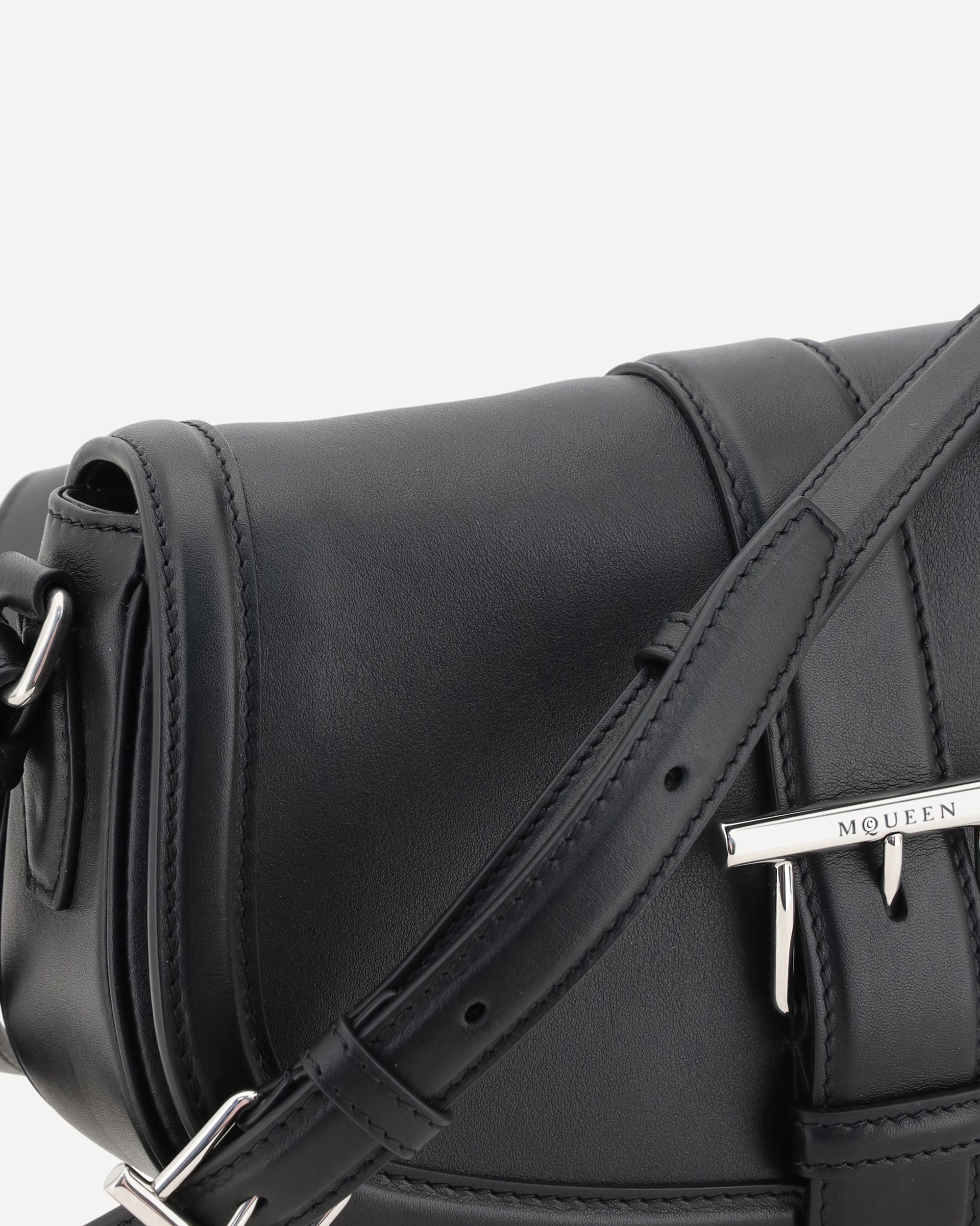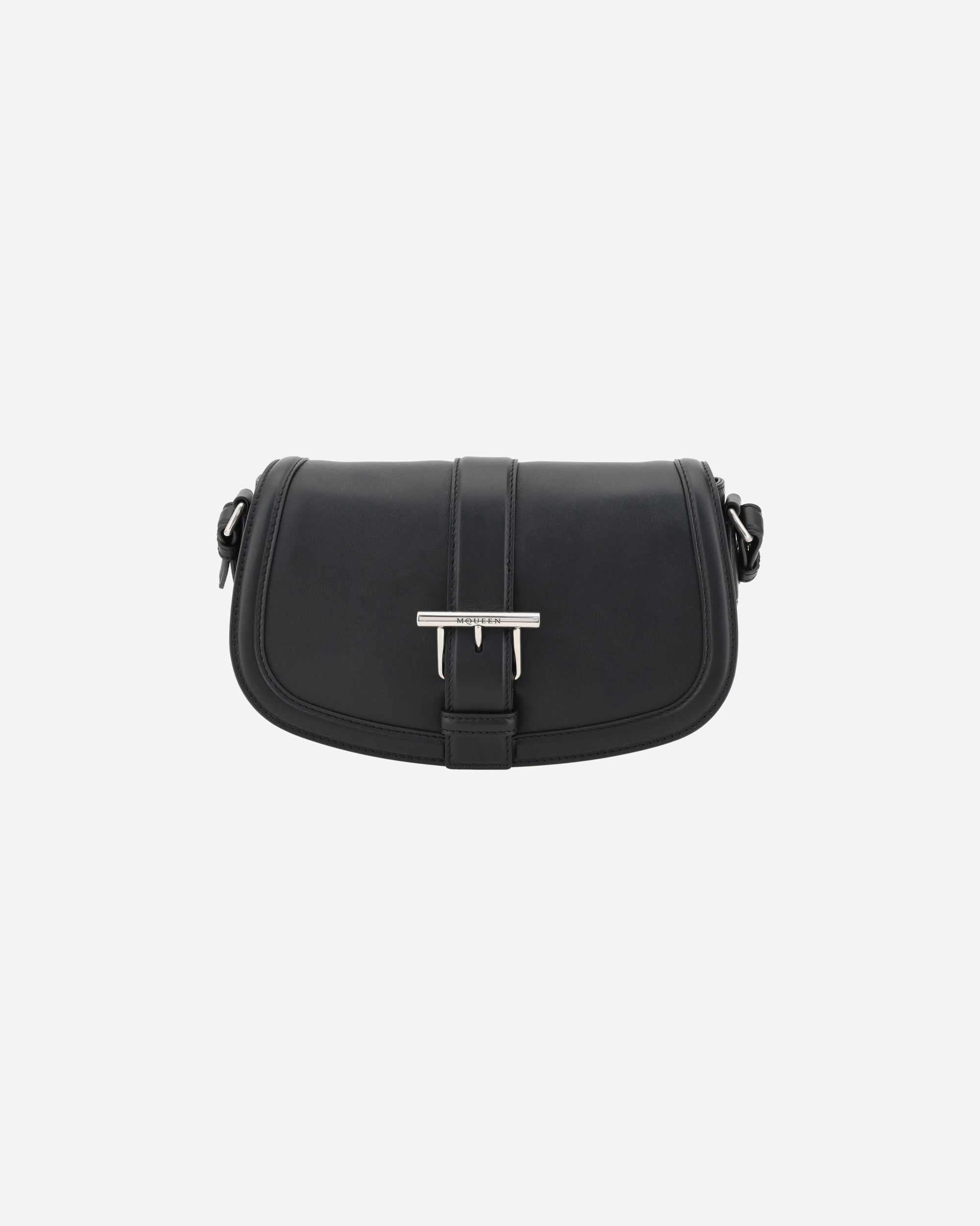 Alexander McQueen's T-bar Shoulder Bag combines elegance and functionality. It features a flat handle and an adjustable and removable flat shoulder strap to suit different needs. The front closure with magnetic flap ensures practicality, while the applied buckle on the front panel adds a distinctive and modern touch to the design. A versatile and sophisticated accessory.