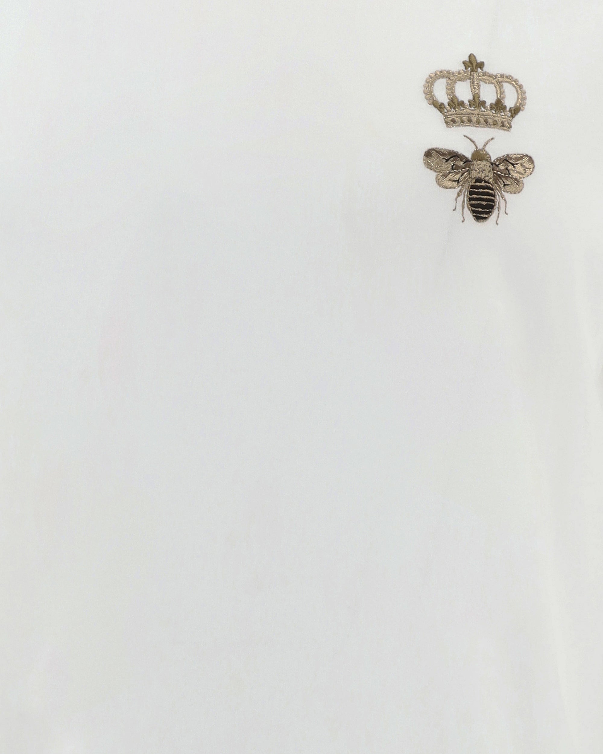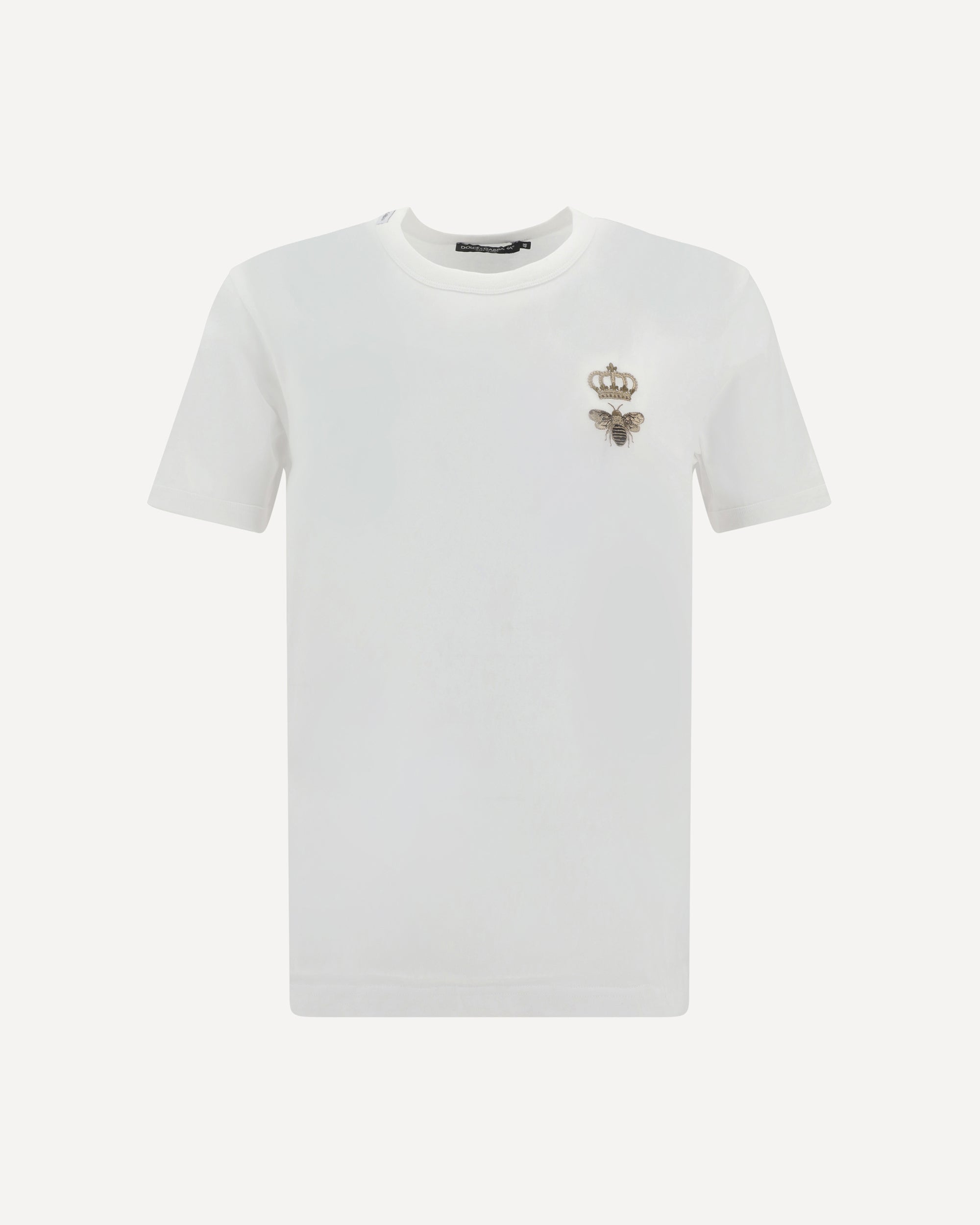 Dolce&Gabbana's cotton T-Shirt features a ribbed crew neck and a distinctive design with a contrasting embroidered bee and crown on the front. The monochrome pattern gives the garment an elegant and versatile look that can be easily combined with various styles. A garment that combines originality and sophistication.