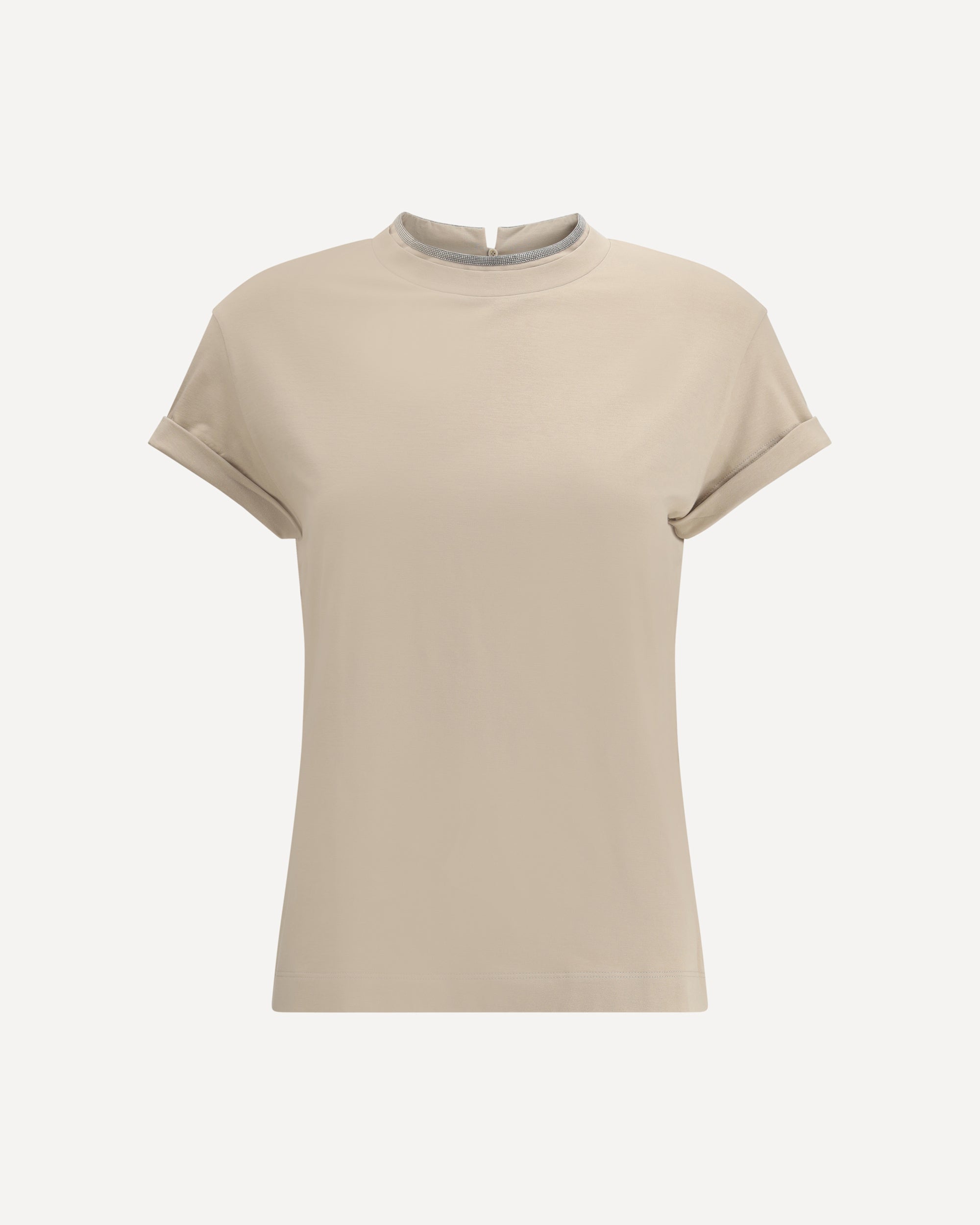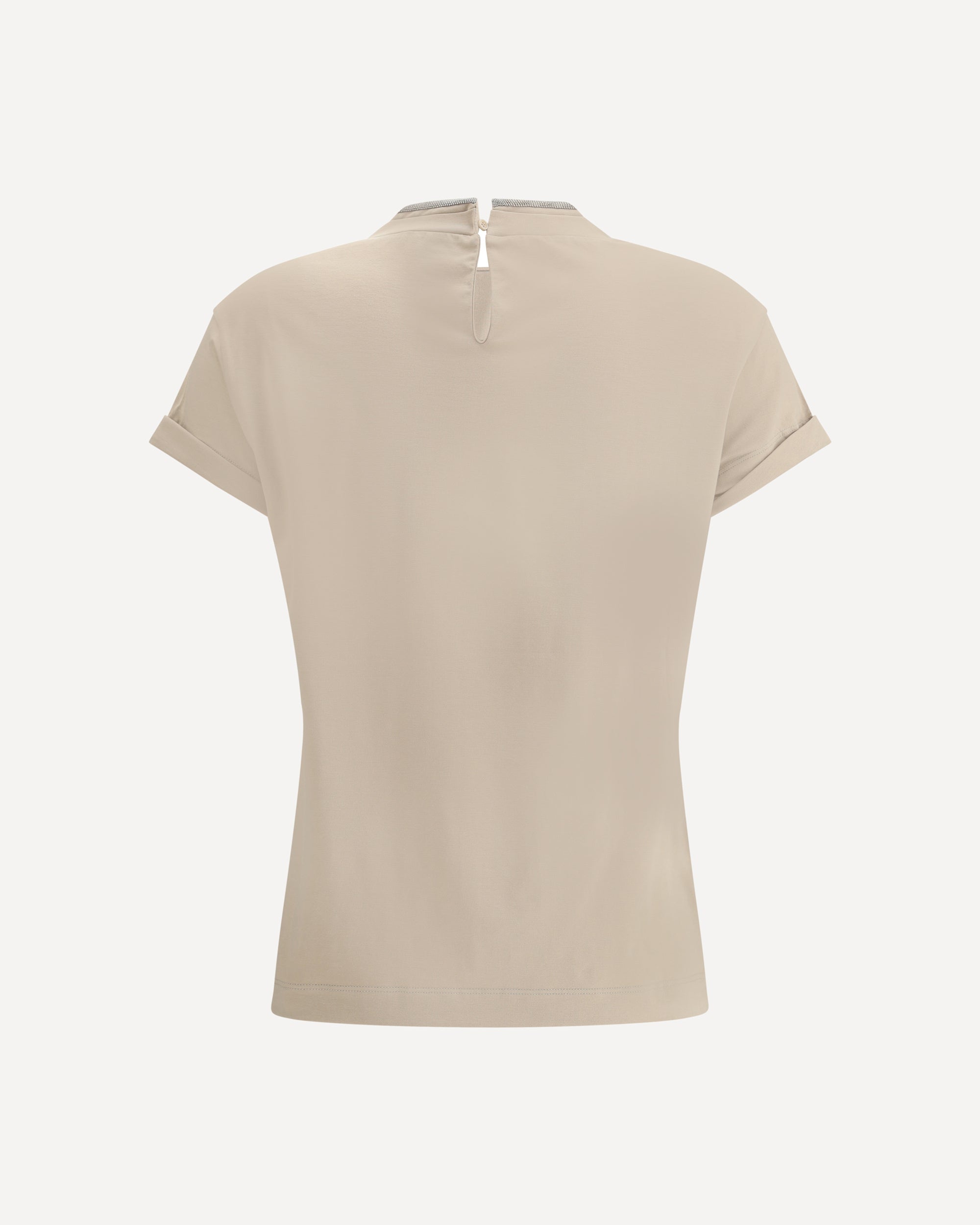 The cotton T-shirt by Brunello Cucinelli features a clean, understated silhouette elevated by the brand’s iconic detailing. The neckline is embellished with contrasting monili, while a back keyhole with button closure adds a refined touch. Finished with a regular fit, it balances comfort and sophisticated simplicity.
