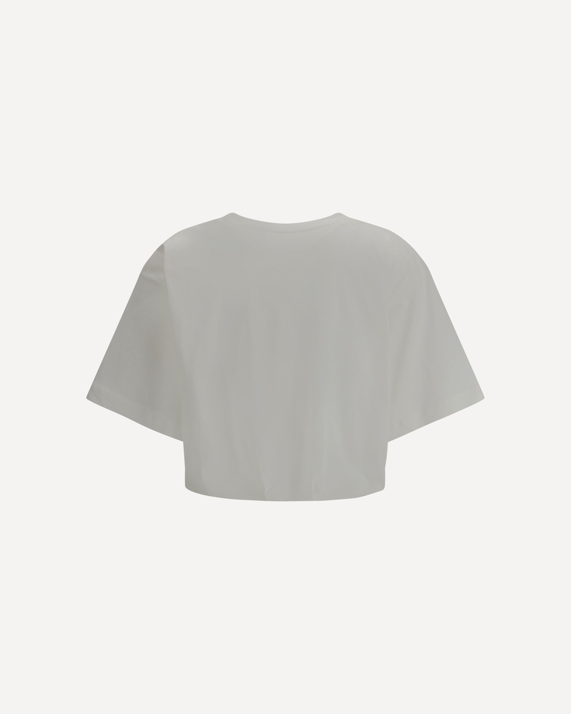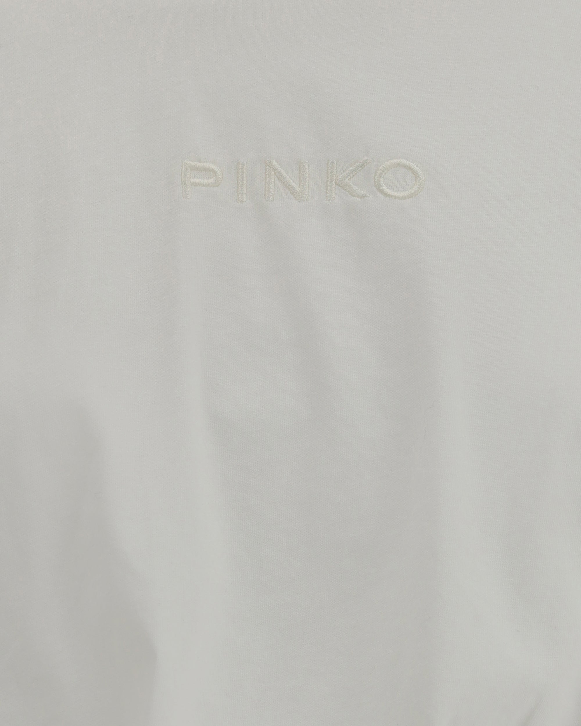 The T-Shirt by Pinko is a modern and versatile design perfect for adding a touch of style to your wardrobe. With a ribbed crew neck and cropped cut, it offers a cool and trendy fit. The brand's iconic signature tone-on-tone stitching on the front enhances the design with discretion and sophistication. A must-have for those seeking a casual, yet still stylish and recognizable look.