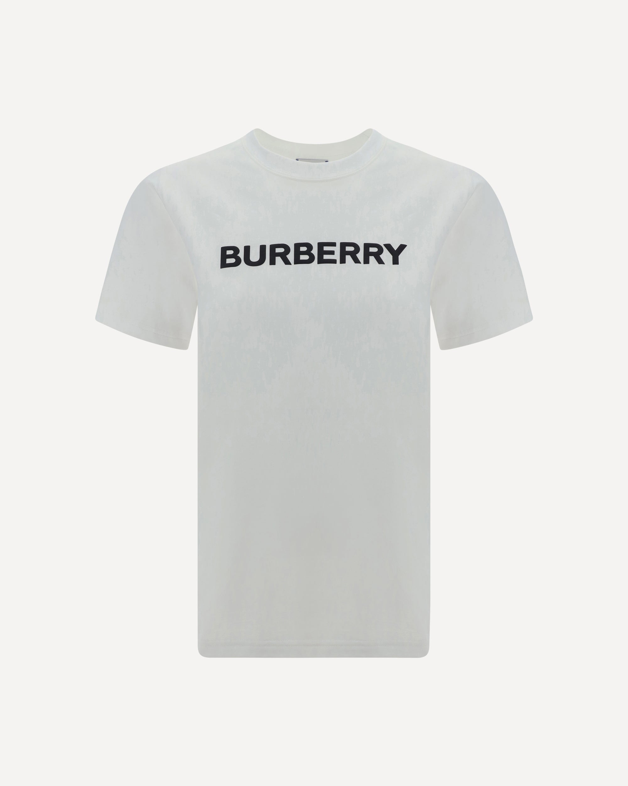 Cotton T-Shirt by Burberry, ribbed crew neck, contrasting iconic brand monogram on front, monochrome pattern, regular fit.