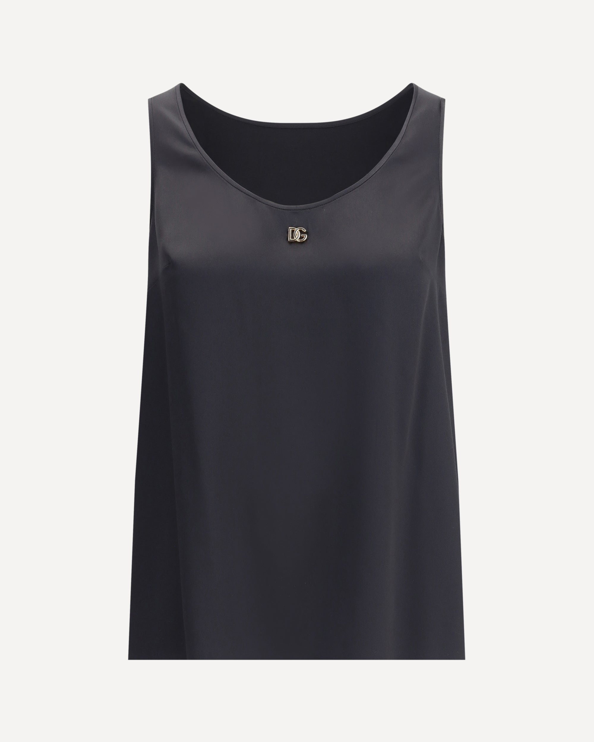 Dolce&Gabbana's Silk sleeveless Top is an elegant and refined garment, featuring an applied logo plaque on the front that emphasizes its style identity. The silk gives a soft and luminous texture, perfect for sophisticated and feminine looks.
