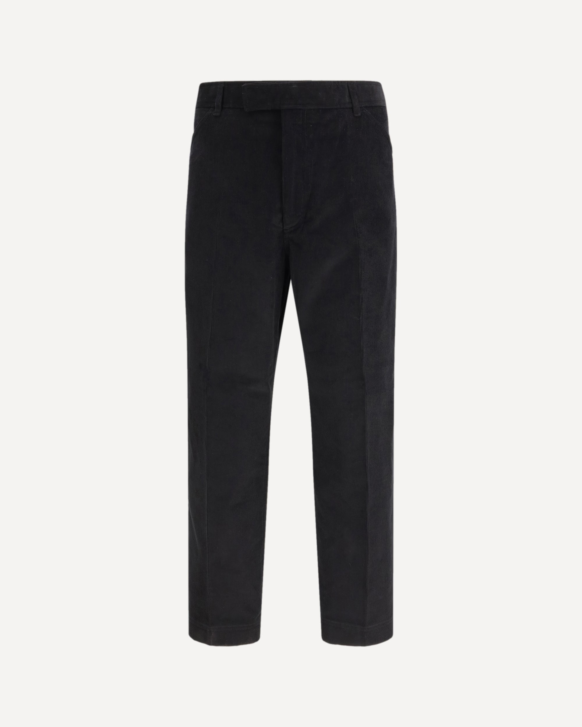 The corduroy Chino Pants by Thom Browne are a perfect blend of tradition and contemporary sophistication. Made of tightly woven corduroy, they give a rich texture and a clean, structured, sophisticated silhouette. Double-stitched seams and tone-on-tone trim add high-quality detail, while the tab and zipper closure offers a flawless fit. Back buttoned welt pockets and a striped grosgrain loop tab are distinctive details that echo the house's celebrated style for a timelessly elegant look.