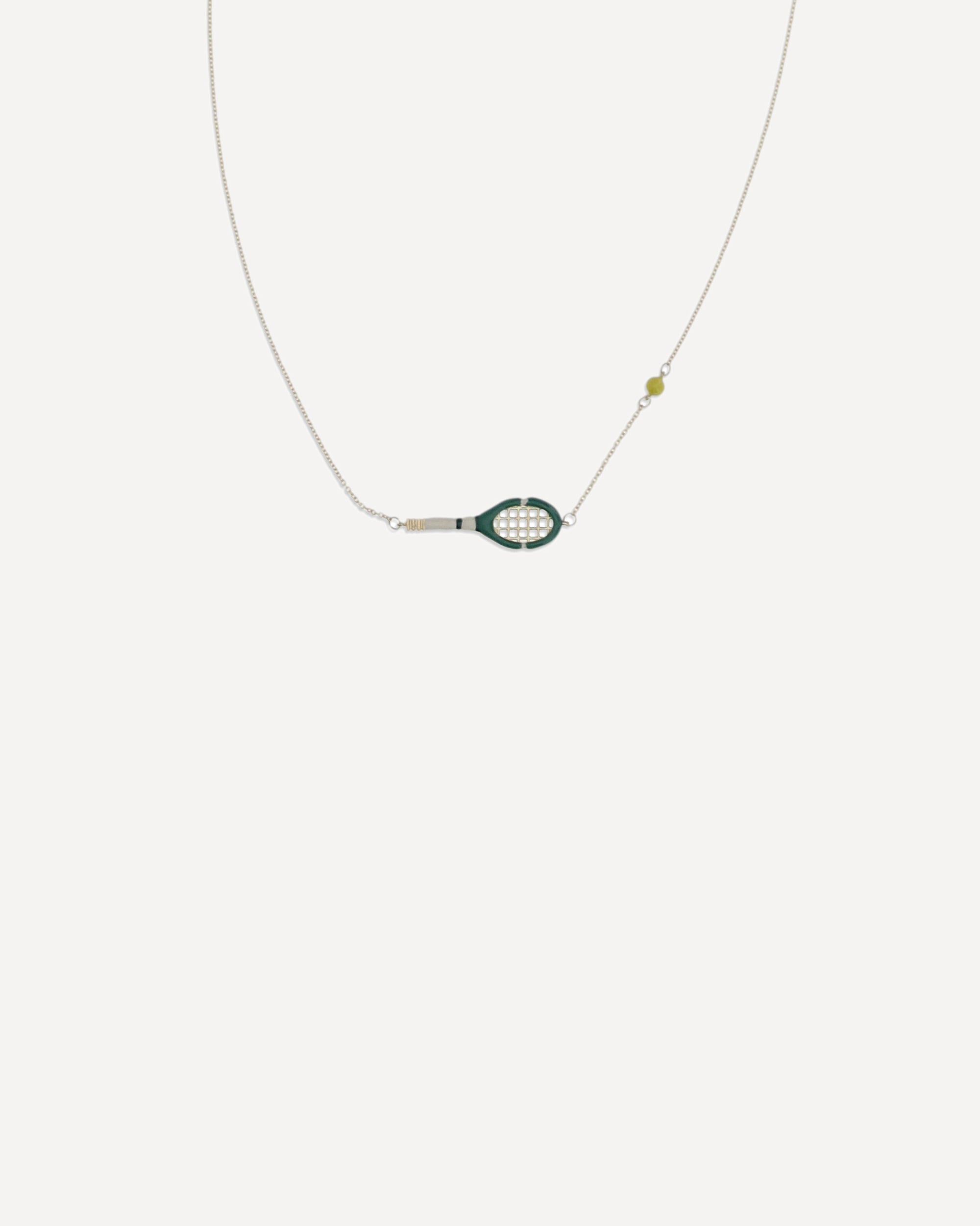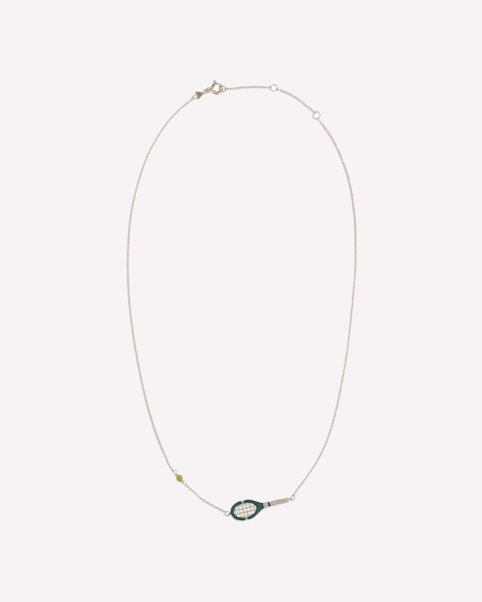 Pelota Tennis Necklace by Aliita celebrates the sporty spirit with a touch of playful elegance. Crafted in 9-karat yellow gold, it features a rolò chain with a ring clasp and a hand-enameled pendant depicting a tennis ball, small but full of character. A refined yet casual accessory, perfect for those who like to stand out with fun and sophisticated details.